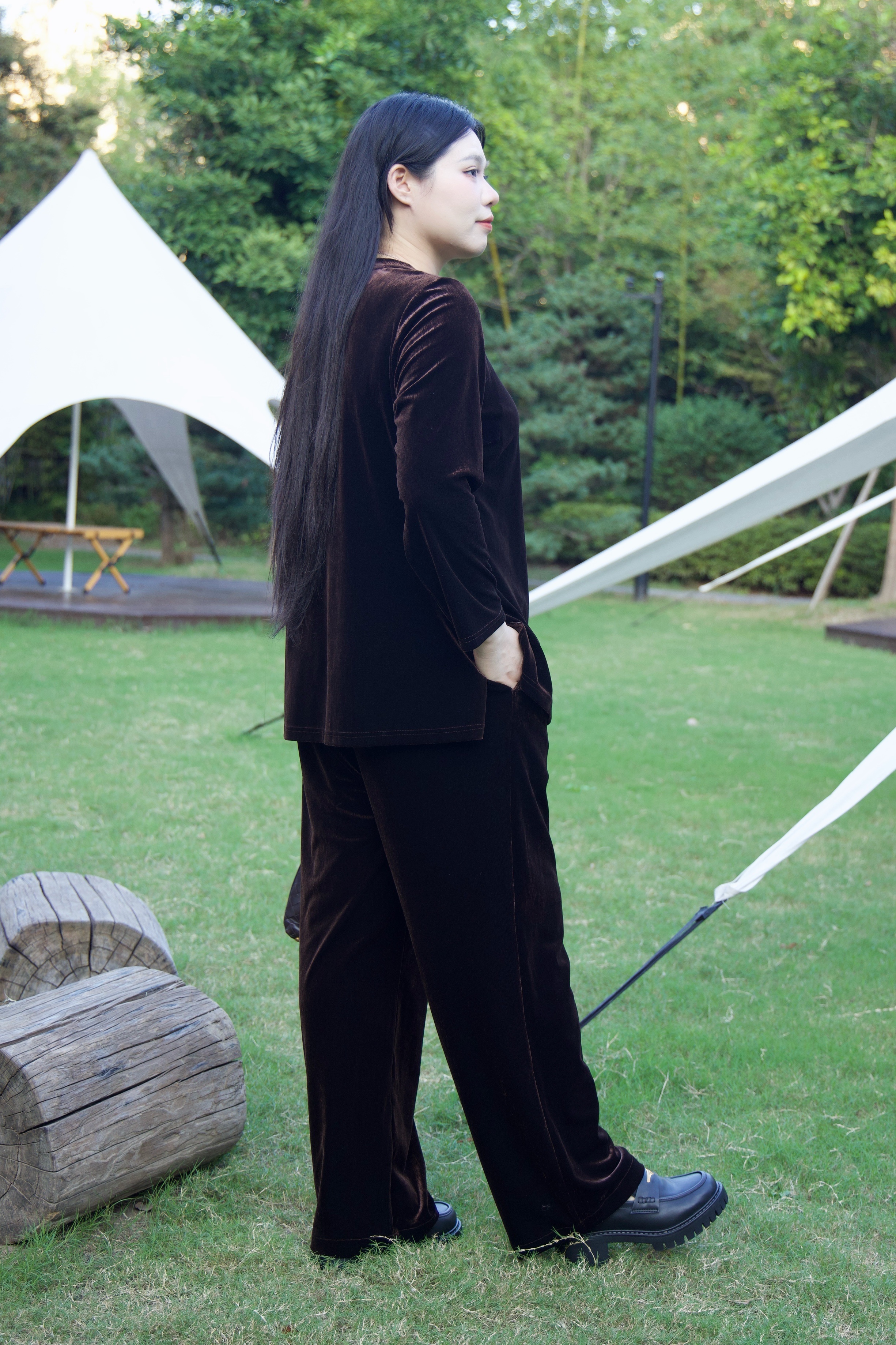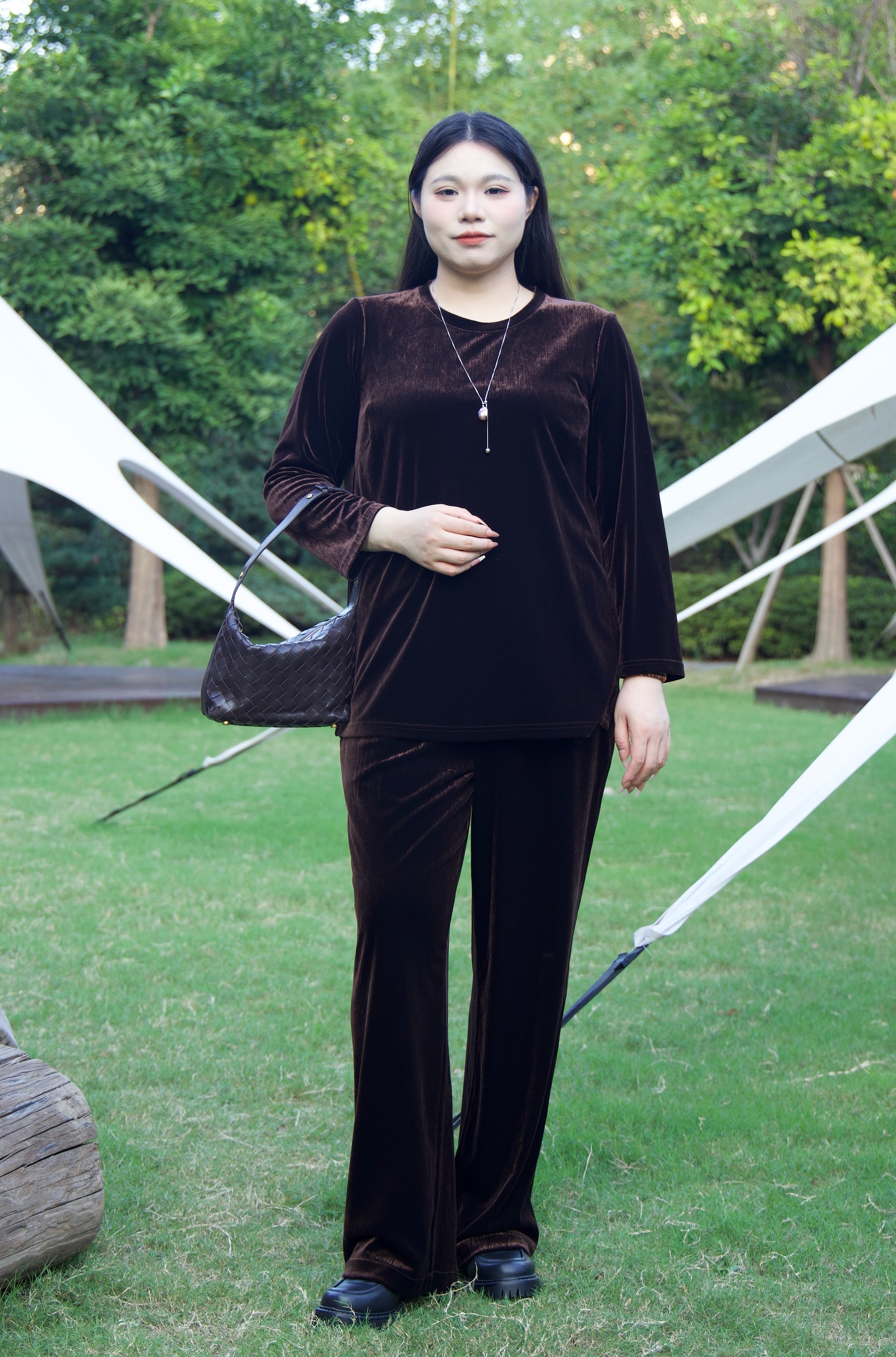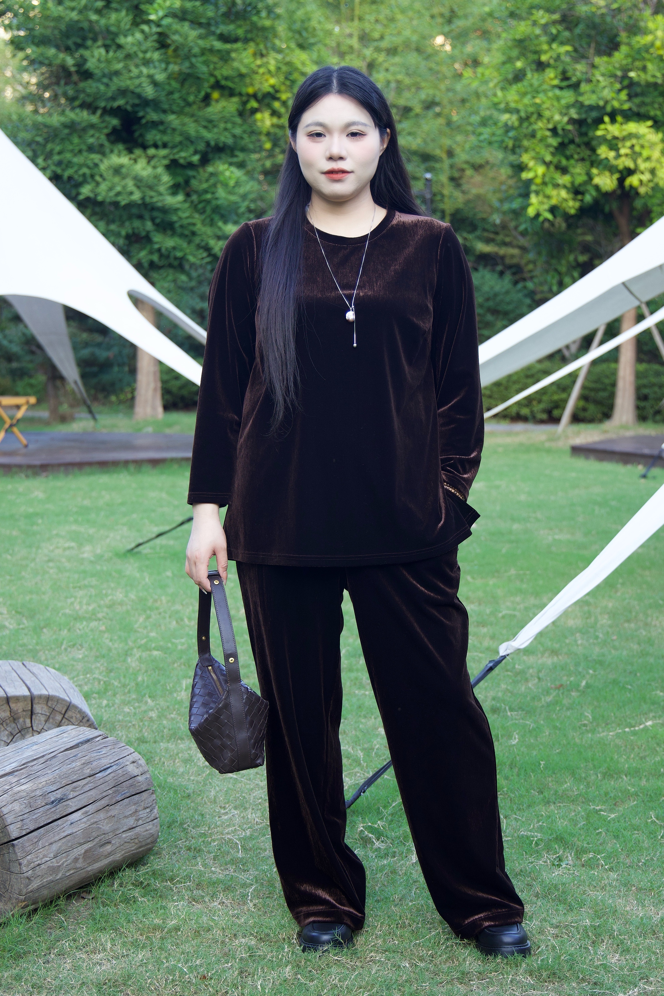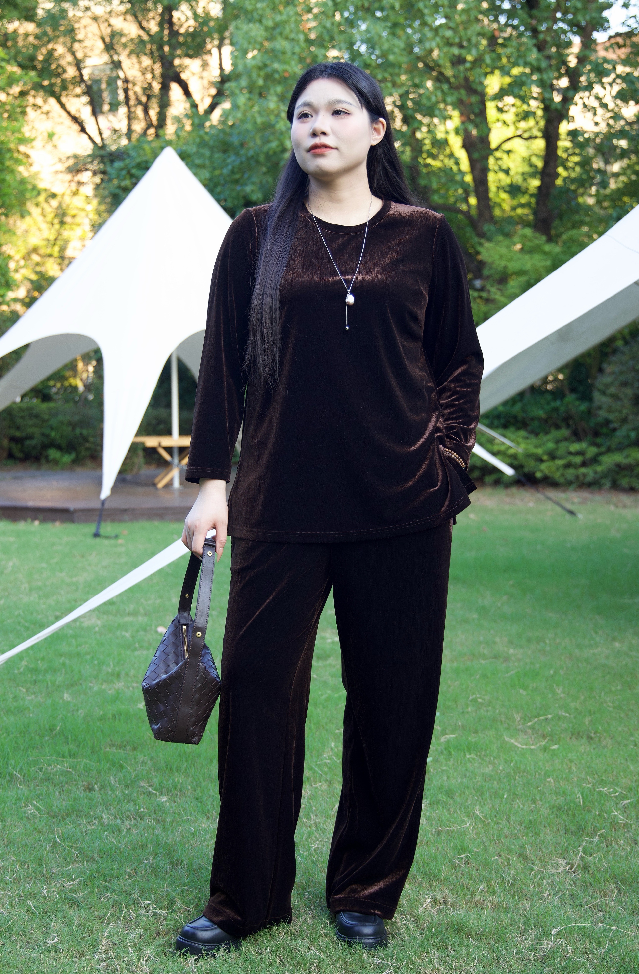 现货,今天发!💫【棕色丝绒套装】高级又有腔调!不起静电,裤子松紧腰。秋冬显贵显瘦第一名!高档气质阔太太感,丝绒套装,洋气高贵两件套,正码正拍