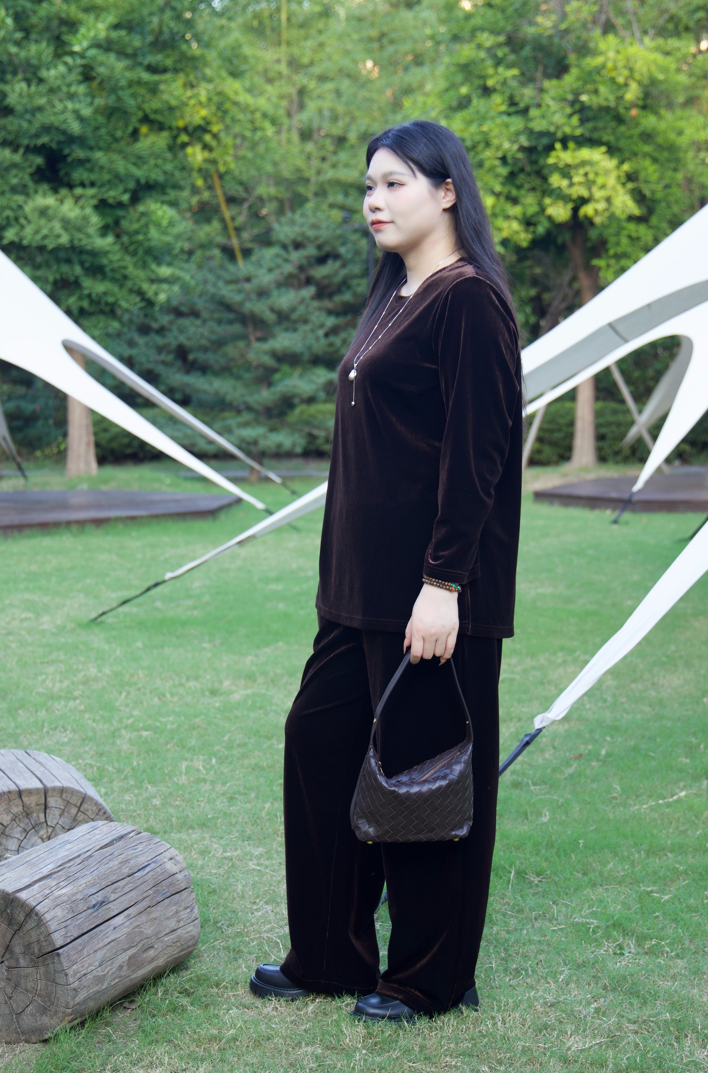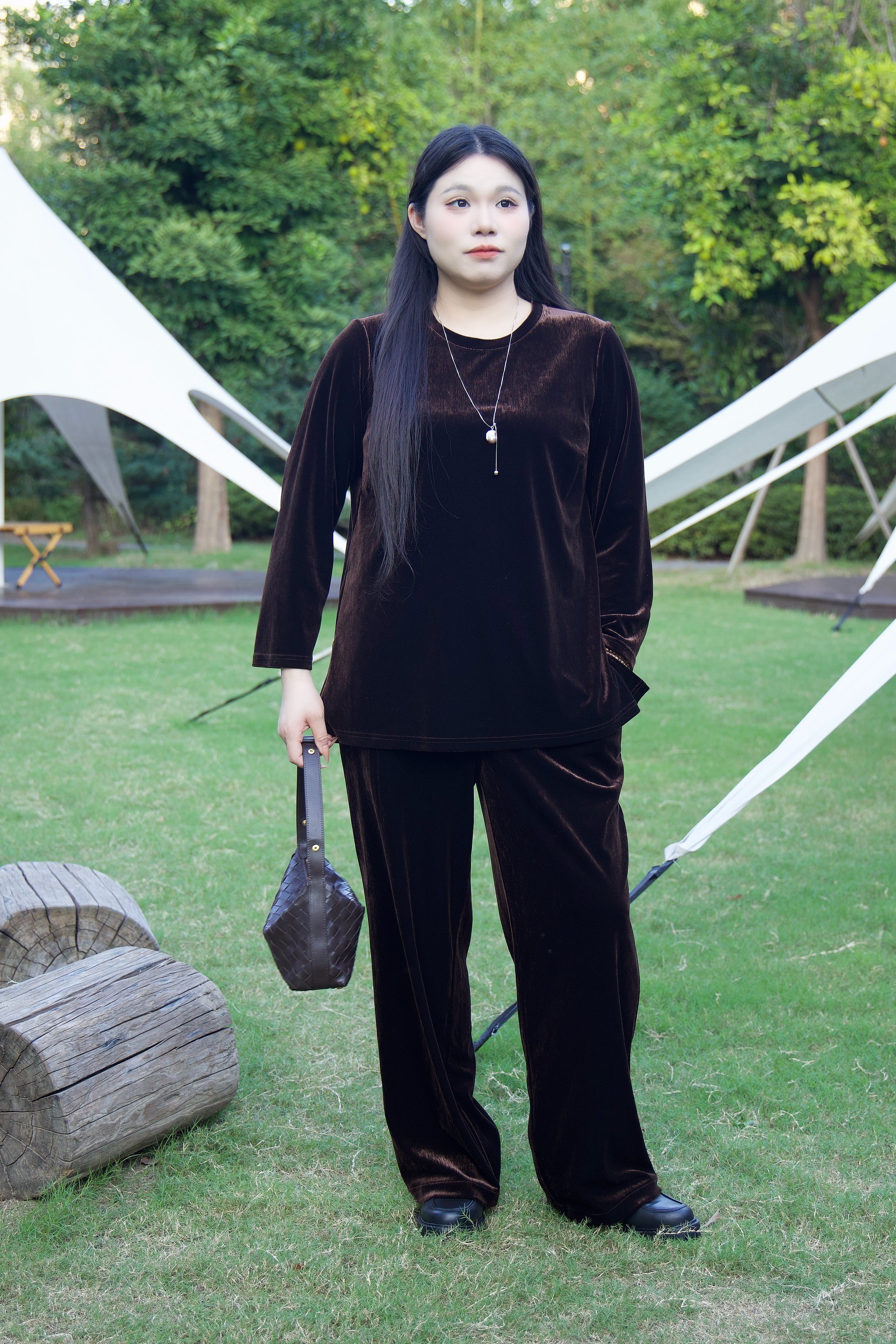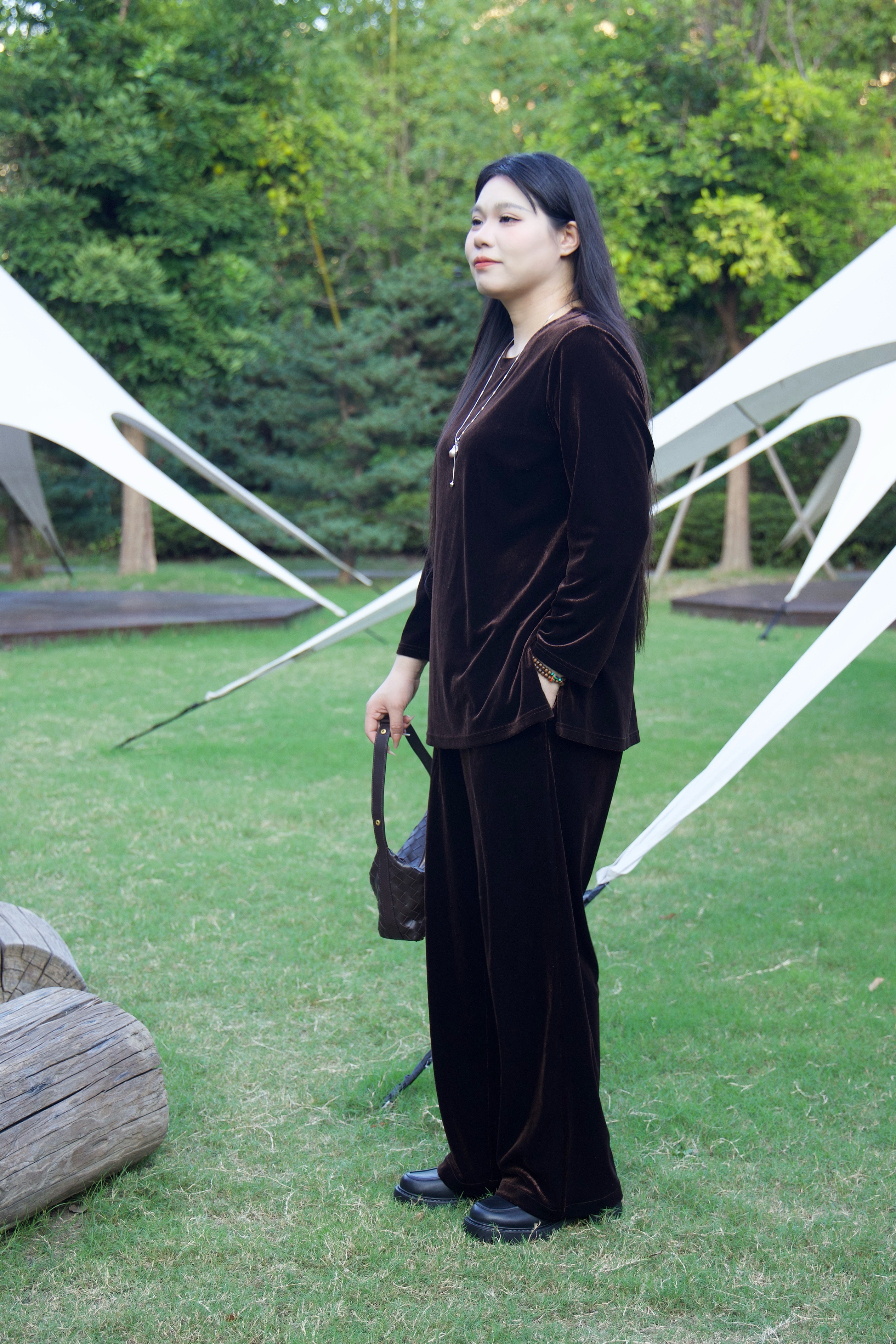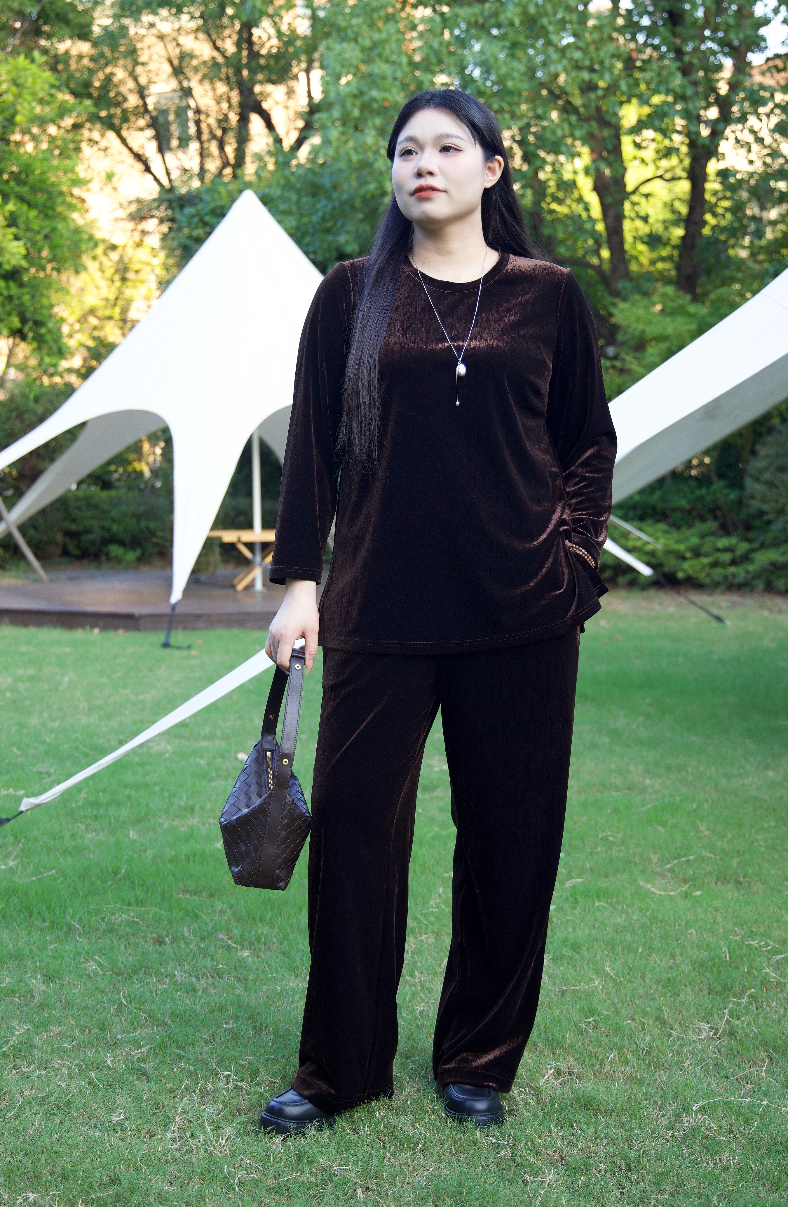 现货,今天发!💫【棕色丝绒套装】高级又有腔调!不起静电,裤子松紧腰。秋冬显贵显瘦第一名!高档气质阔太太感,丝绒套装,洋气高贵两件套,正码正拍