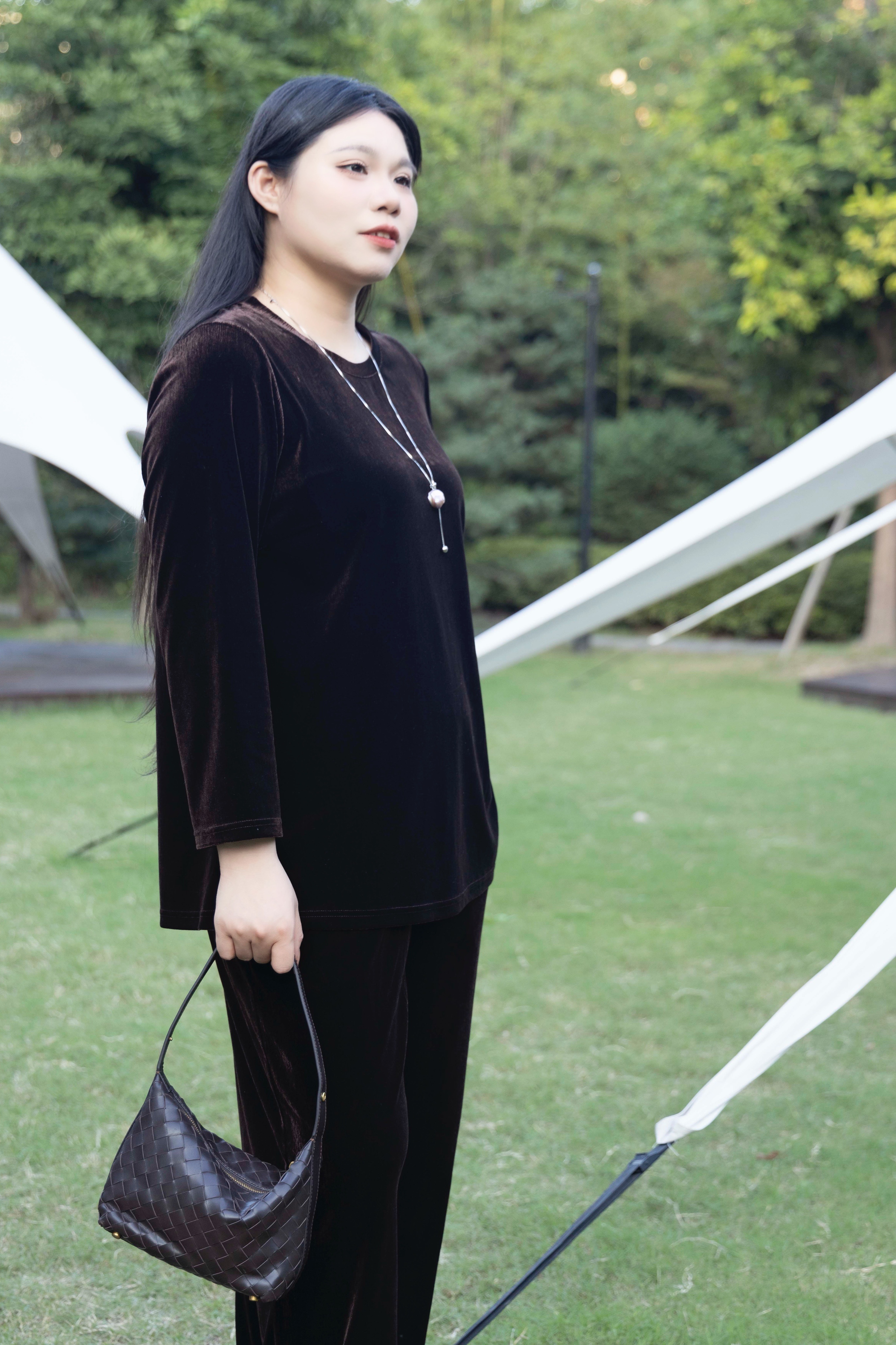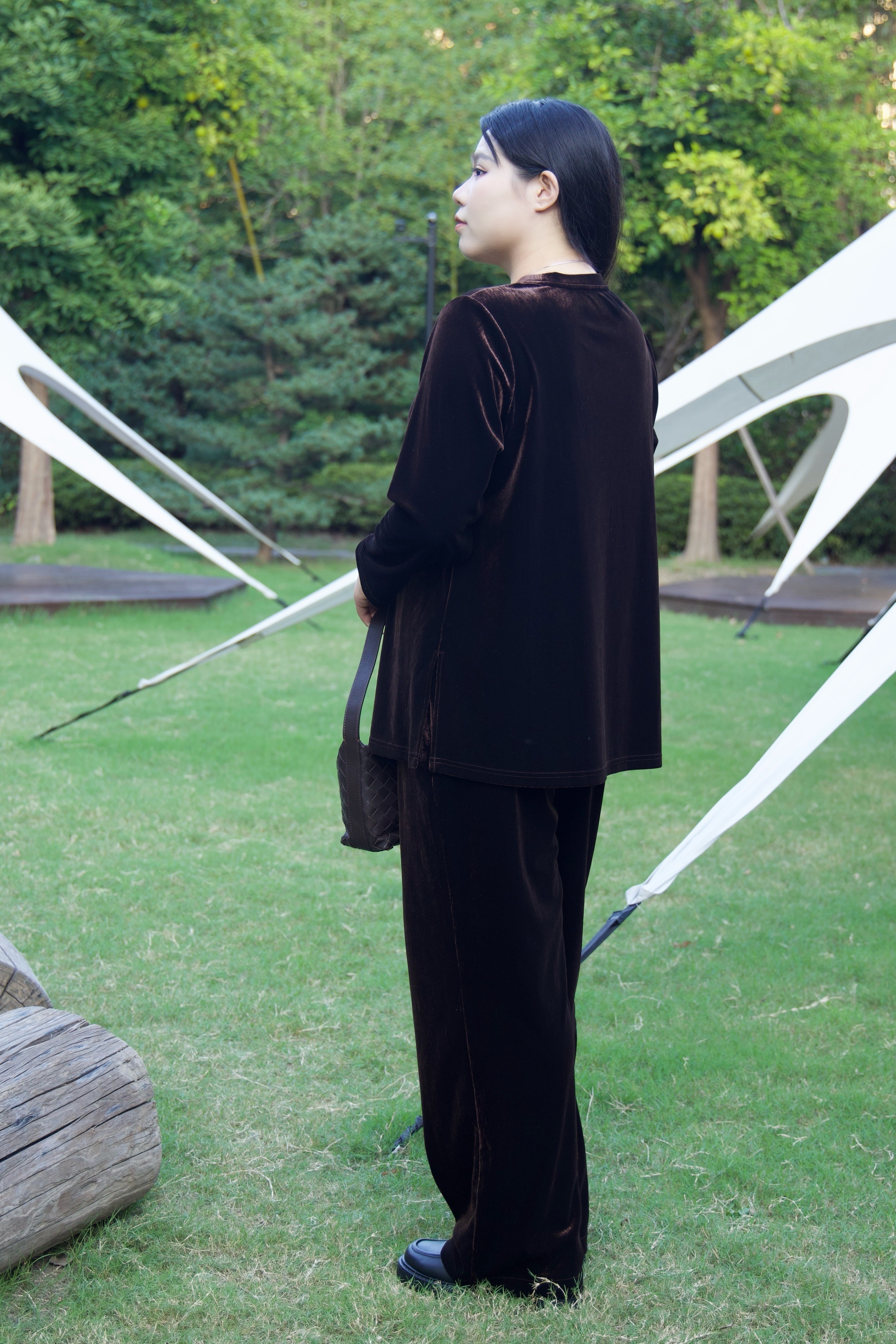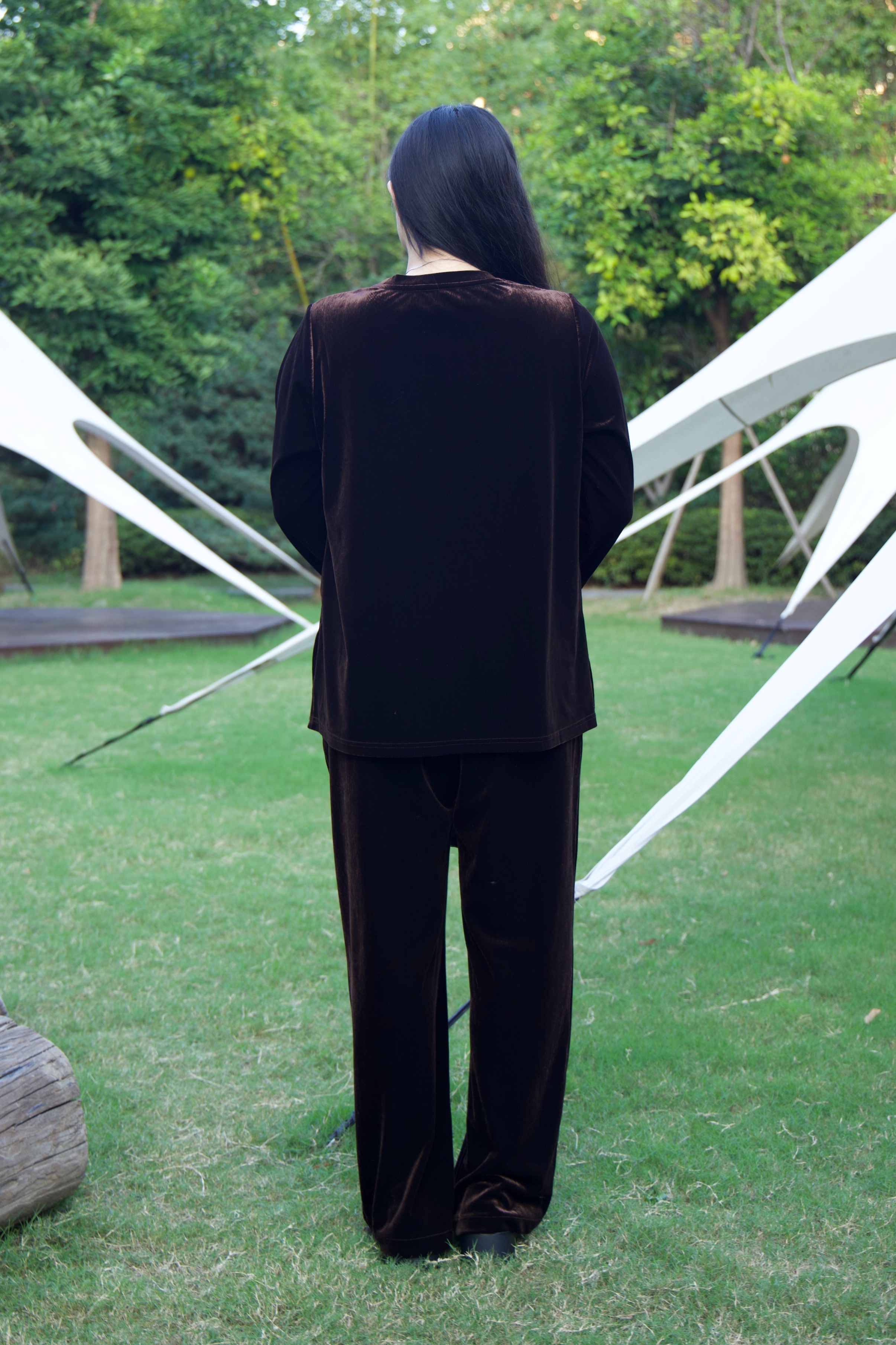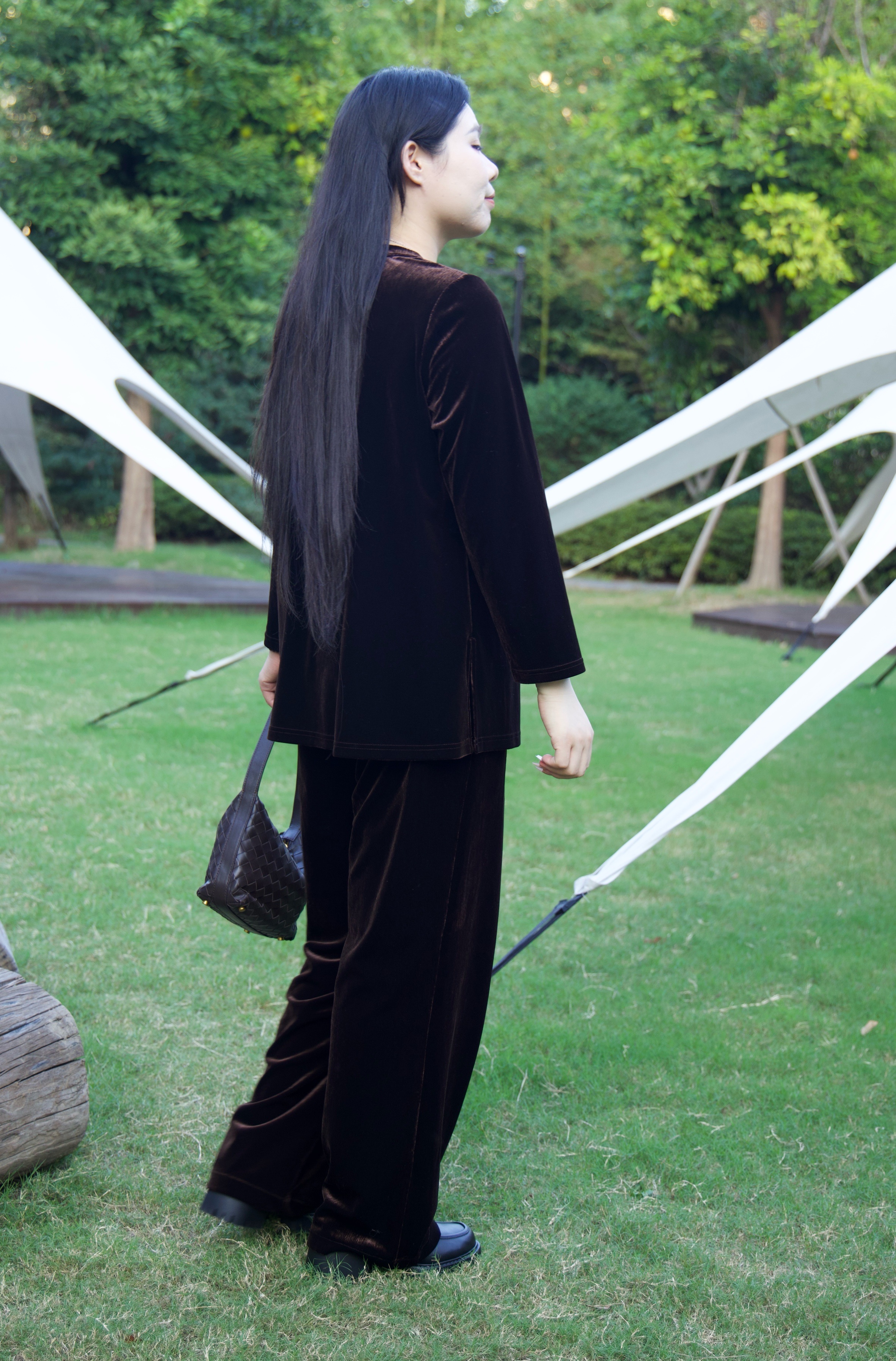 现货,今天发!💫【棕色丝绒套装】高级又有腔调!不起静电,裤子松紧腰。秋冬显贵显瘦第一名!高档气质阔太太感,丝绒套装,洋气高贵两件套,正码正拍
