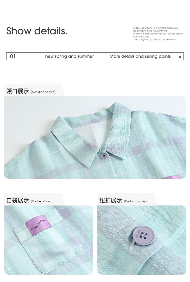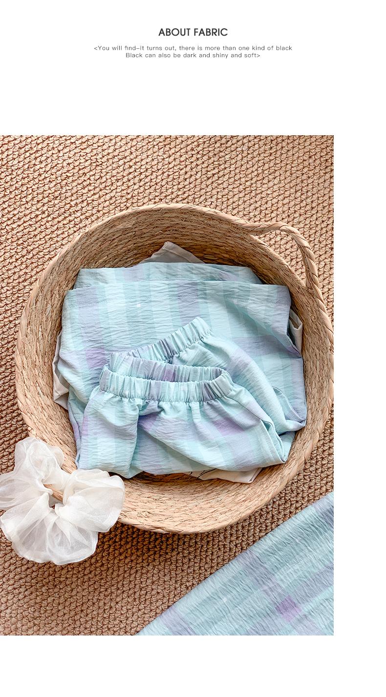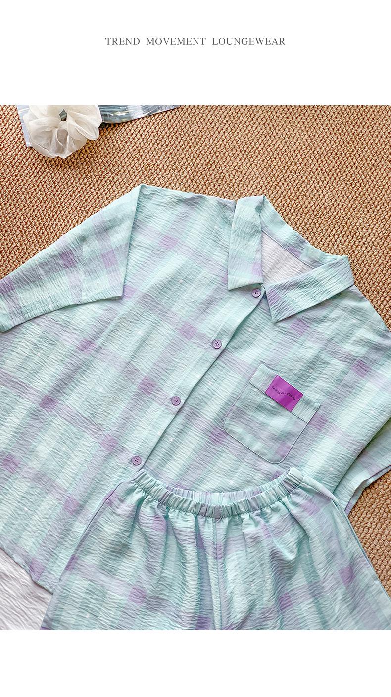 可人儿小众设计师新款泡泡绵女士睡衣夏季短袖可外出家居服三件套