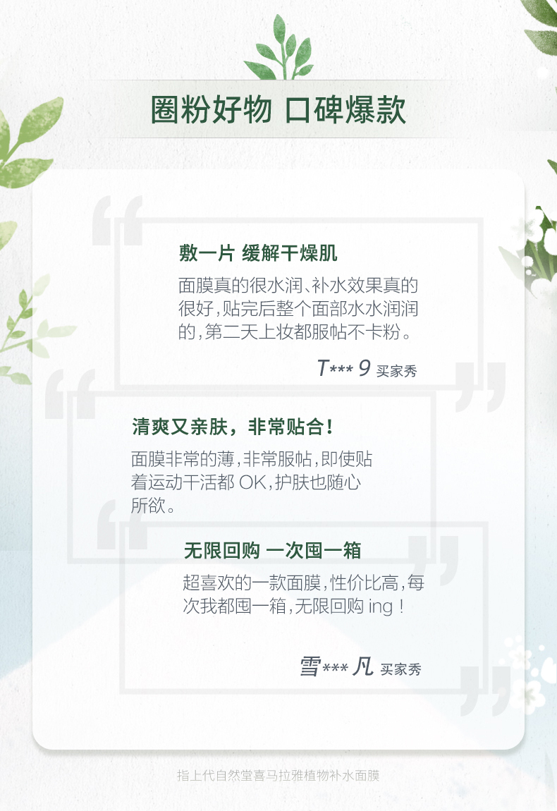 5盒99元 自然堂喜马拉雅植物补水面膜 (5片/盒)【LY】