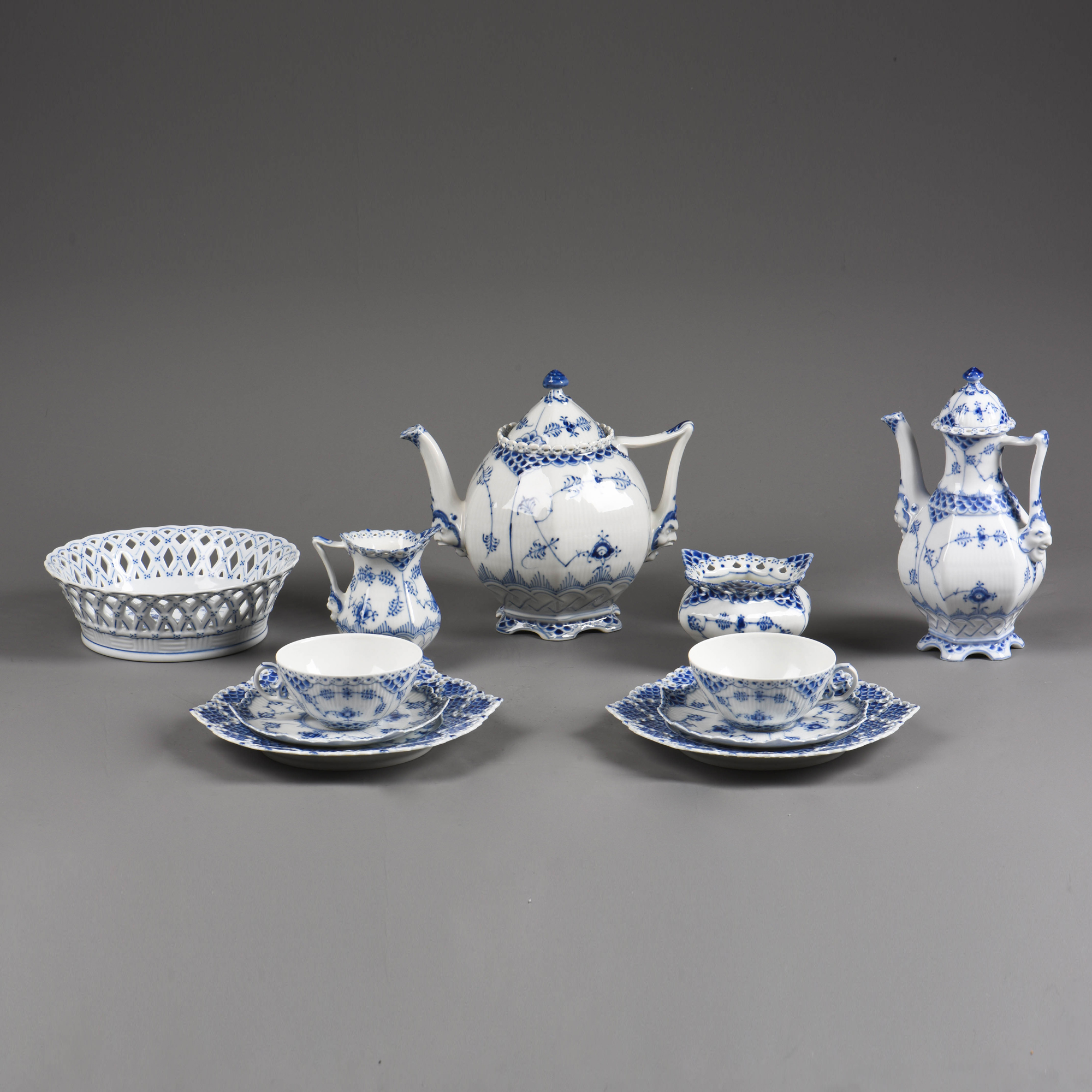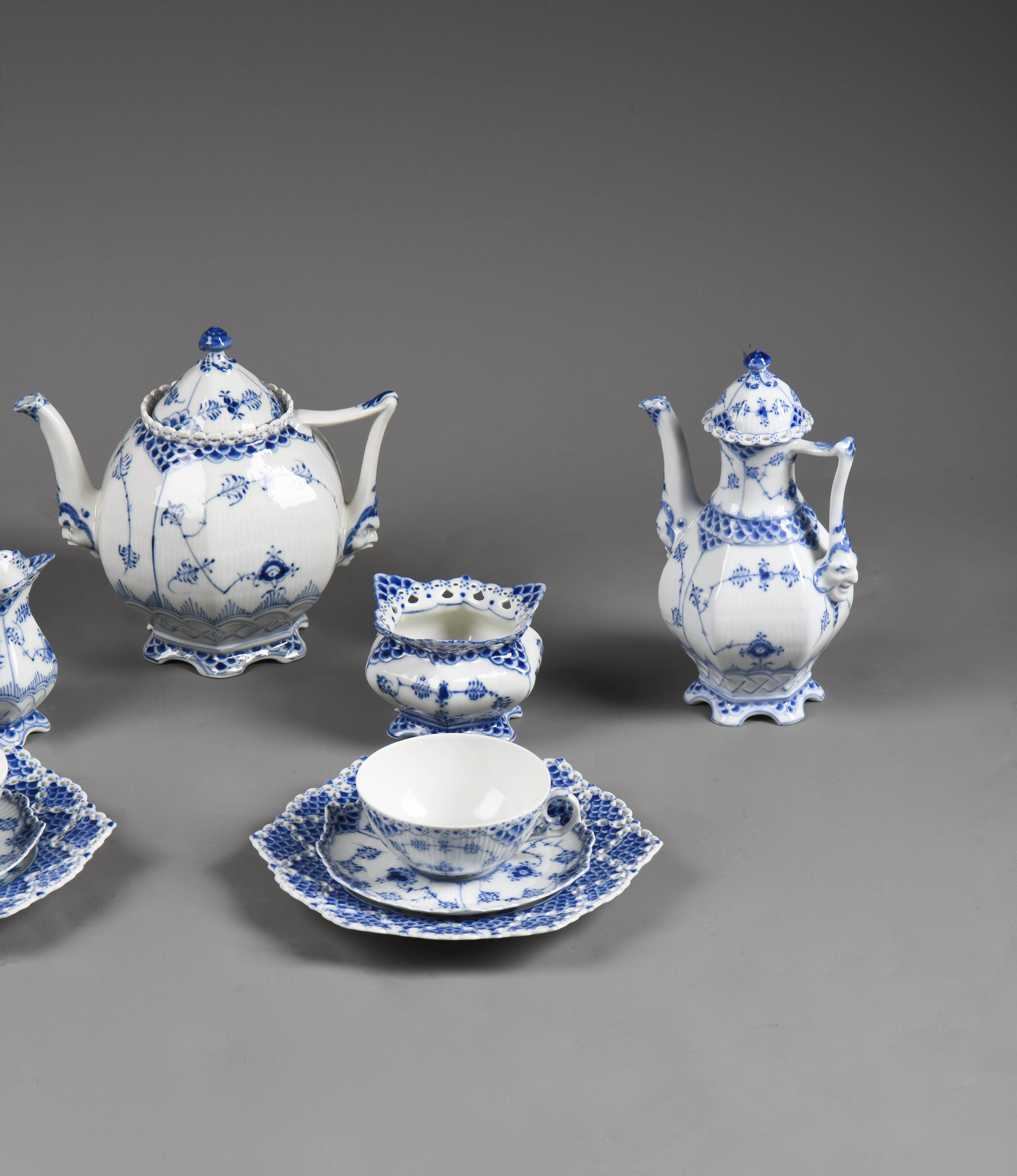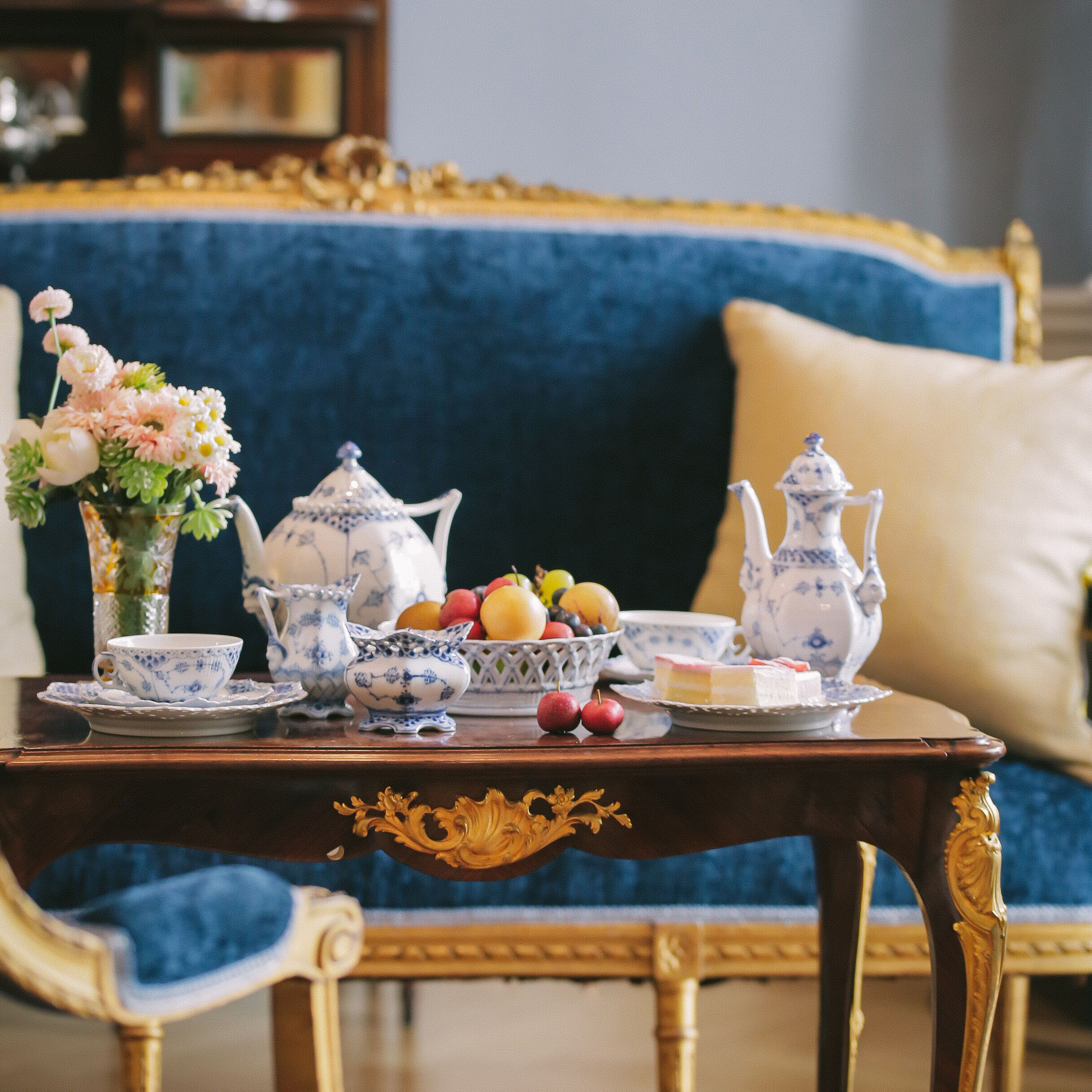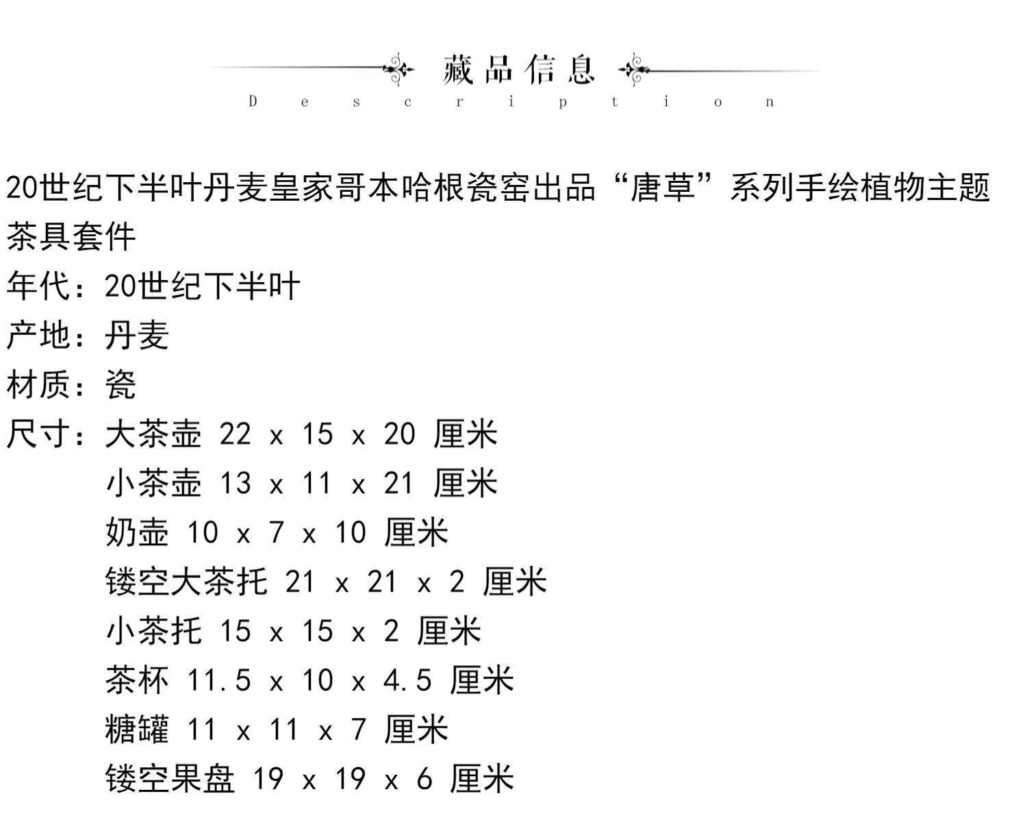 独角鹿西洋古董哥本哈根瓷窑唐草系列手绘植物瓷器双人茶具套装