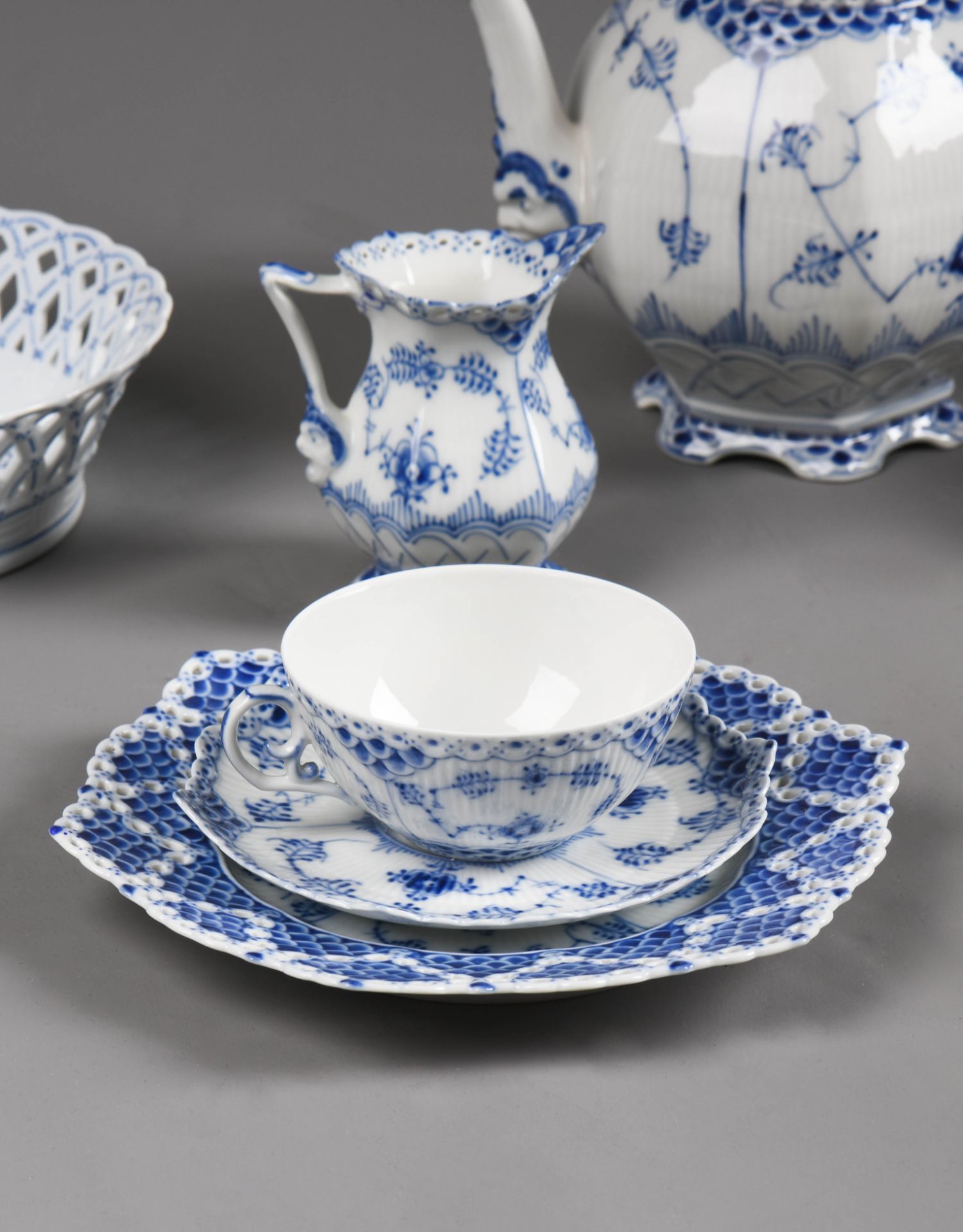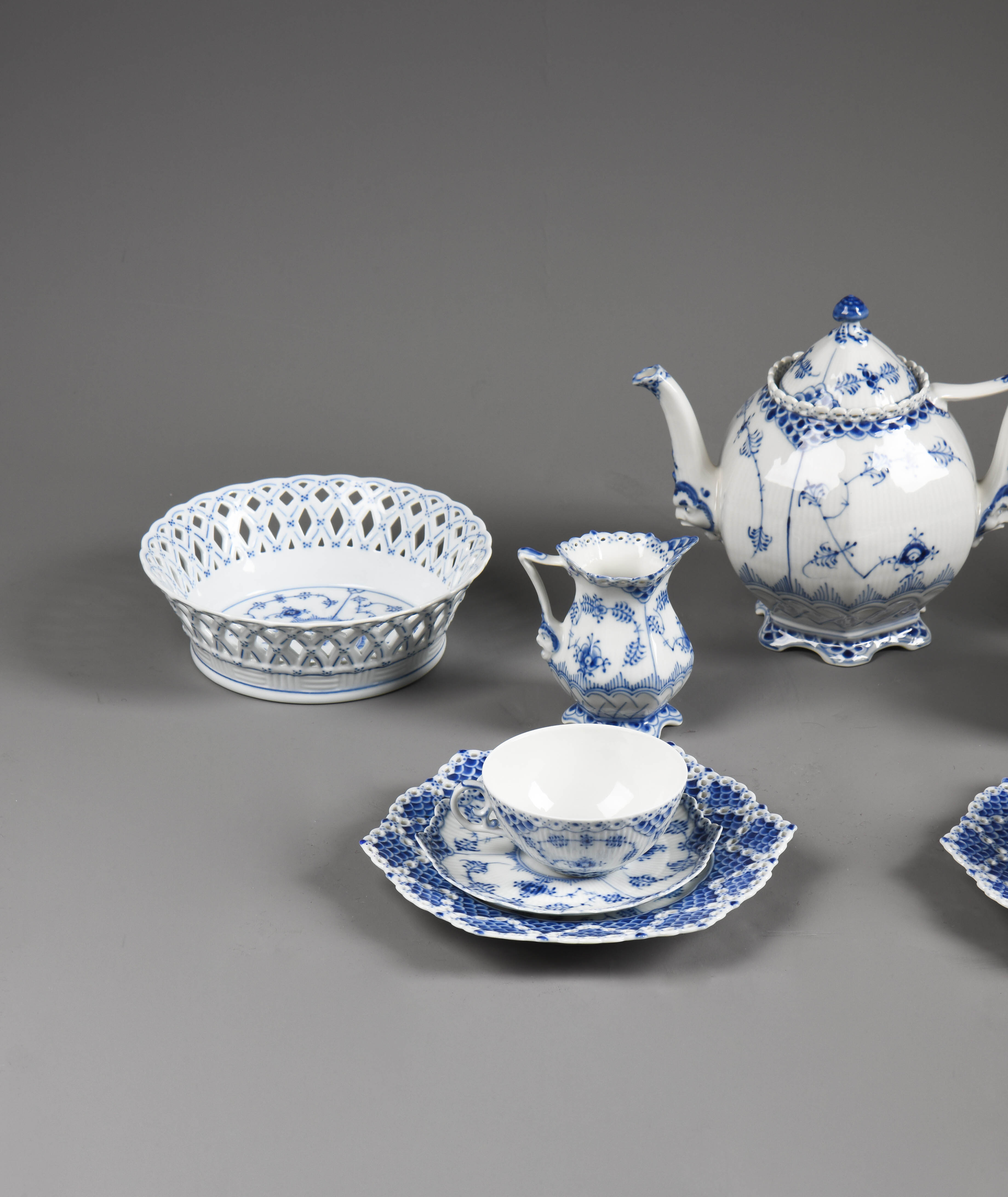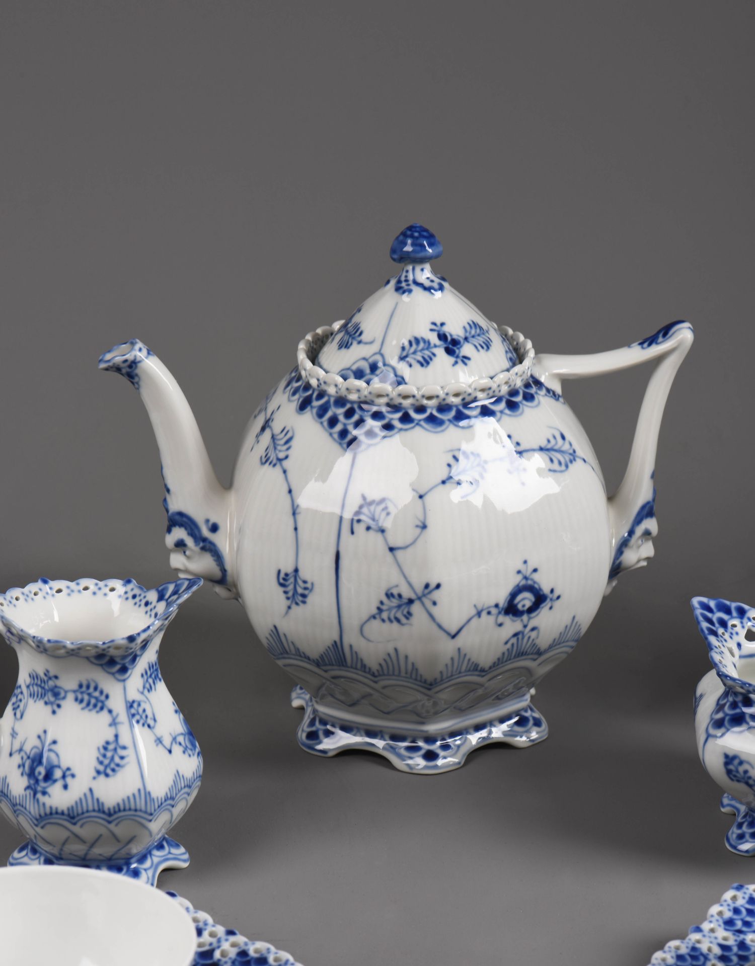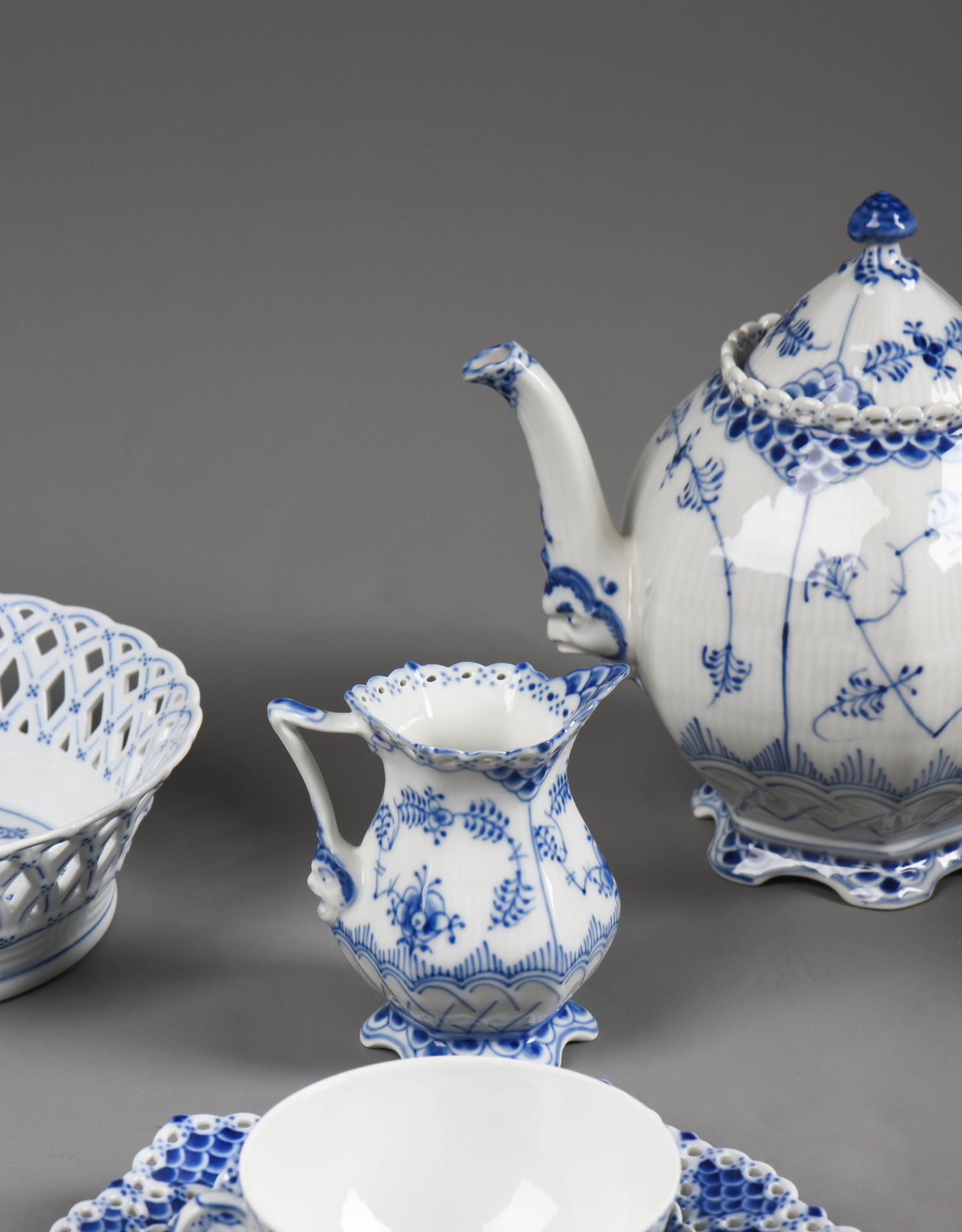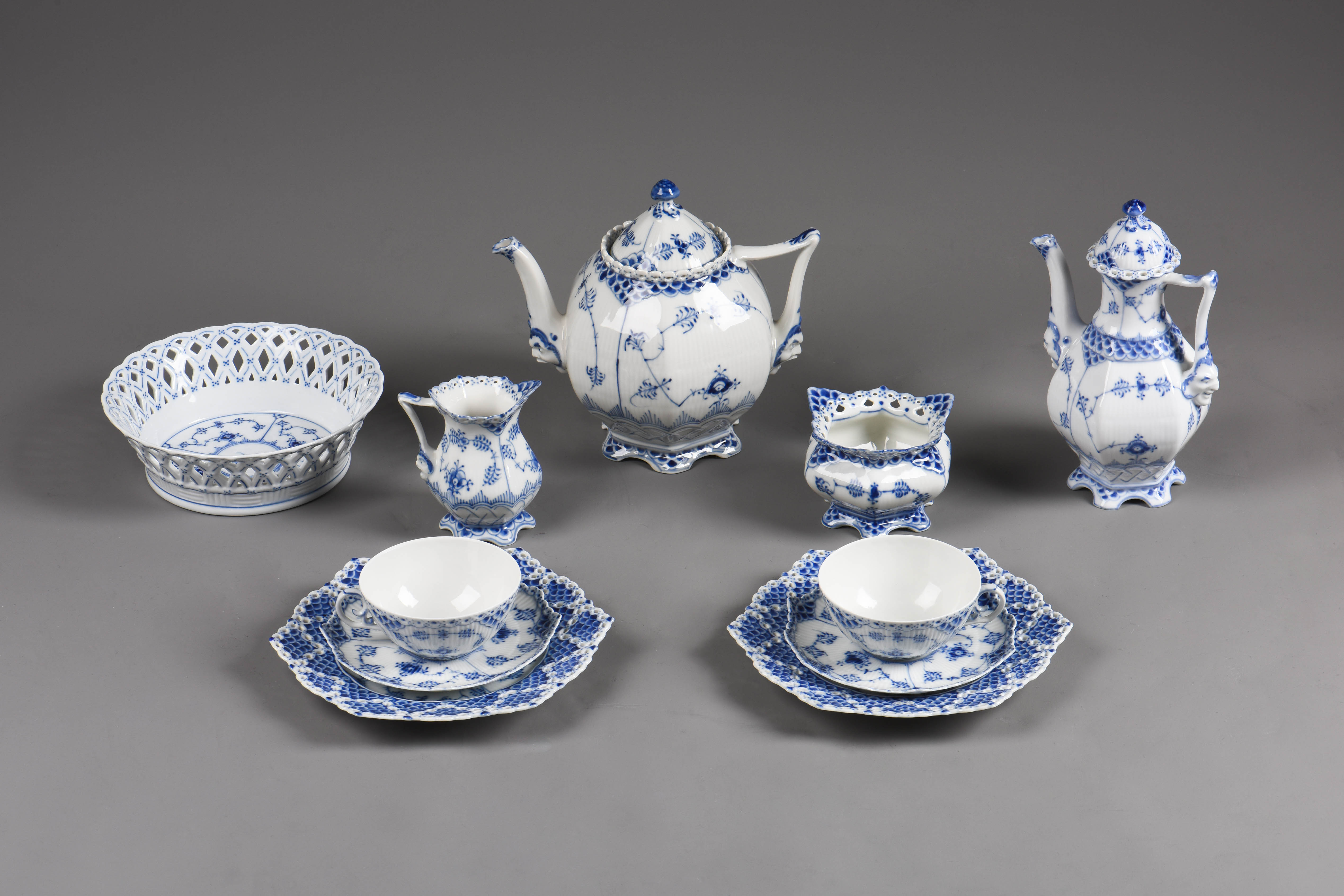 独角鹿西洋古董哥本哈根瓷窑唐草系列手绘植物瓷器双人茶具套装