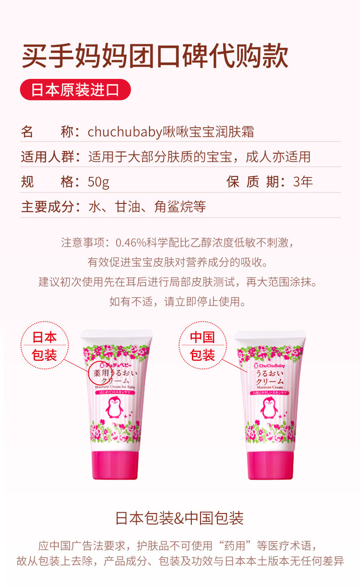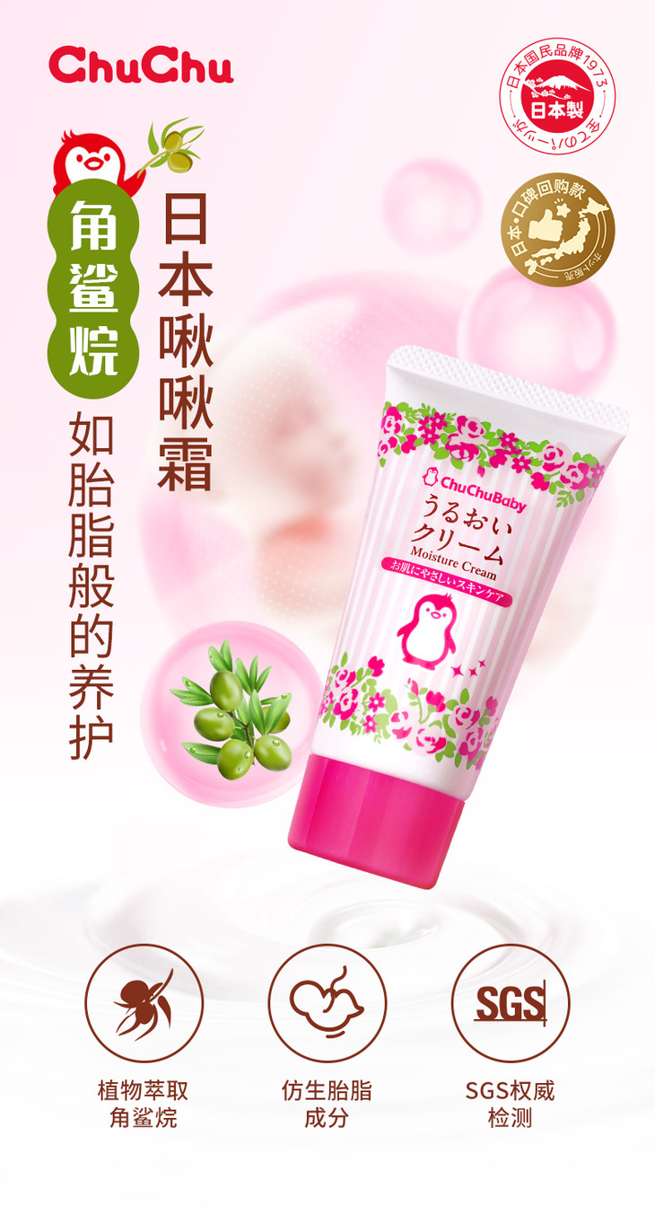 【薇娅推荐,滋润防皴】日本进口chuchu啾啾儿童面霜chuchubaby植萃角鲨烷宝宝霜婴儿面霜润肤乳露滋润保湿补水面霜