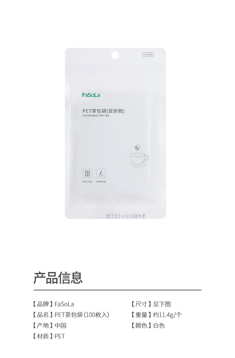 FaSoLa 100枚玉米纤维茶包袋一次性茶叶过滤袋泡茶袋小包茶叶分装袋