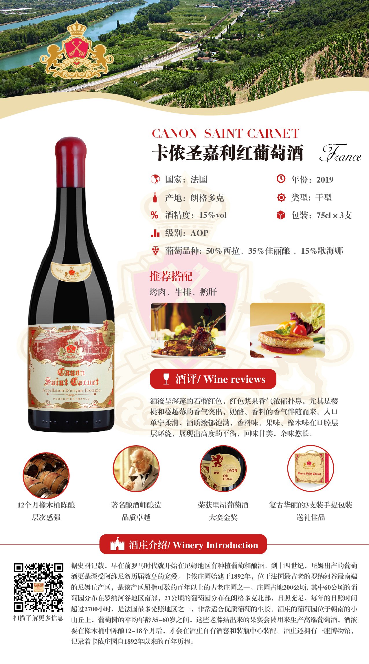 法国朗格多克干红葡萄酒3支礼盒装