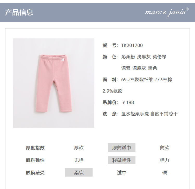 【加绒】马克珍妮冬装 女童保暖打底裤 儿童裤子长裤201700