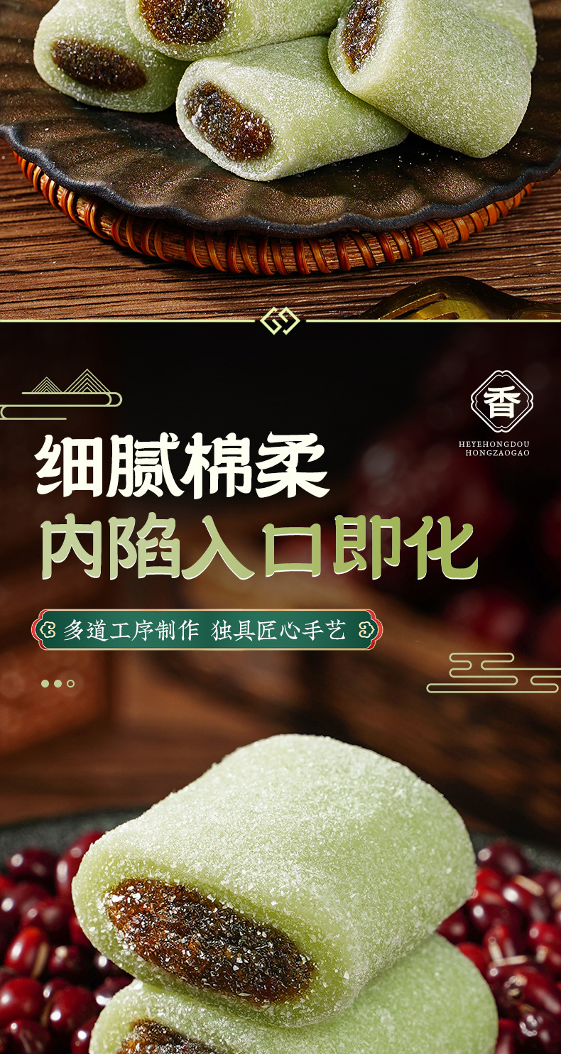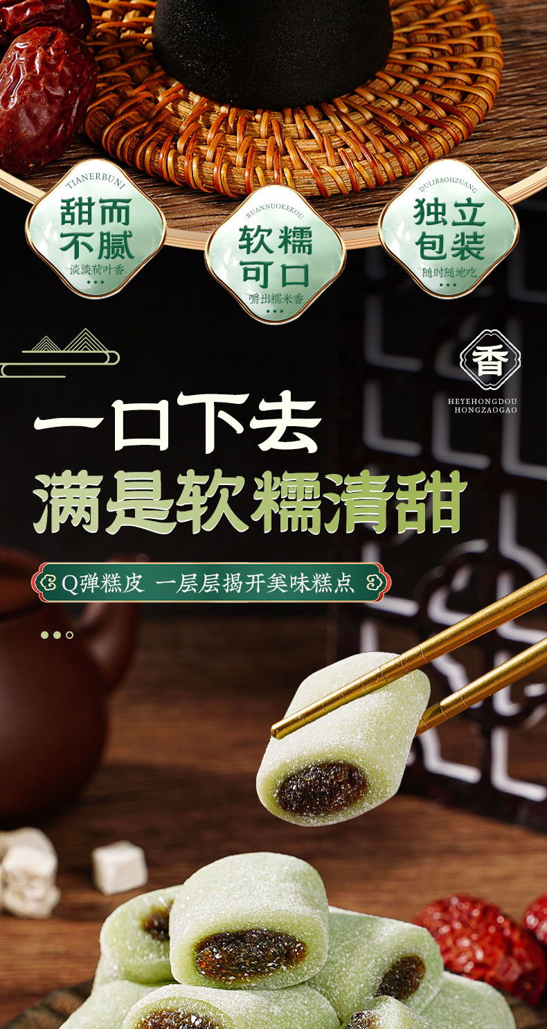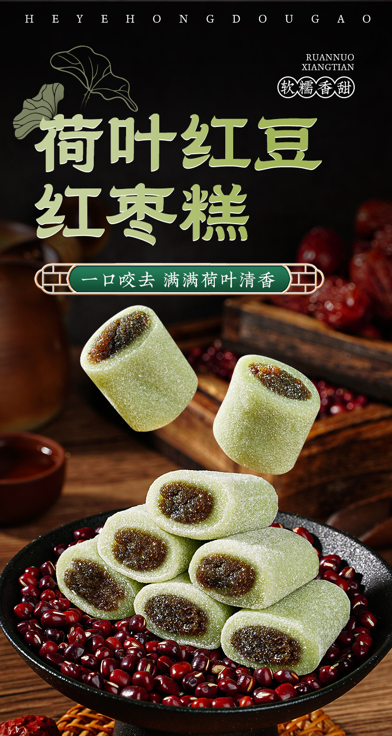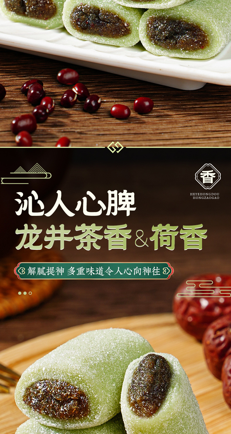 【秒杀❗️9.9抢11包🔥荷叶龙井红豆糕】传统工艺匠心制作,Q弹糕皮内陷入口即化,软糯清甜满满原料看得见,龙井味糯米糕,糍粑雪媚娘糕滋补健康糕点零食品L