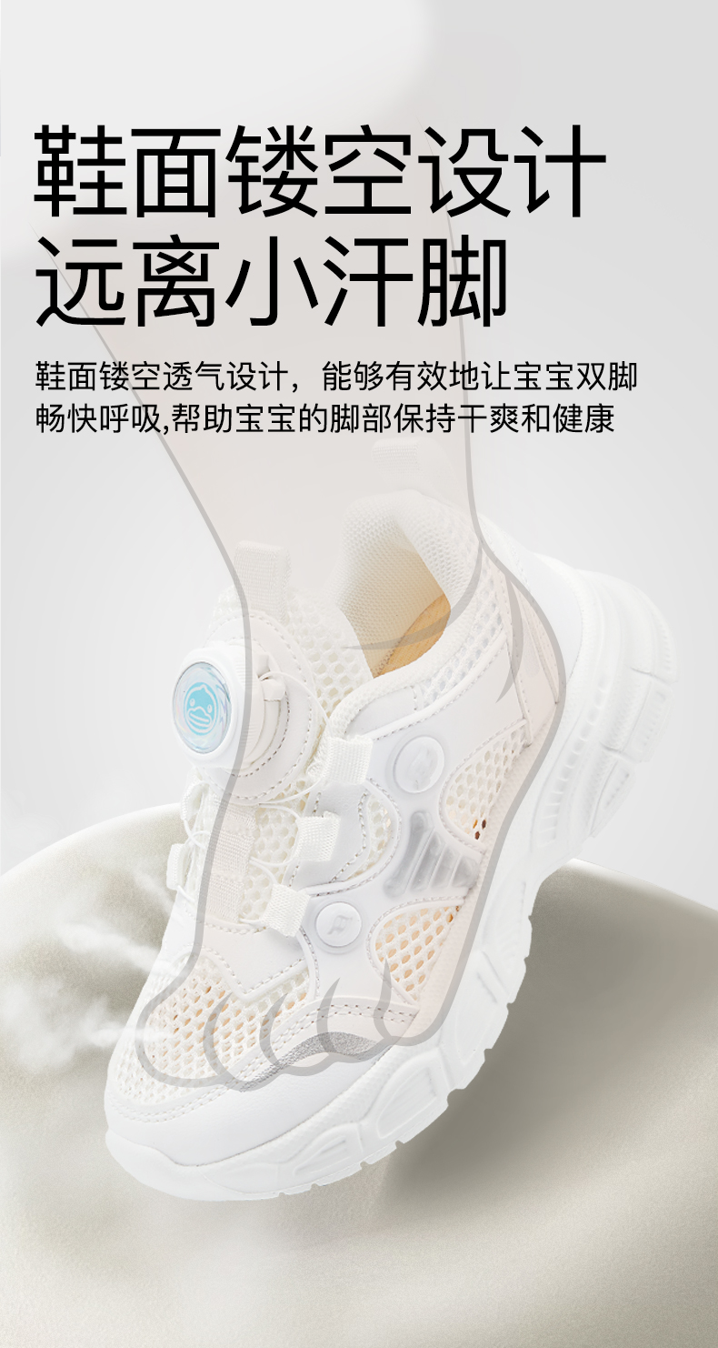 B.Duck小黄鸭童鞋女童运动鞋夏季透气儿童网面鞋宝宝鞋子23-30 B1686831