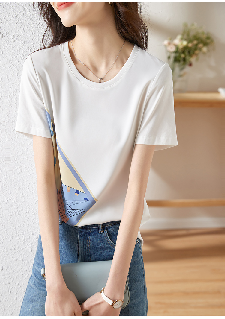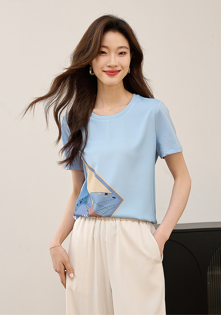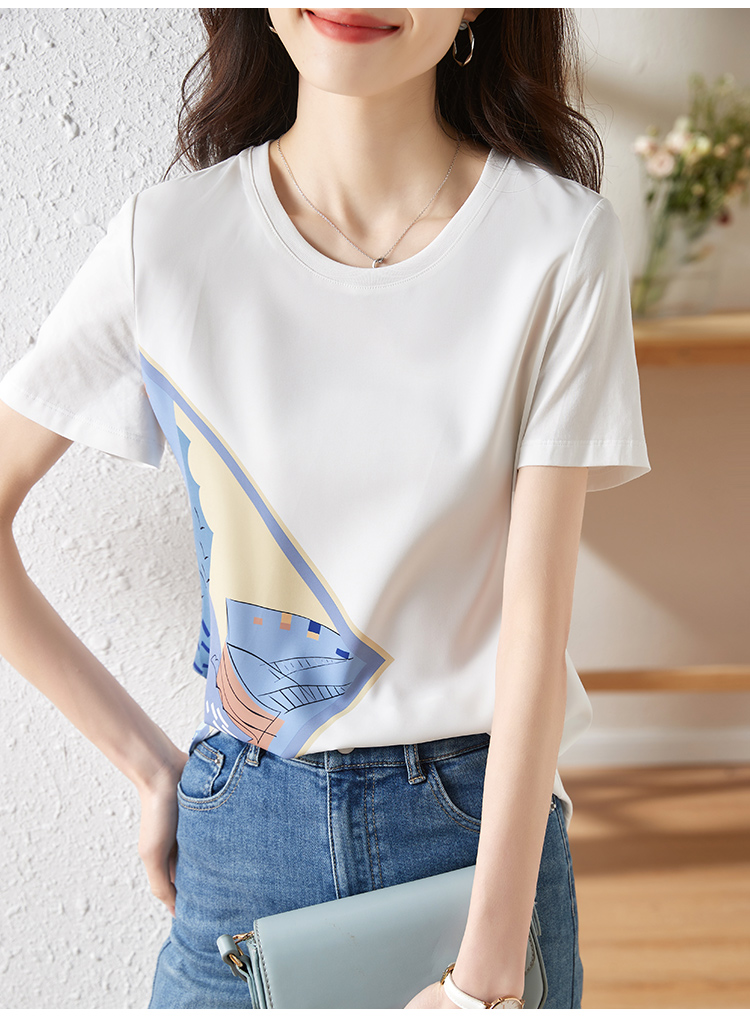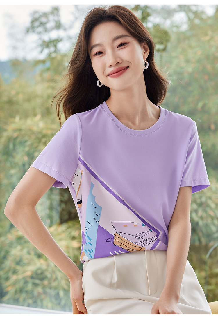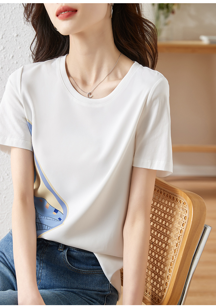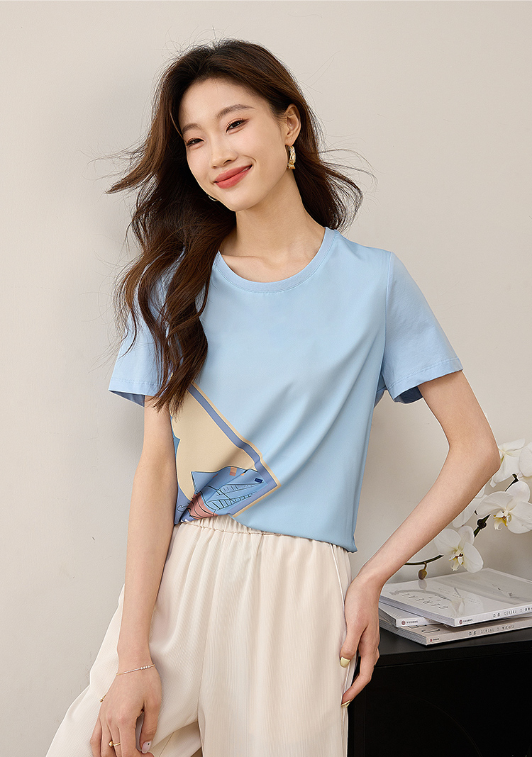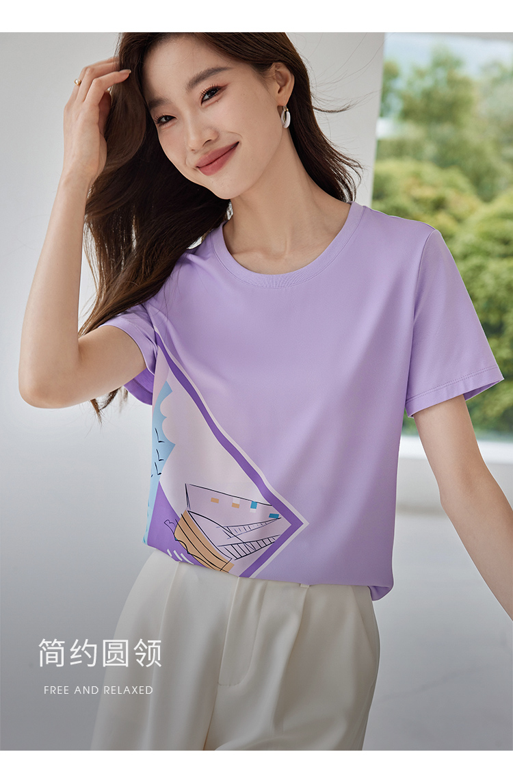 【专属特价】熙世印花短袖t恤女小众设计夏款法式简约圆领宽松上衣ins潮