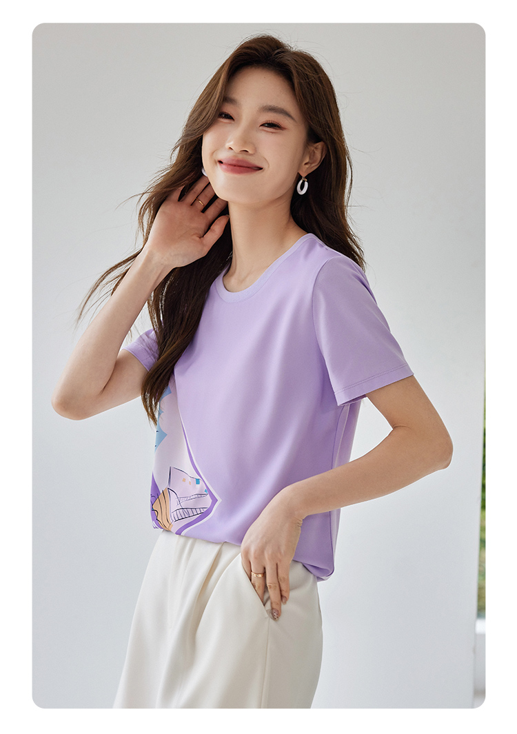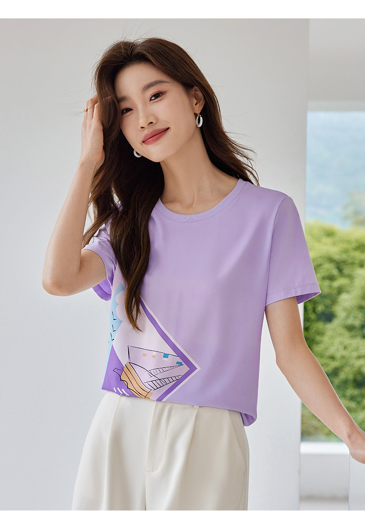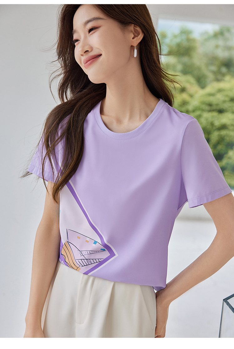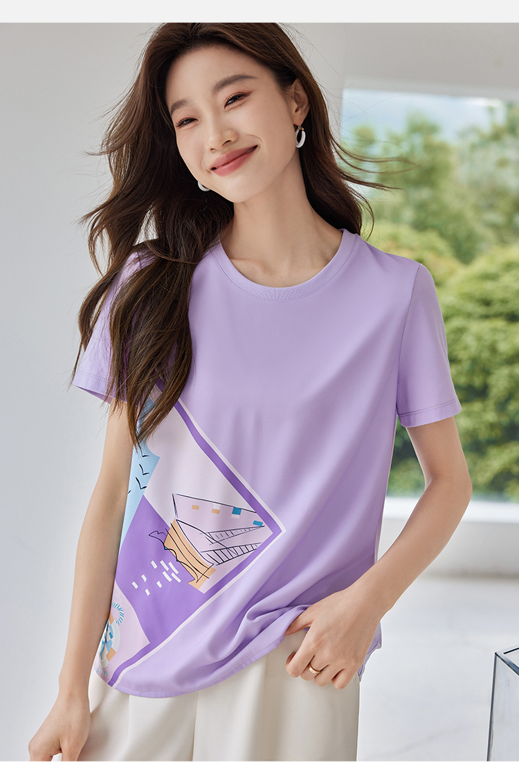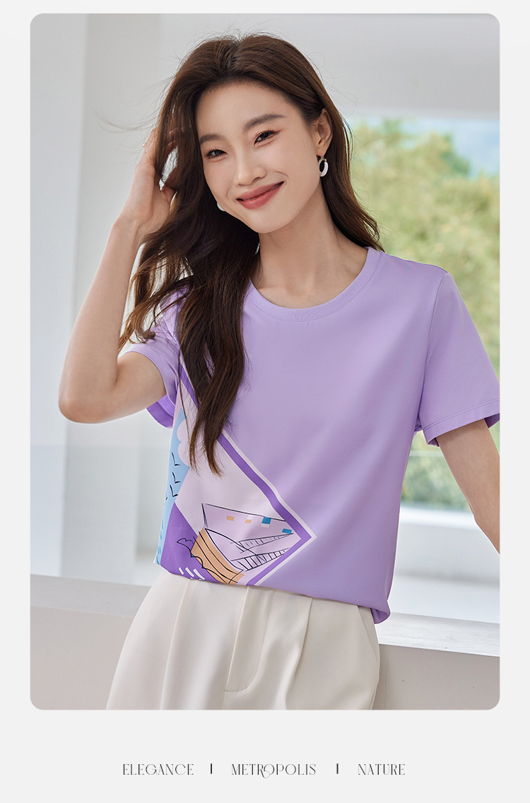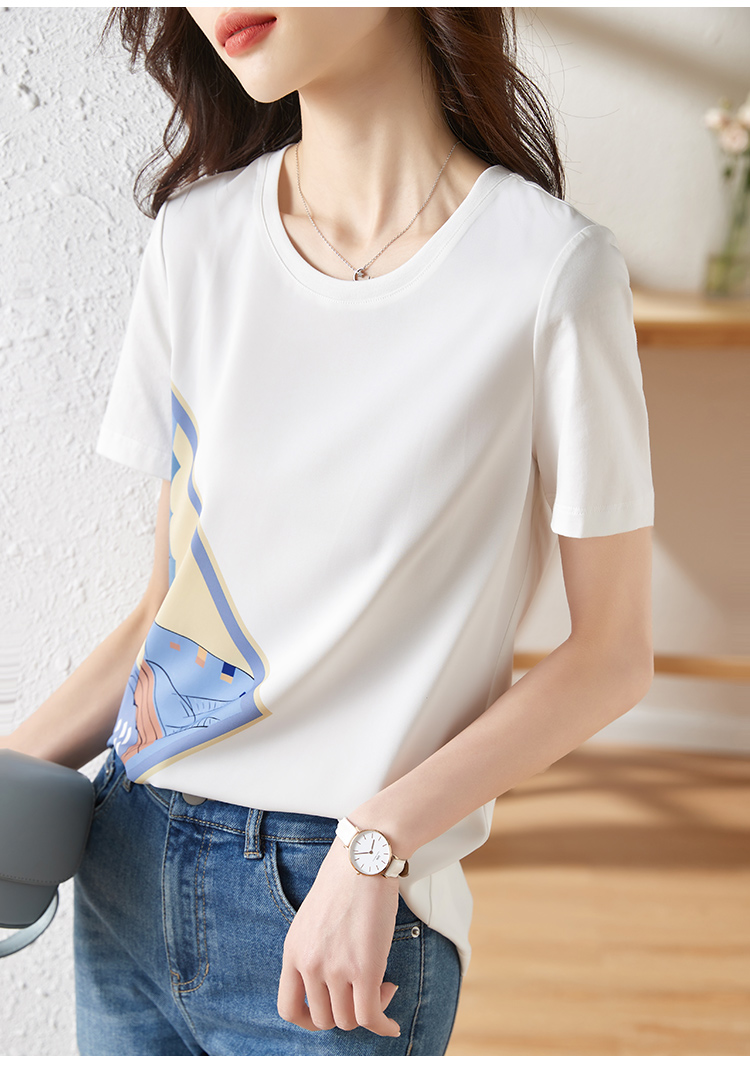 【专属特价】熙世印花短袖t恤女小众设计夏款法式简约圆领宽松上衣ins潮