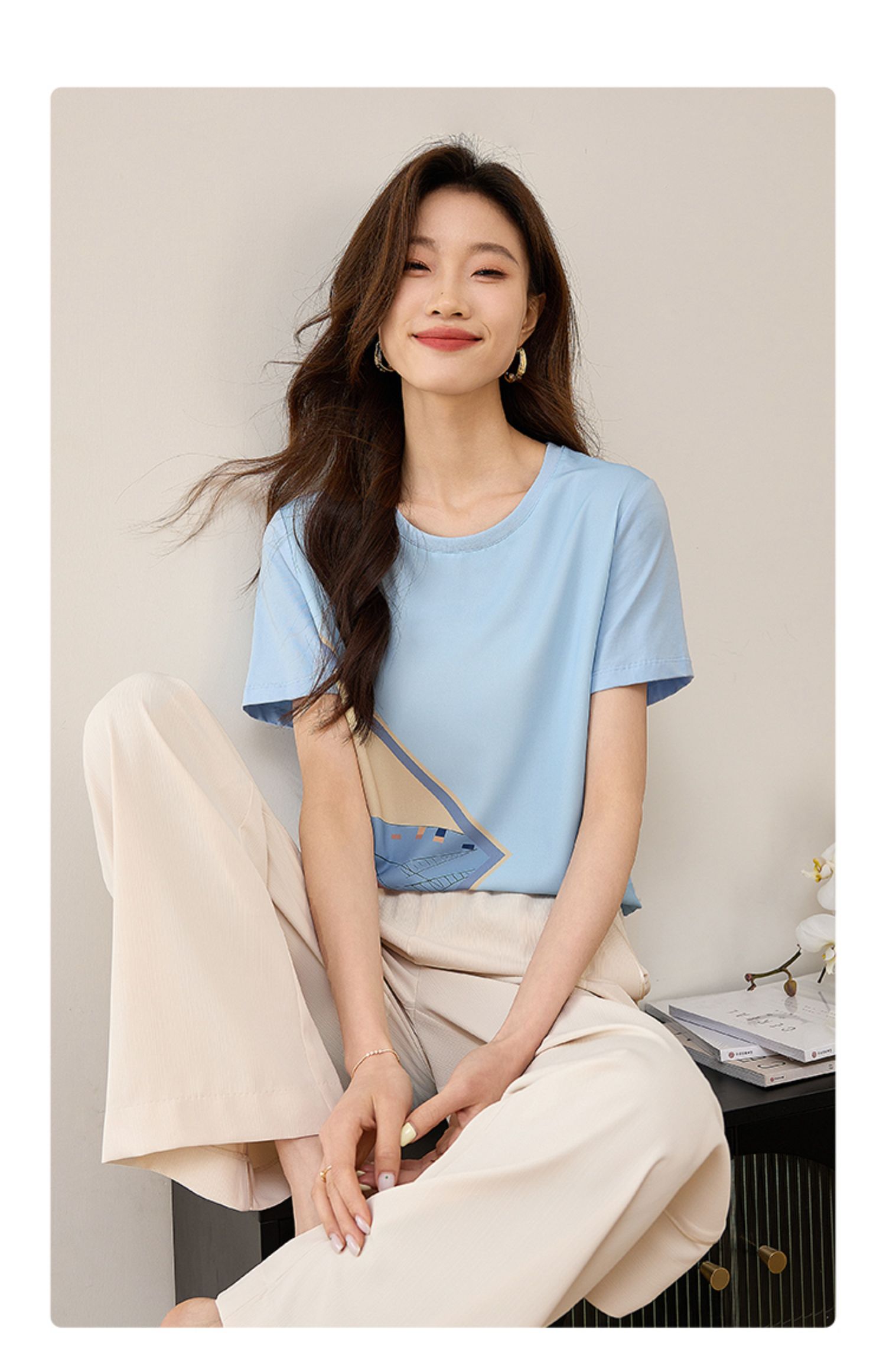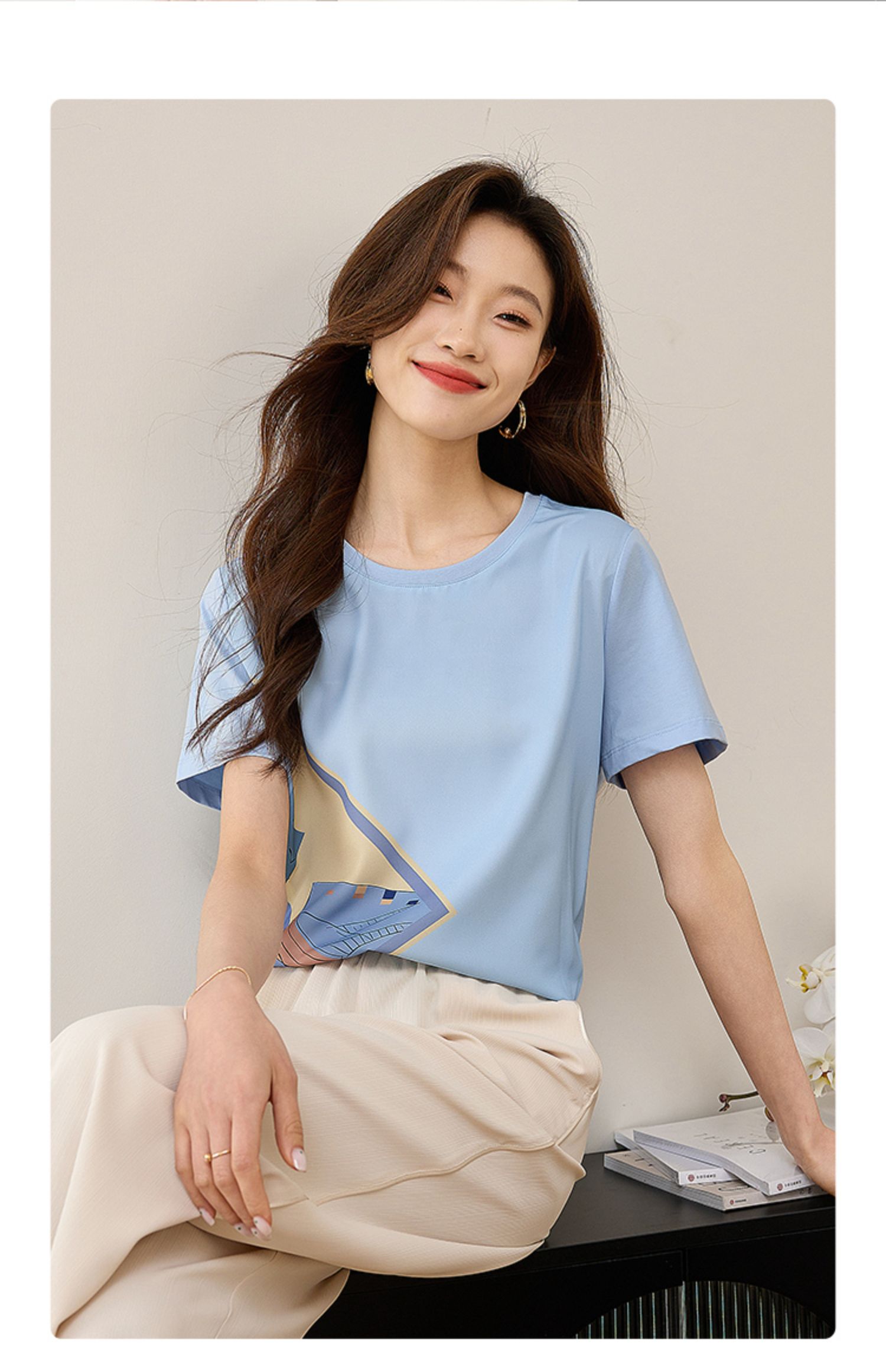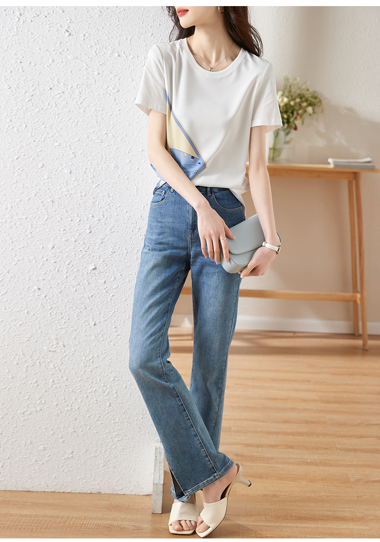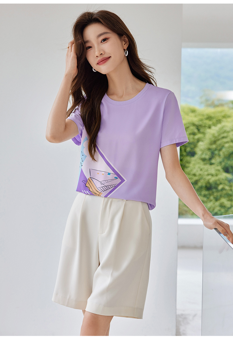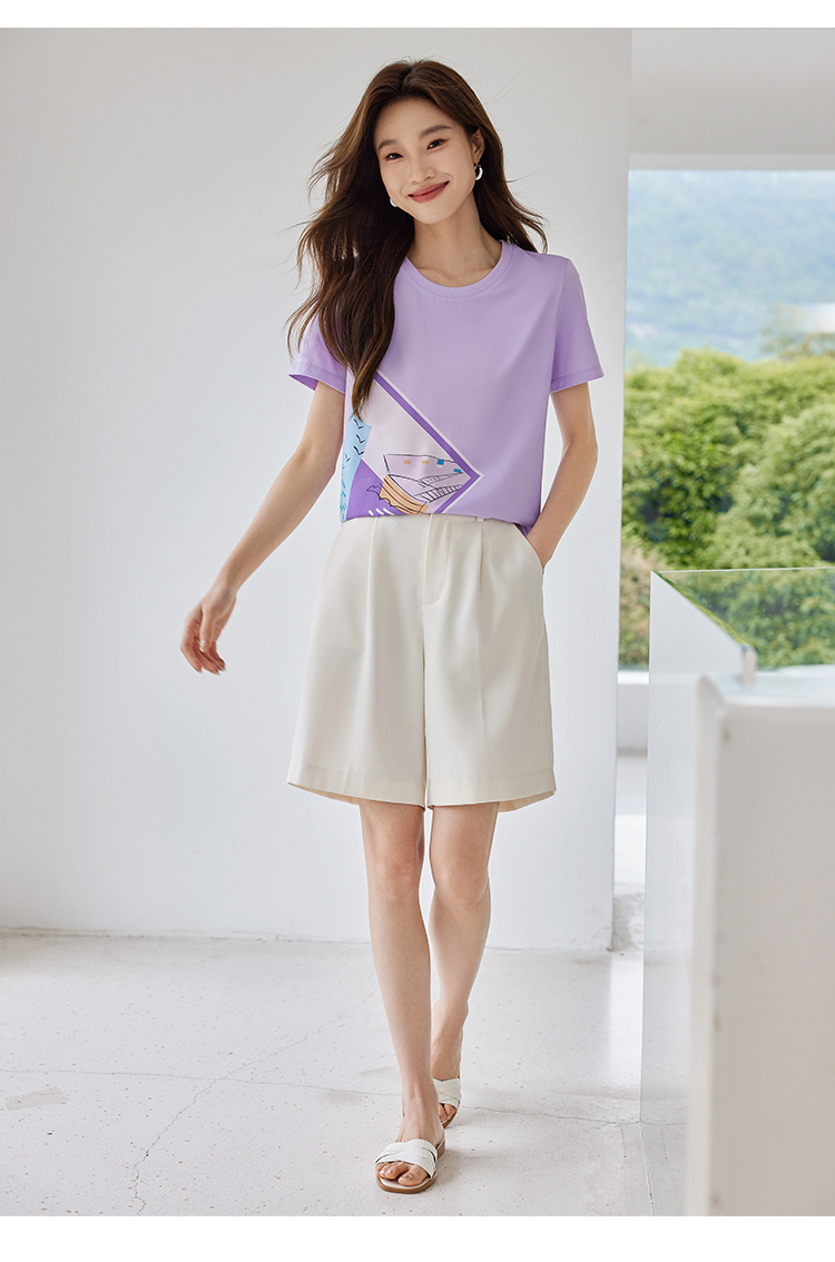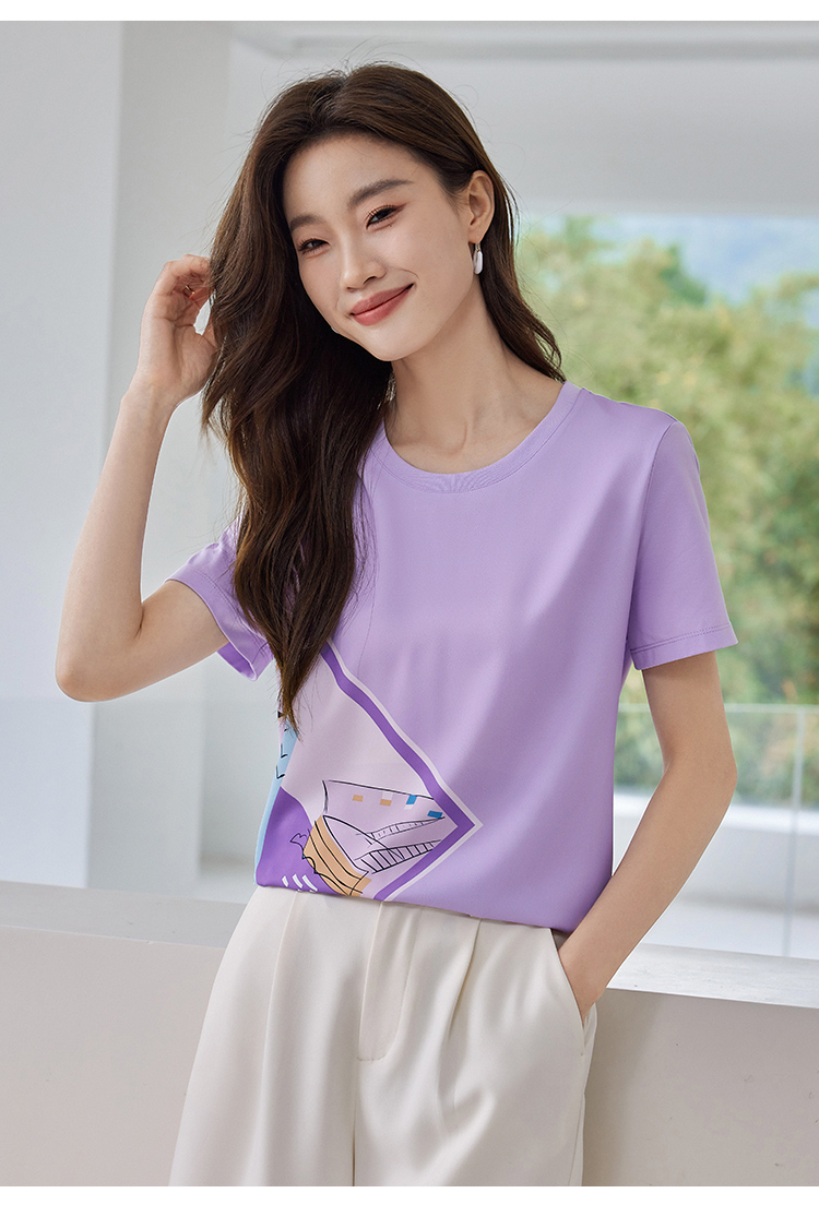 【专属特价】熙世印花短袖t恤女小众设计夏款法式简约圆领宽松上衣ins潮
