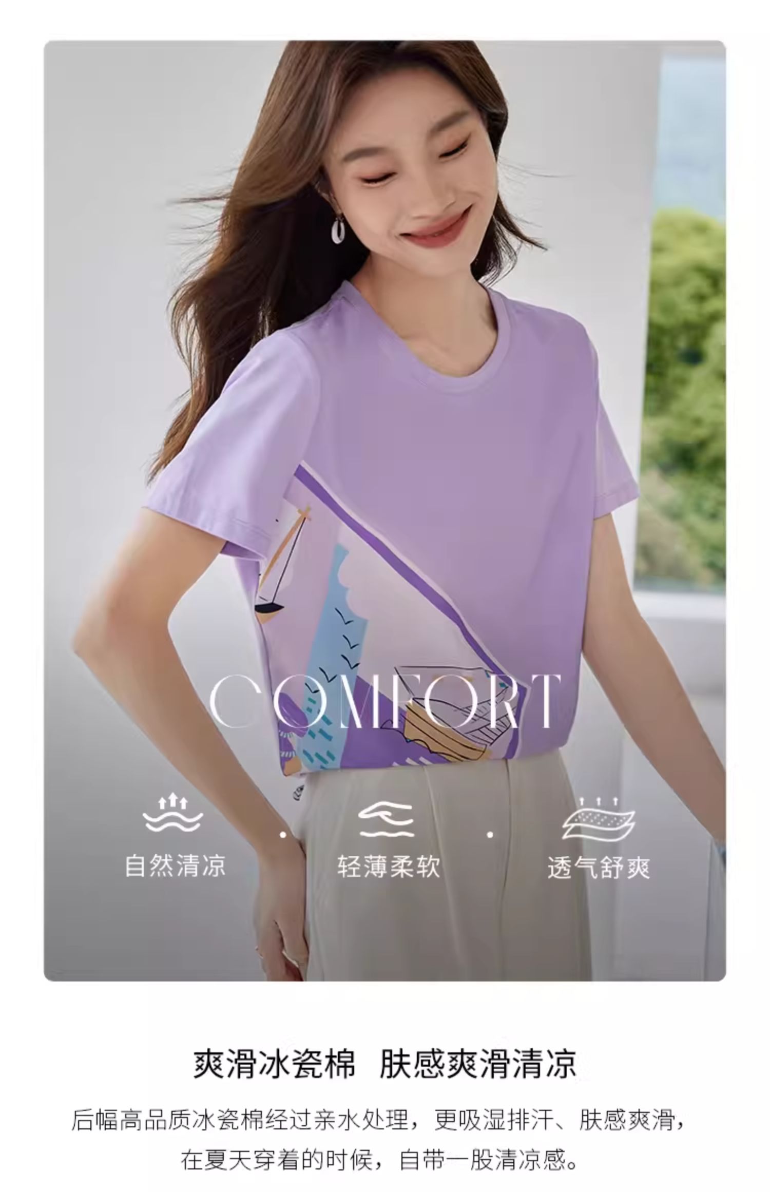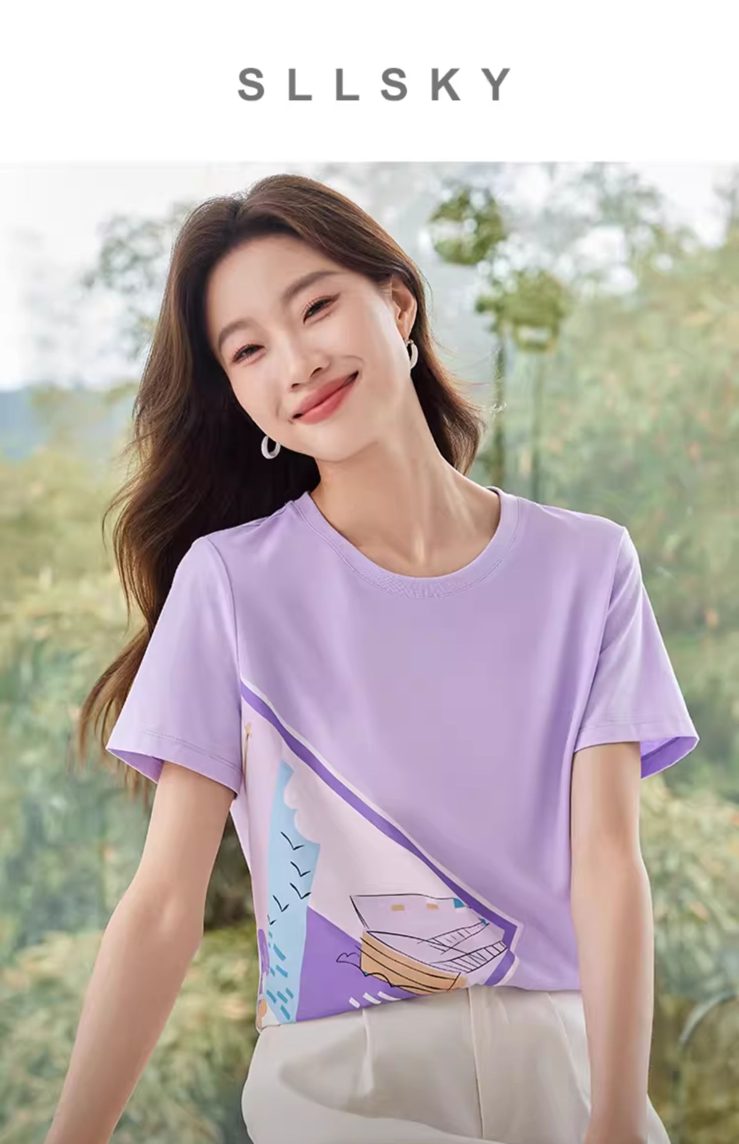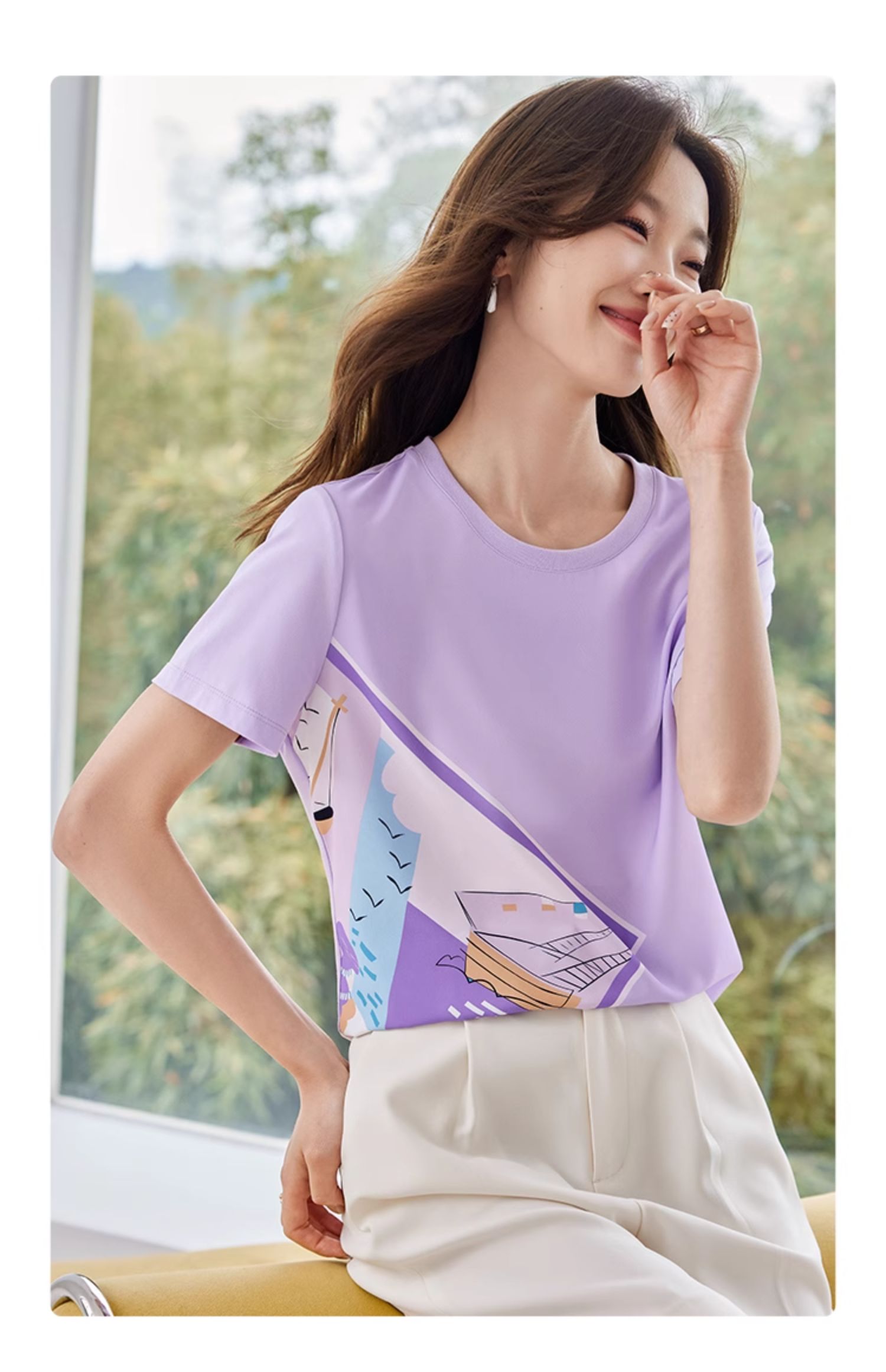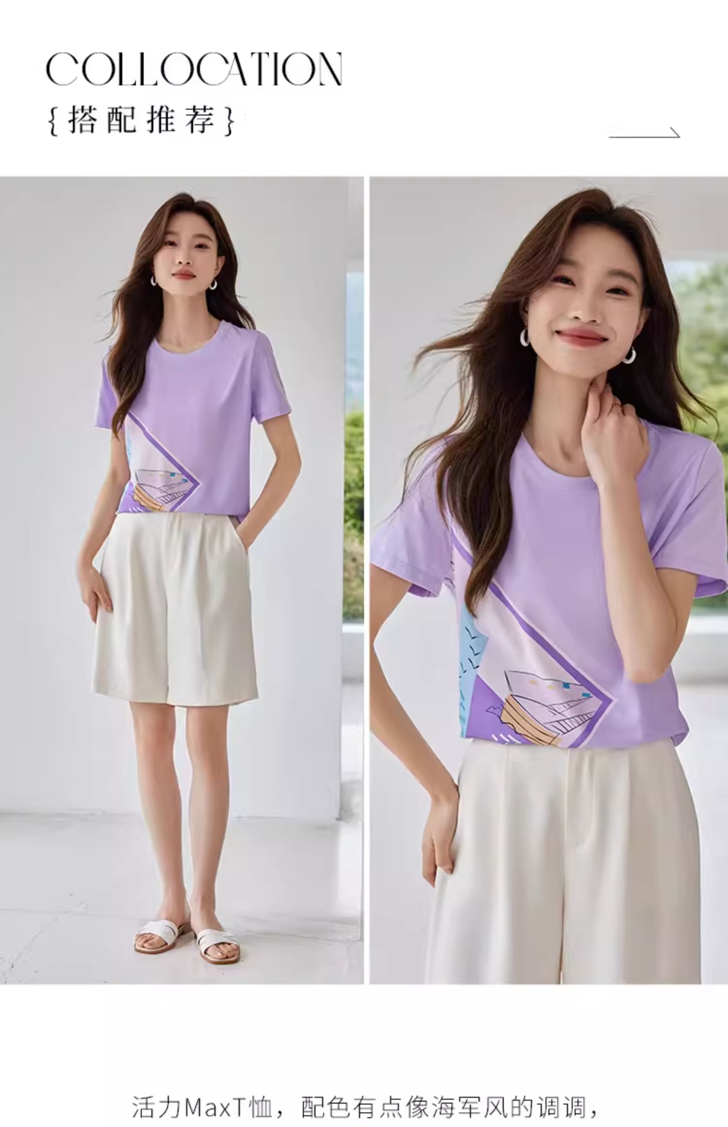 【专属特价】熙世印花短袖t恤女小众设计夏款法式简约圆领宽松上衣ins潮