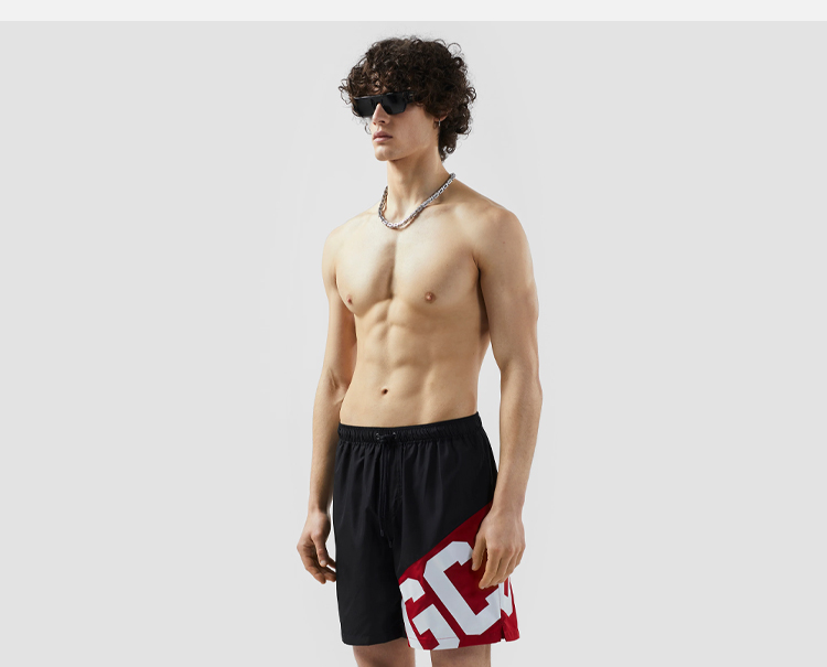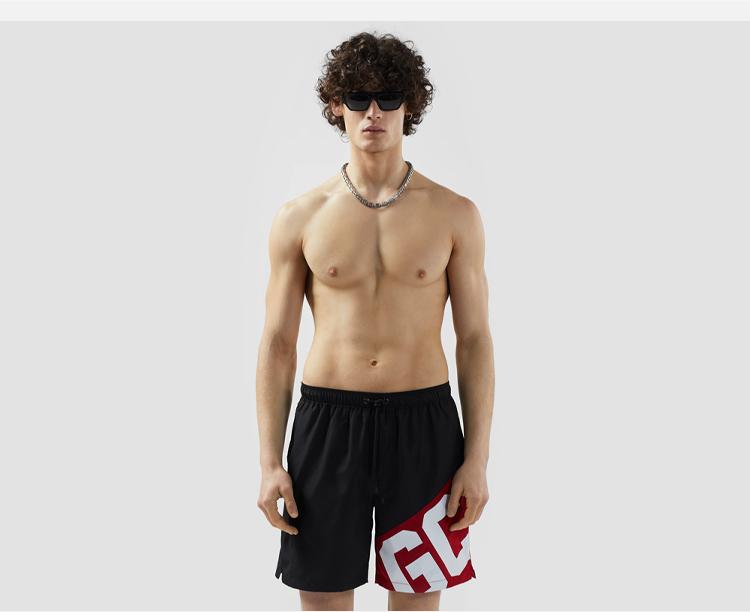GCDS 男士字母徽标印花涤纶游泳短裤 黑色 B1EM3900AW1 99