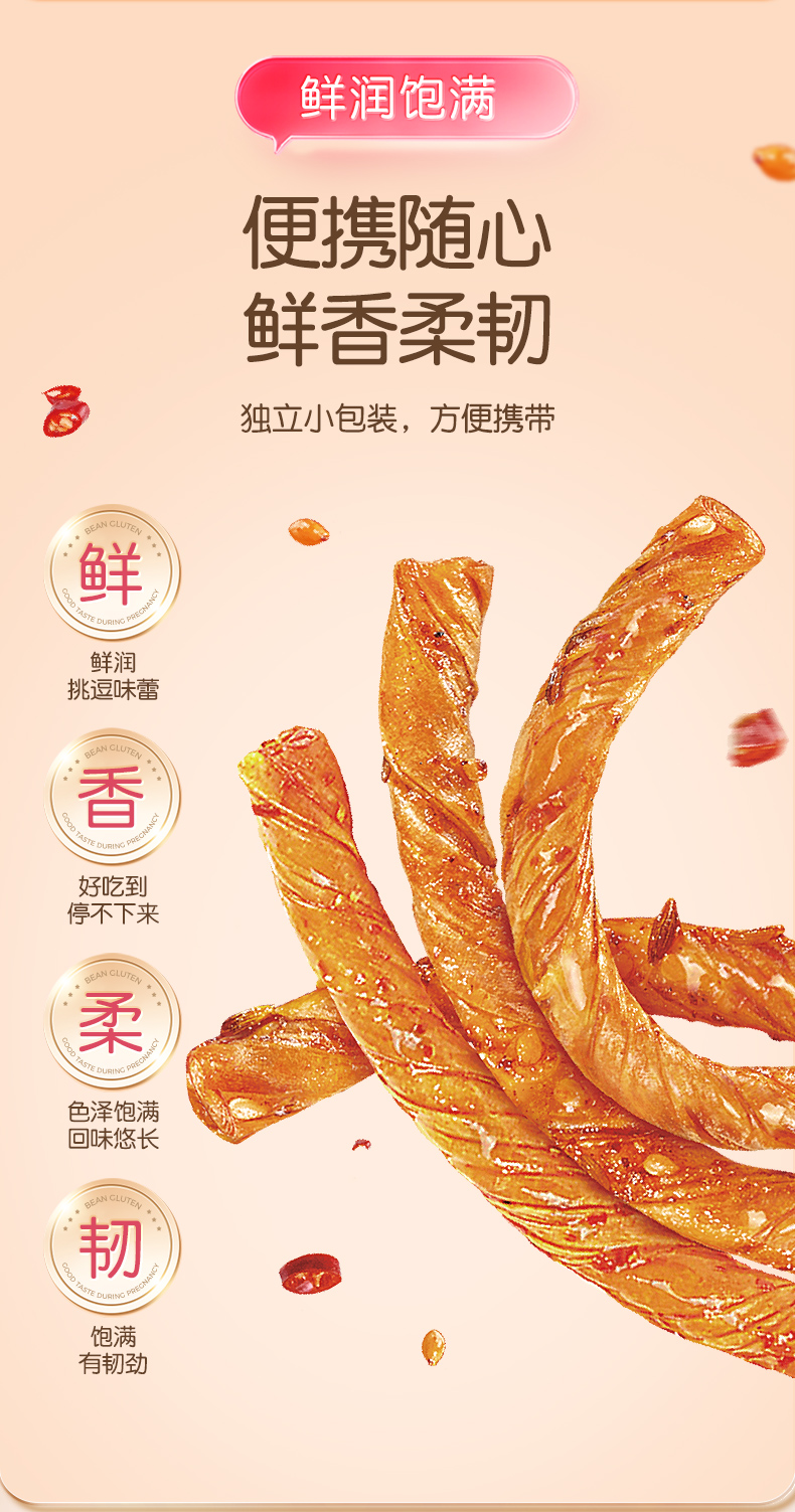 孕味食足豆筋辣条卷孕妇可吃的孕期辣味解馋零食必备100g(10袋)