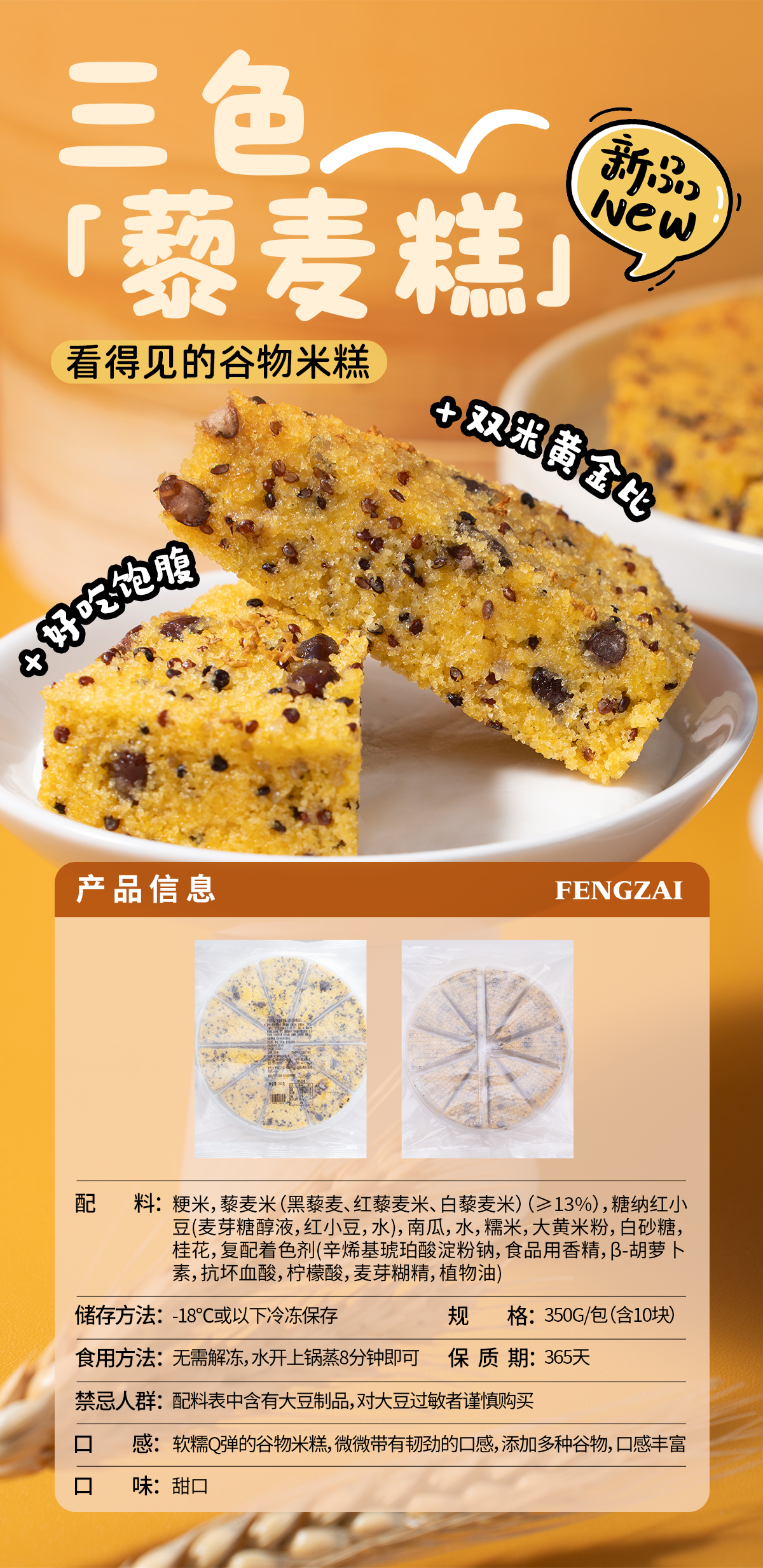 峰仔玉米方糕540g发糕早餐点心半成品传统糕点糯米玉米粉加热即食