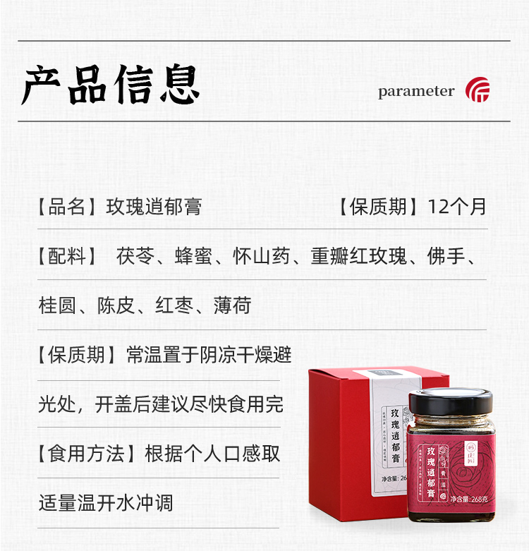 璞匠 玫瑰逍郁膏茯苓蜂蜜重瓣红玫瑰桂圆陈皮红枣女性食养268g