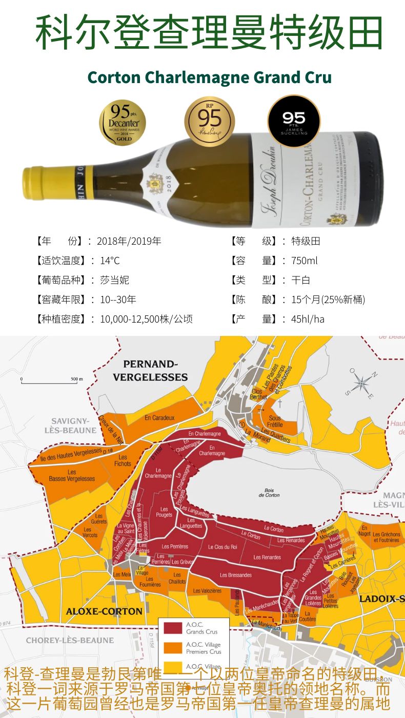 约瑟夫·杜鲁安Corton Charlemagne Grand Cru 2018、2019科尔登查理曼特级田