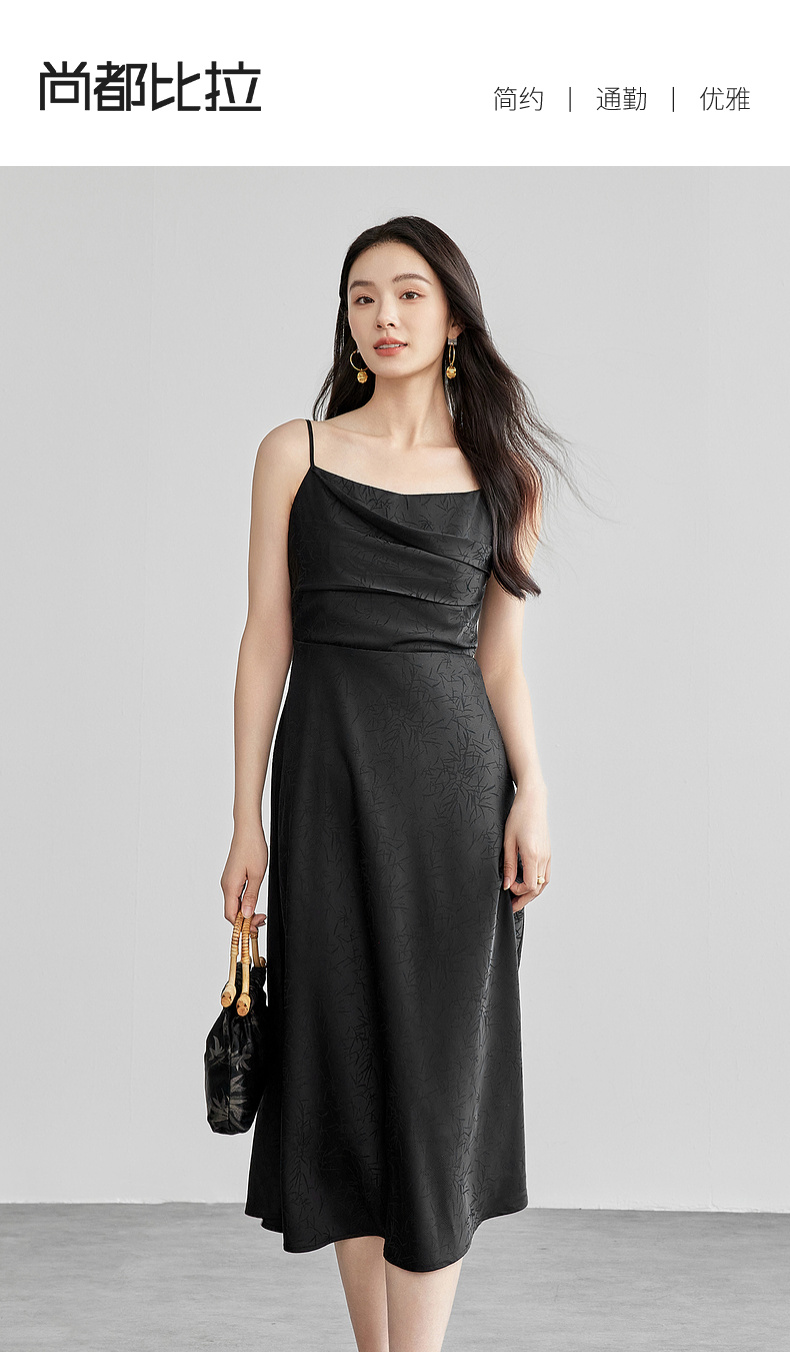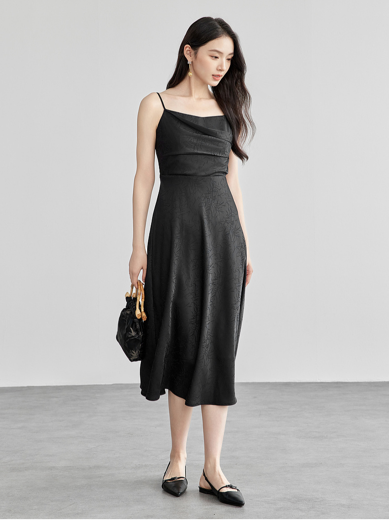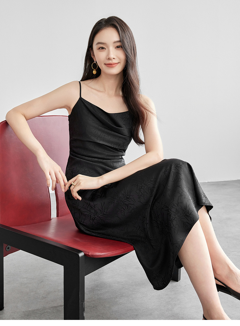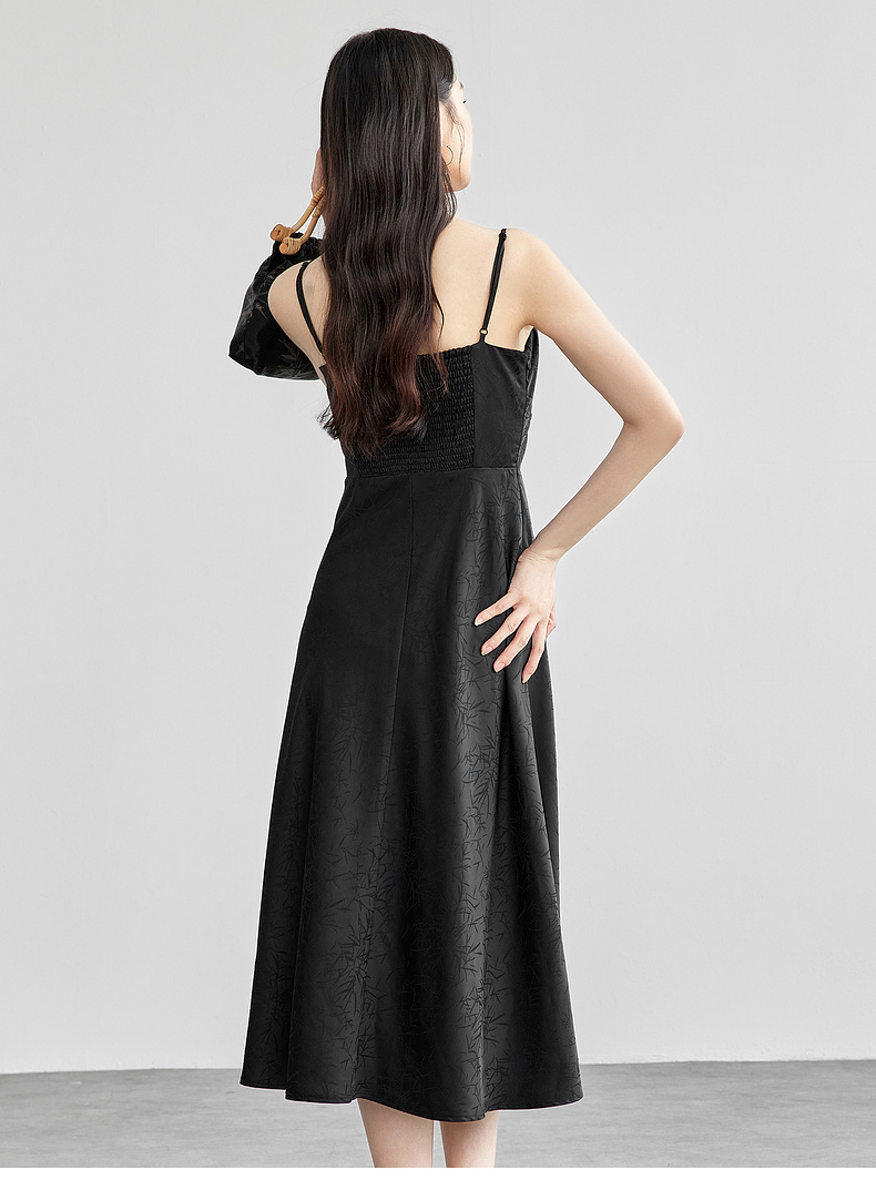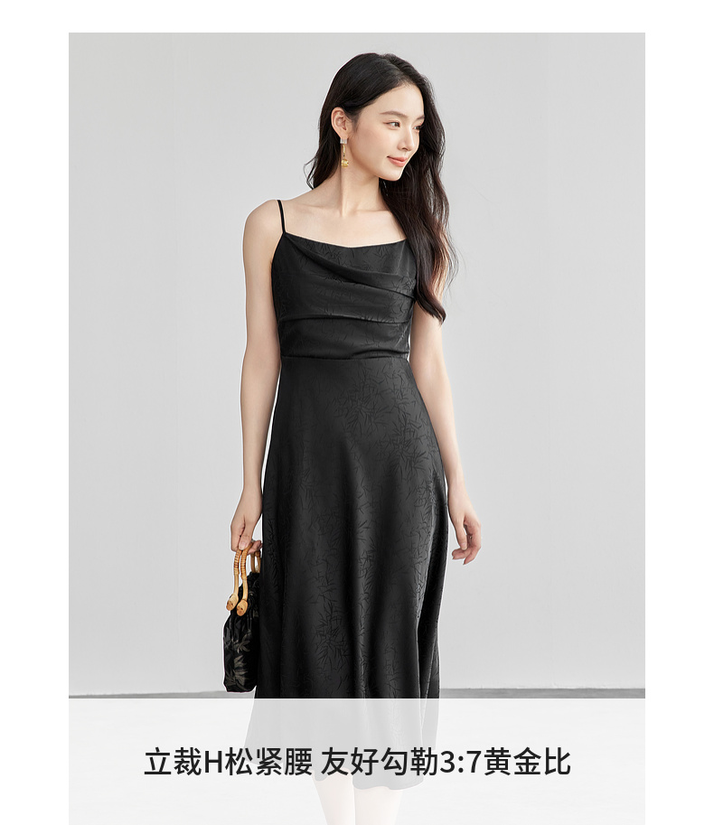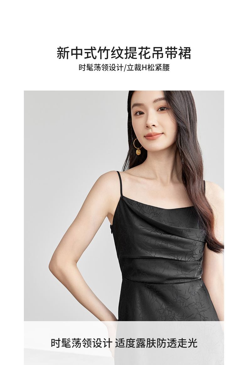 【内购】竹纹提花新中式美学竹纹提花肌理缎面吊带裙2025春新款小礼裙-57844