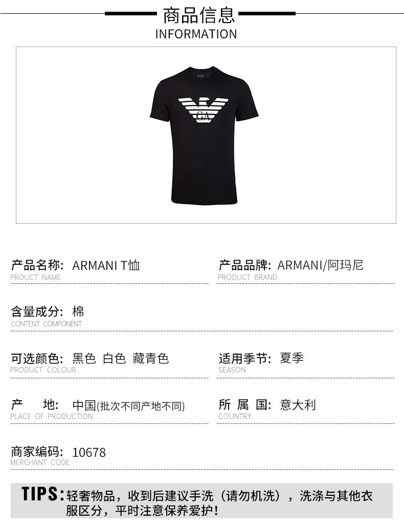 阿玛尼(ARMANI)男装 夏季男士短袖T恤 10678
