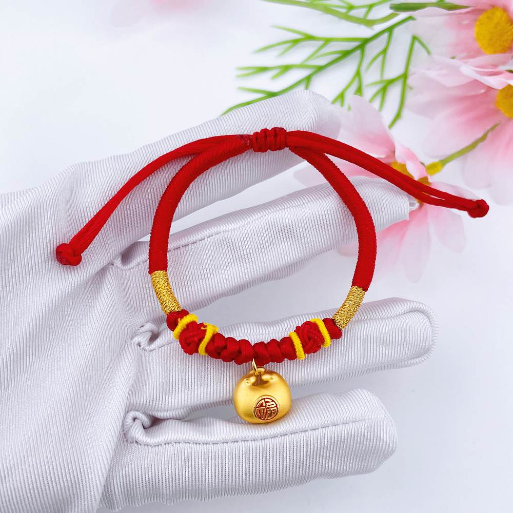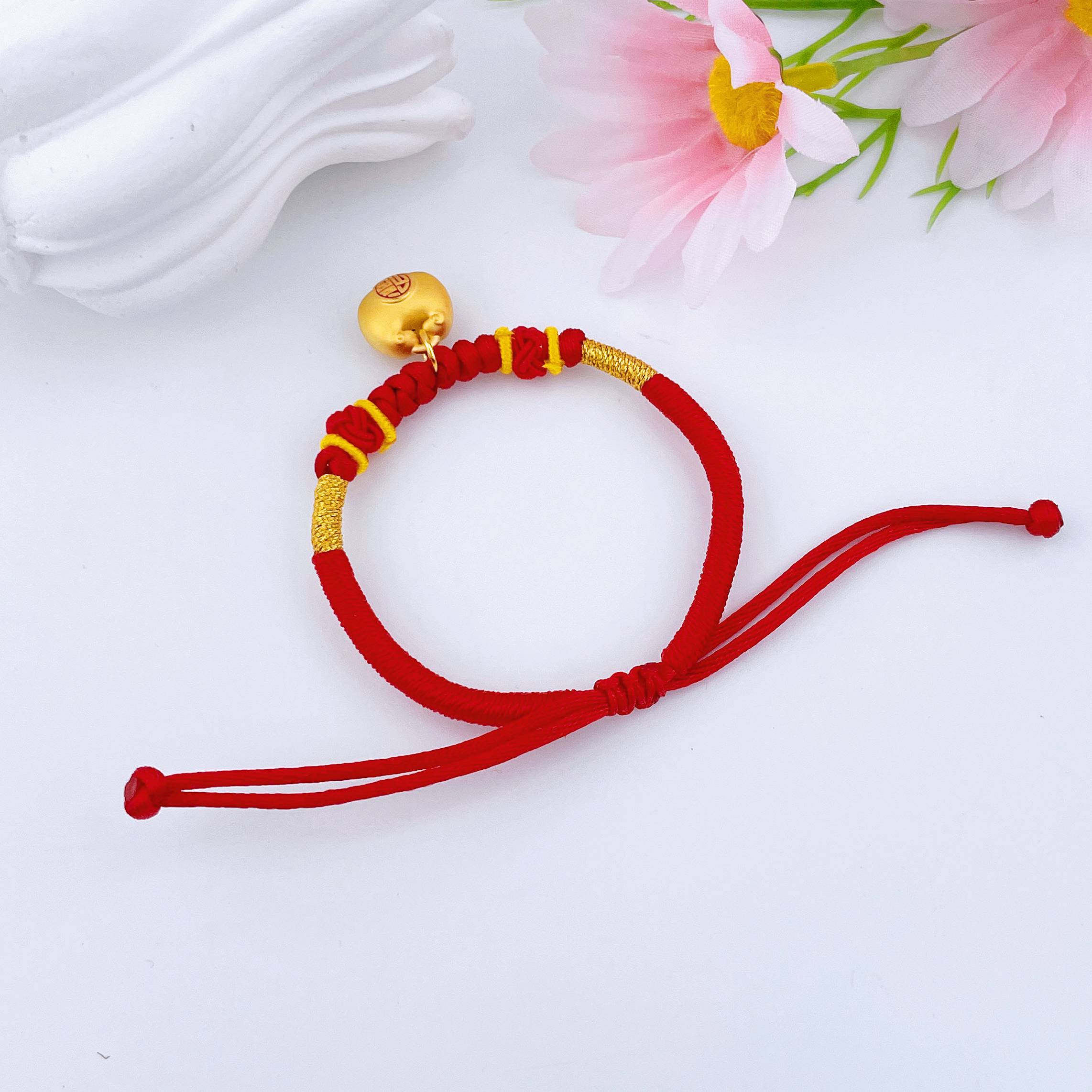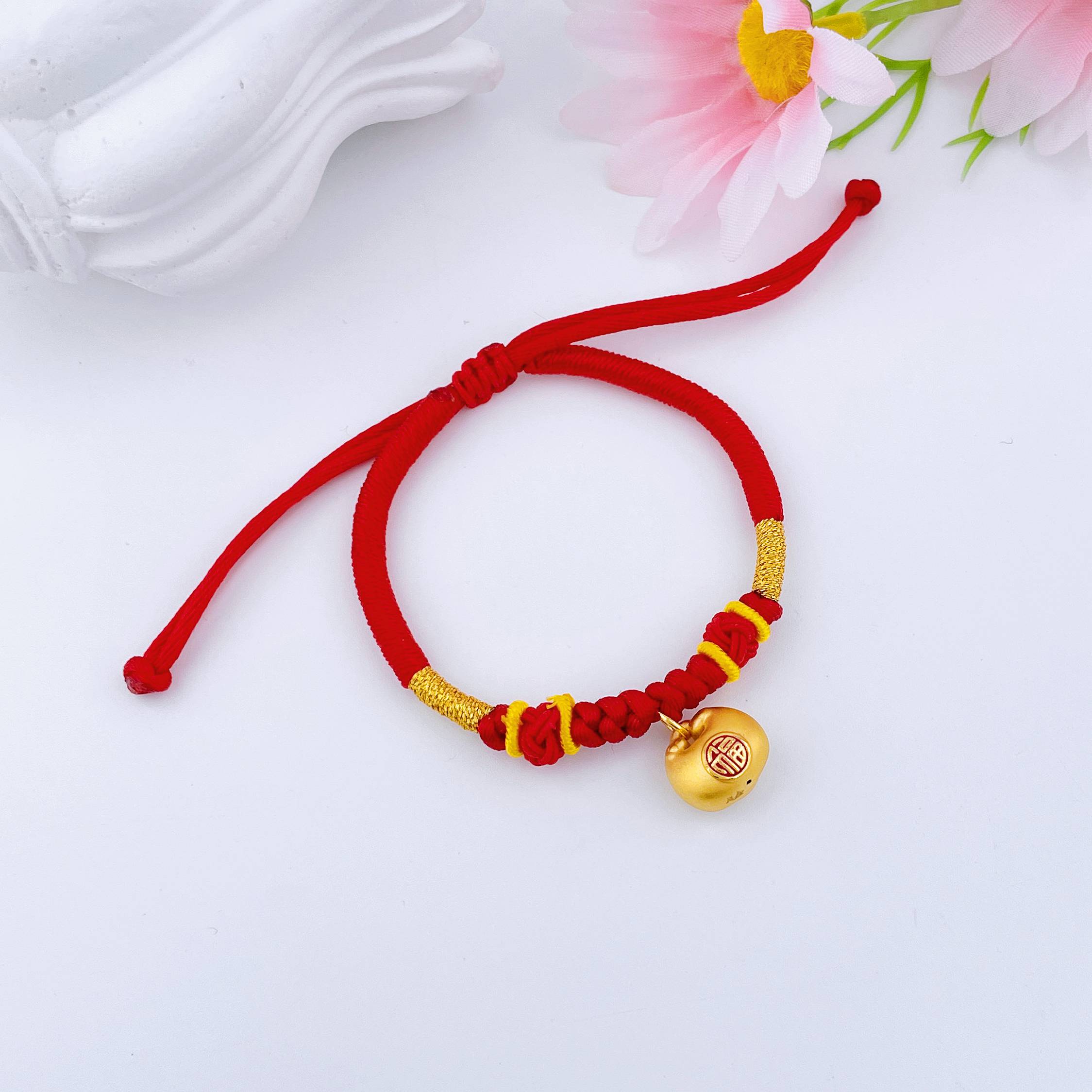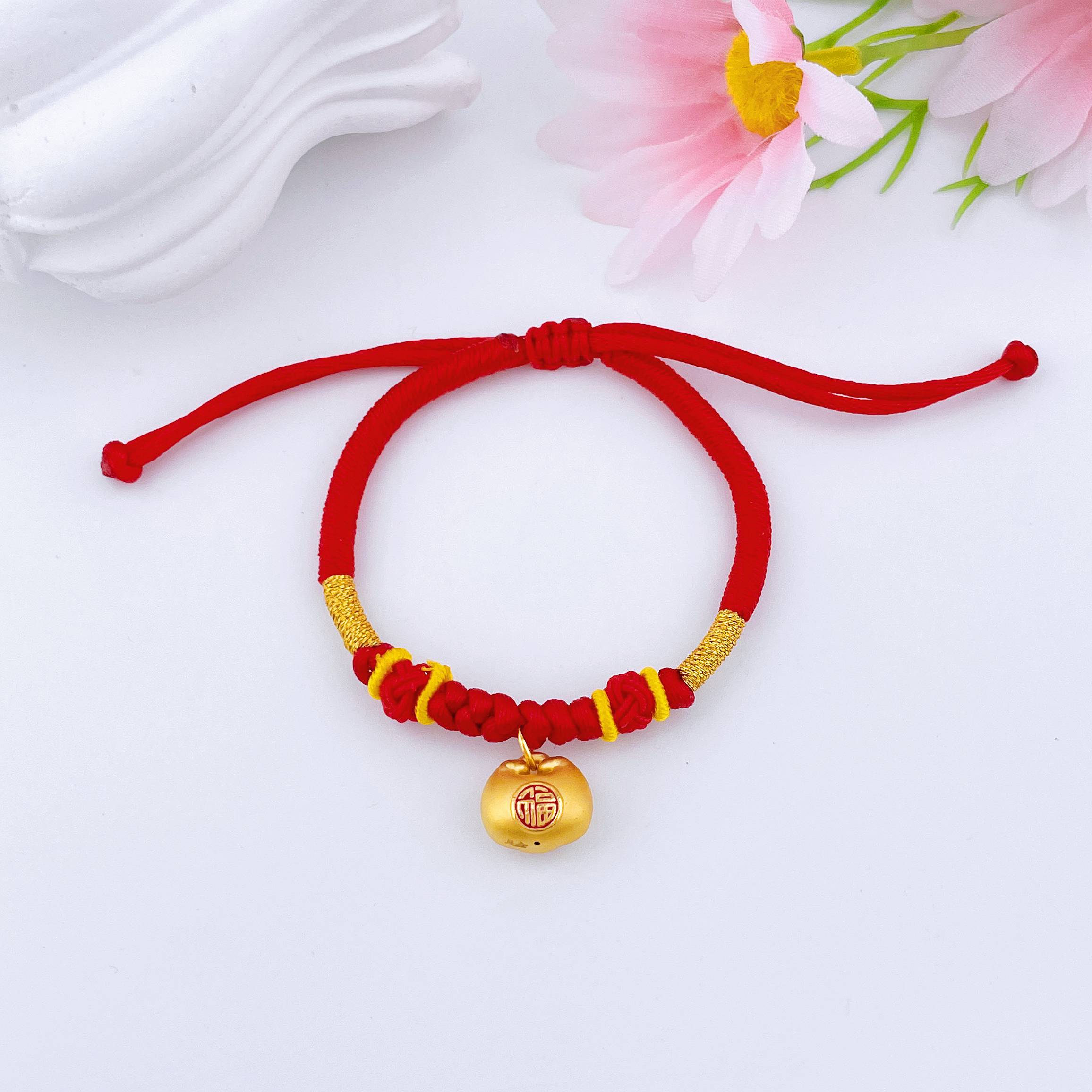 【定价黄金】足金 #小胖福 #儿童/宝宝 #小红书 3D硬金双面烤漆小胖福福字锁包小金坨红绳调节成品手串(宝宝、大人都适戴)(AA3DSC00431)(预售产品下单后不退款不退货不换货不补差价)