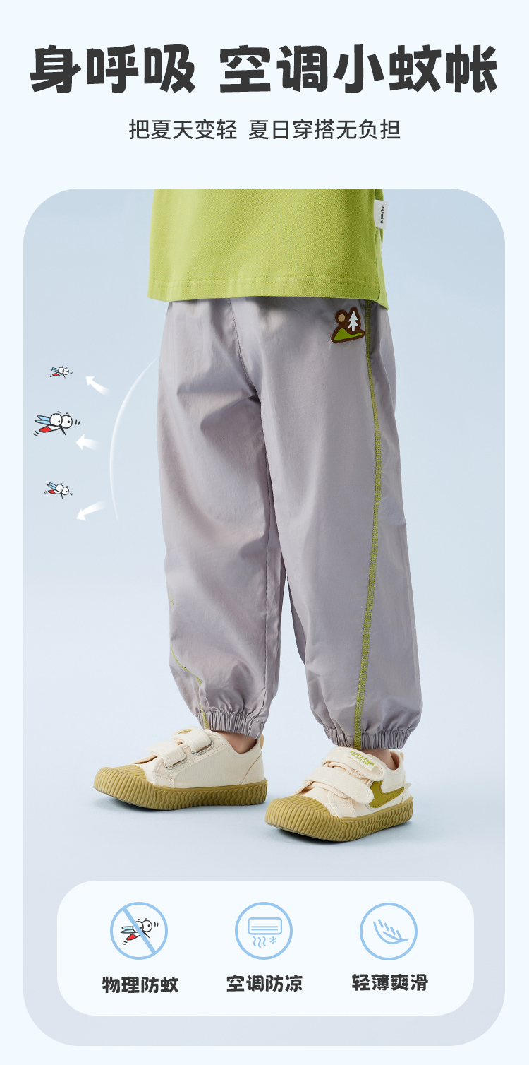 【80-140】【MQDmini】男童夏款轻薄休闲防蚊裤裤子 61.5%棉 33.4%锦纶 5.1%氨纶