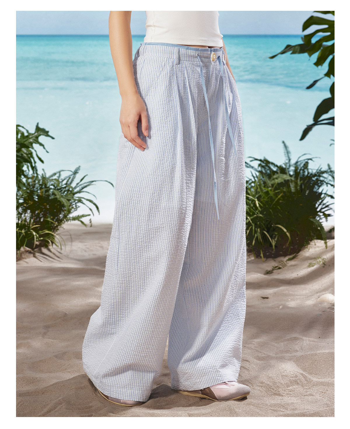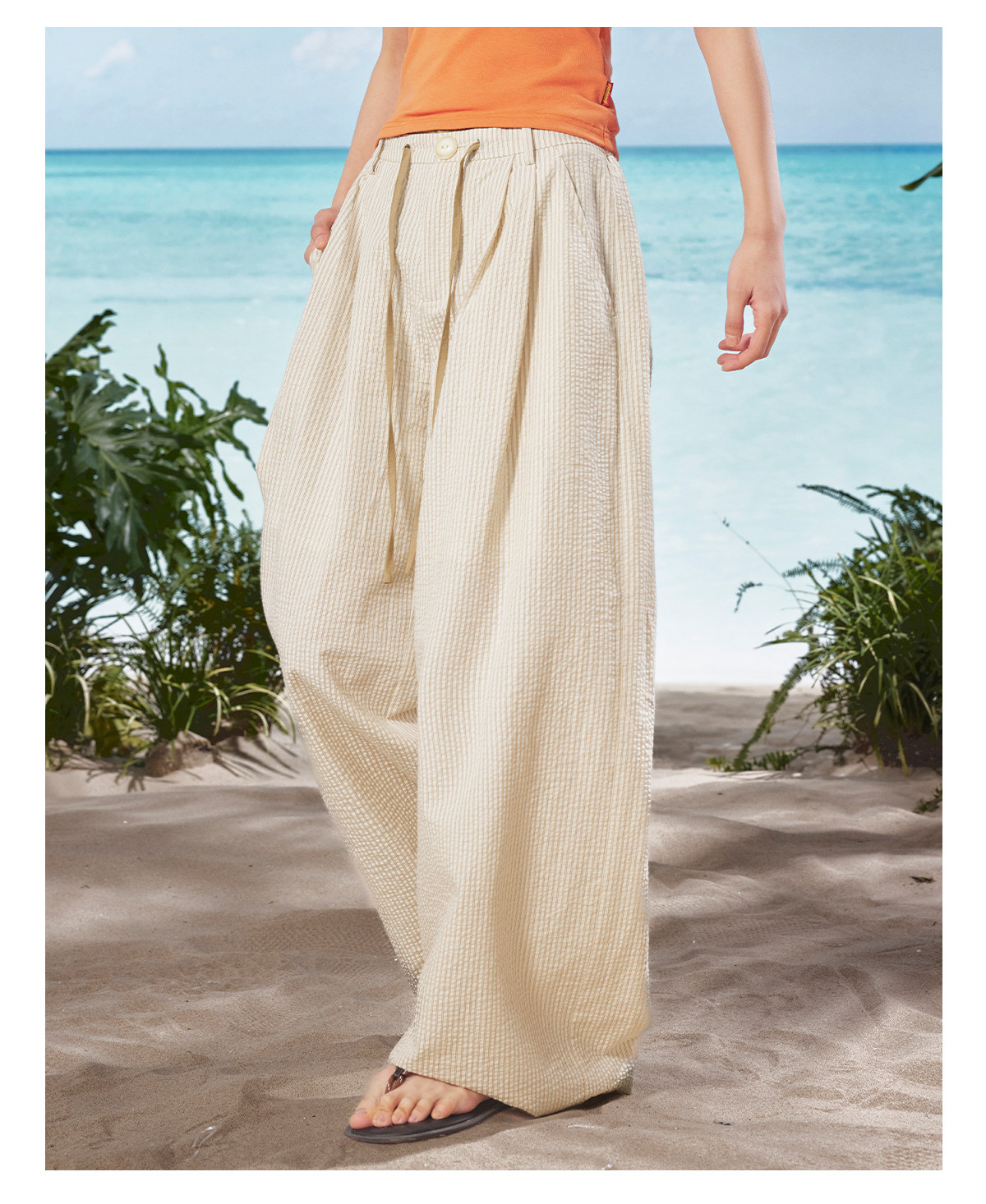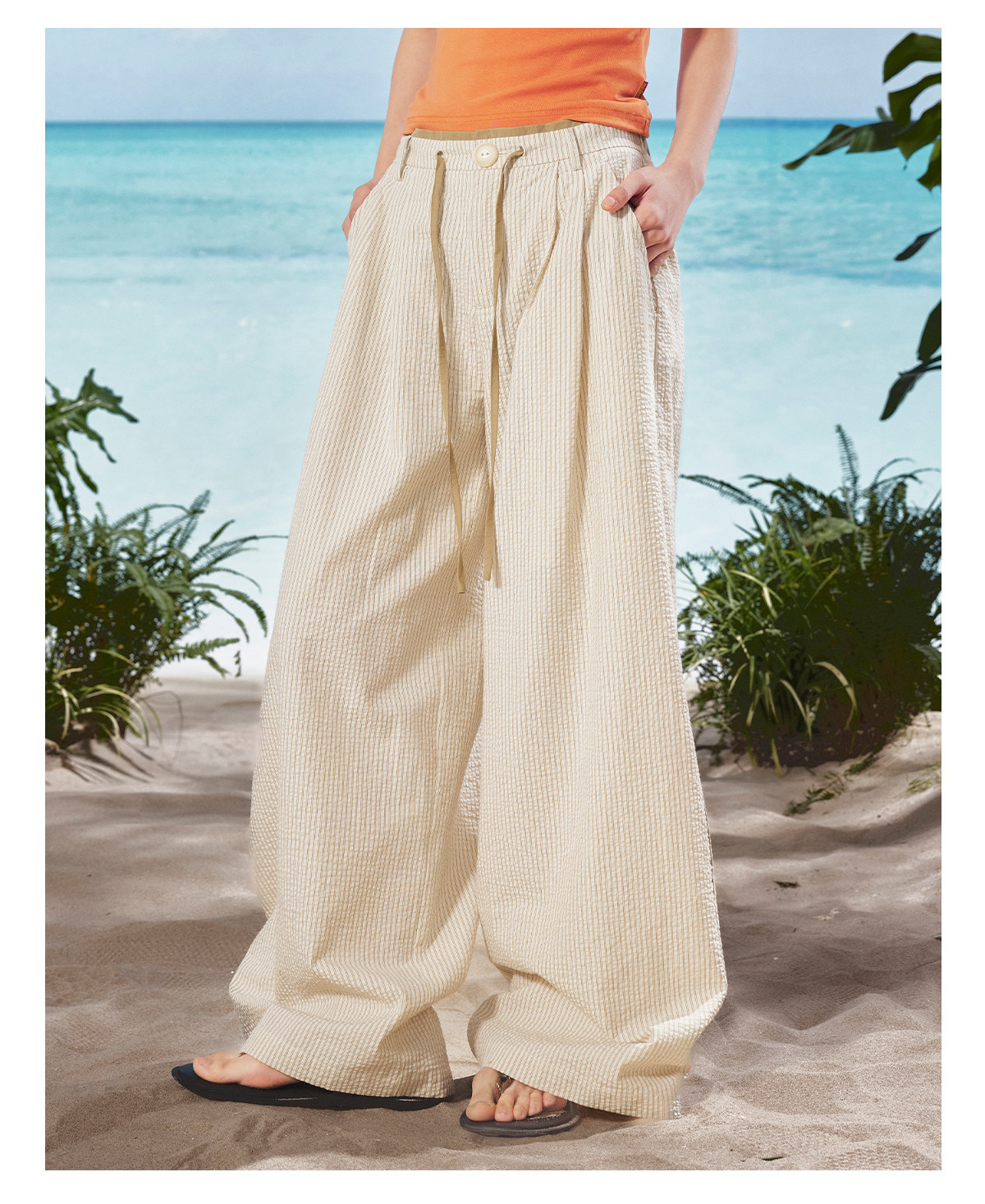 马得工地/MDGDKZ222165/双腰头条纹直筒休闲裤