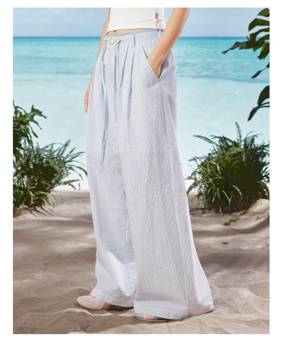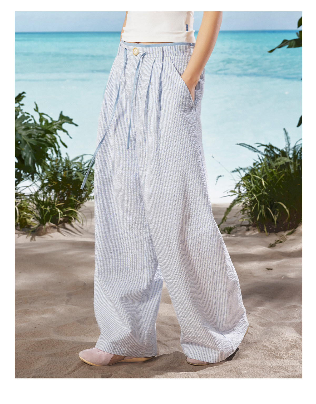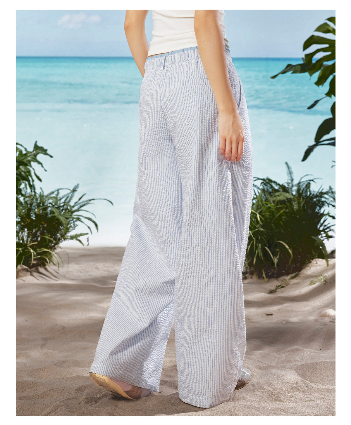 马得工地/MDGDKZ222165/双腰头条纹直筒休闲裤