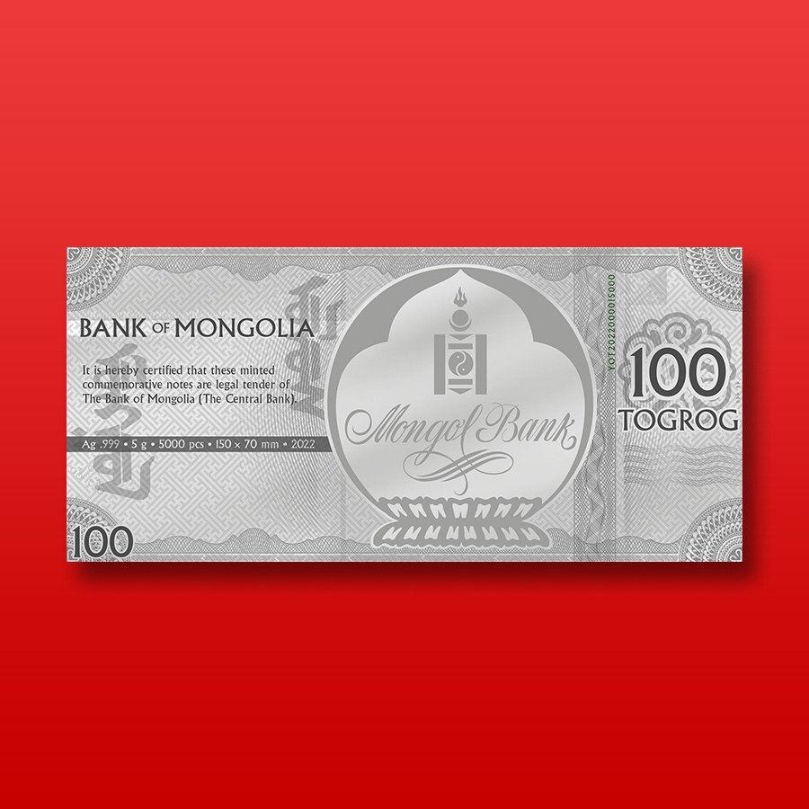 2022蒙古 虎年银钞