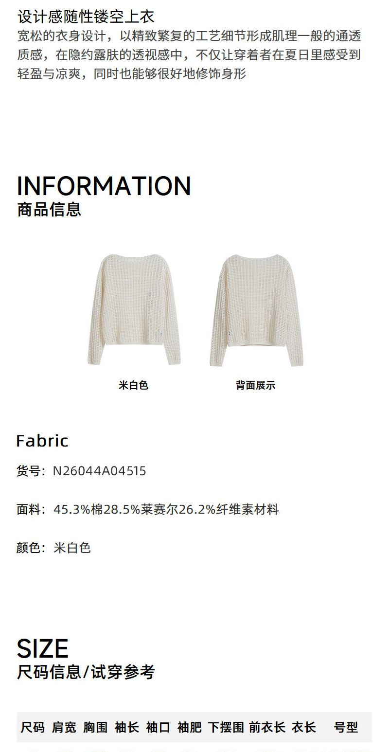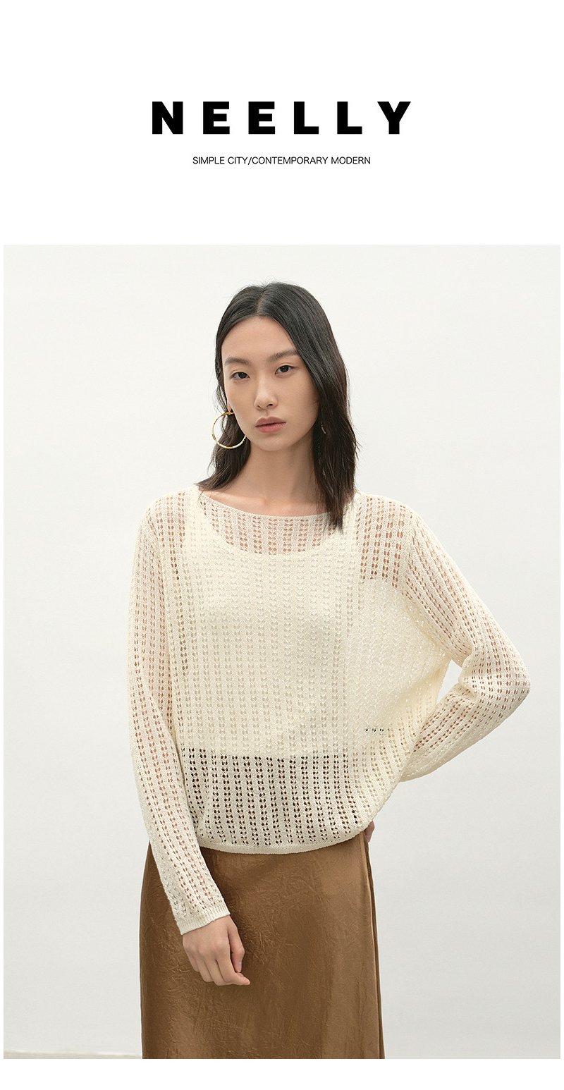 NEELLY纳俪商场同款夏季新款时尚随性镂空针织衫女气质轻盈感上衣N26044A04515