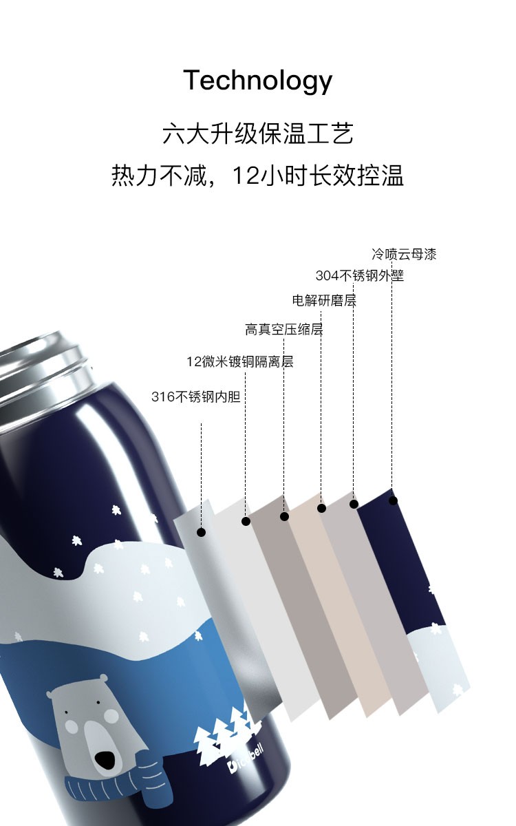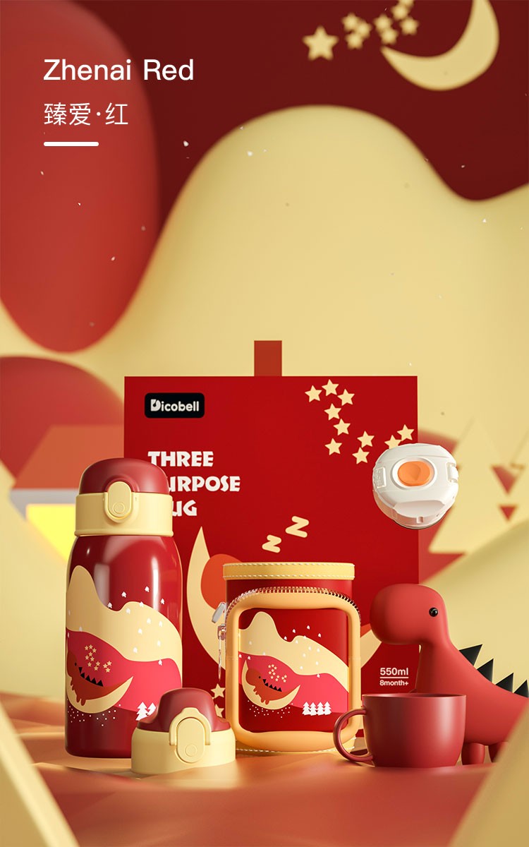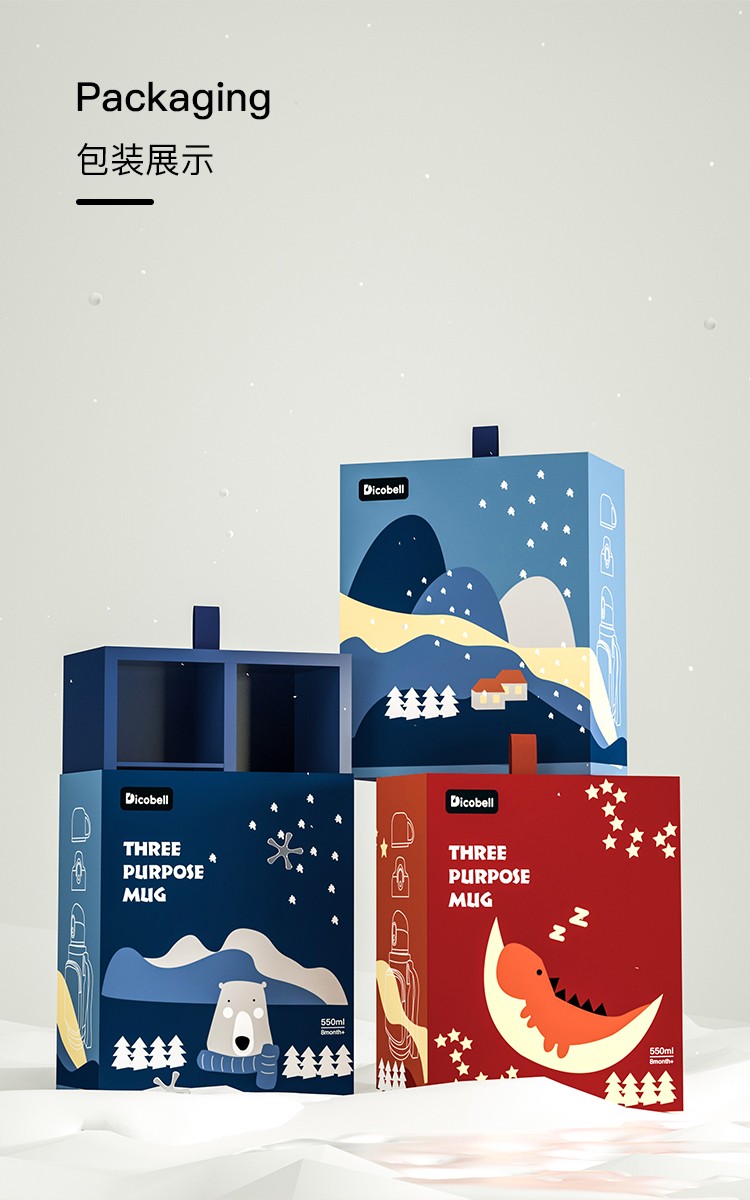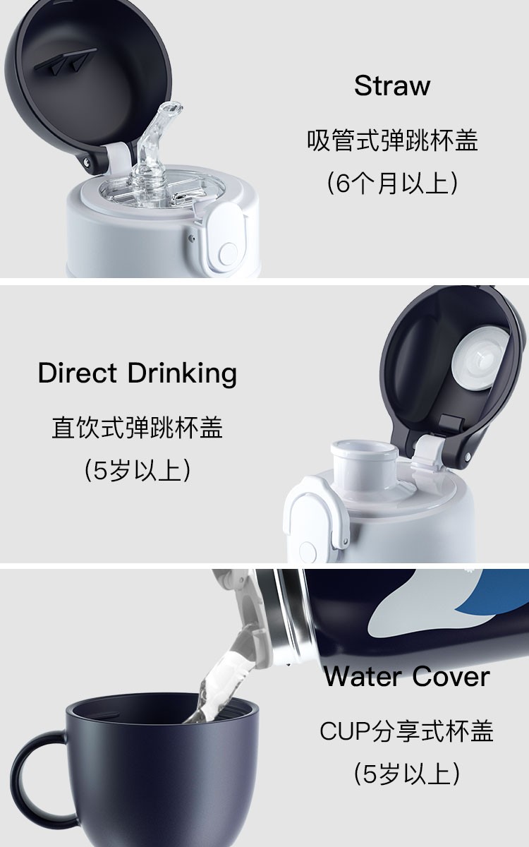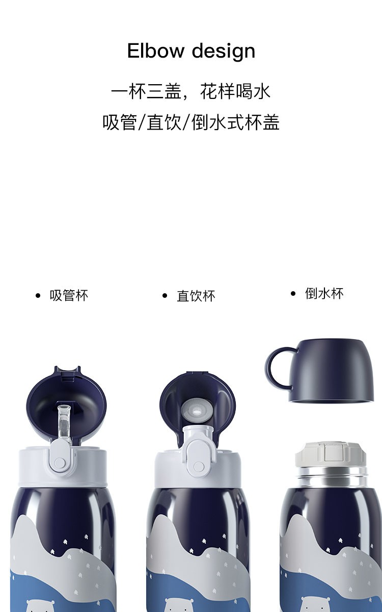 迪可贝儿(Dicobell)大容量儿童保温杯便携男幼儿园可爱带吸管水杯女 550ML迪臻保温杯套装臻爱蓝(一杯三盖 316不锈钢)