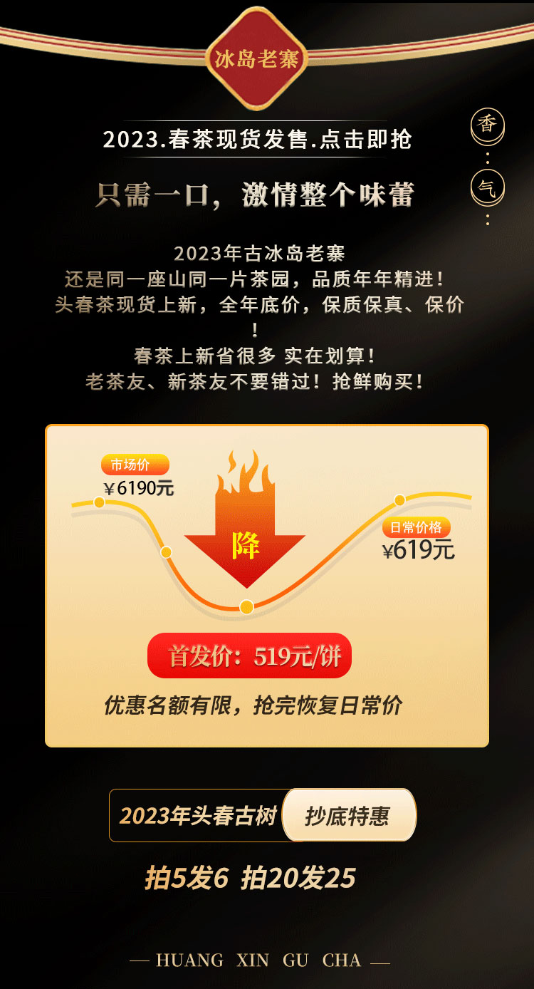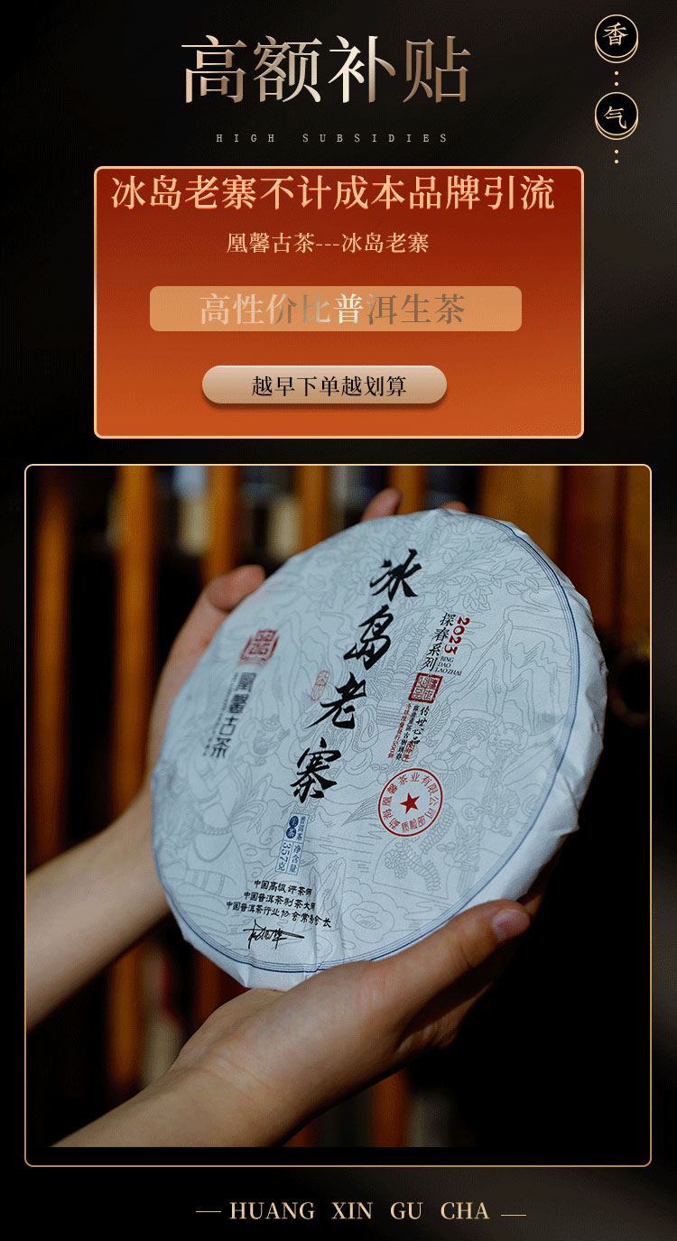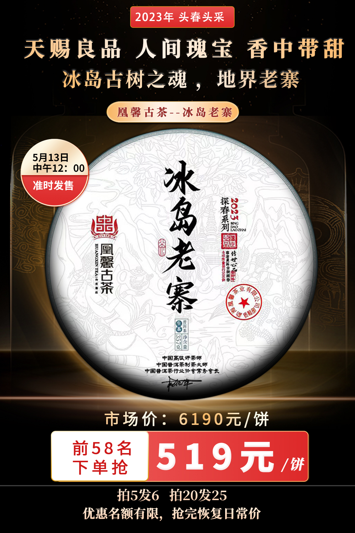 凰馨古茶2023年冰岛老寨357克生茶探春系列 古树普洱茶