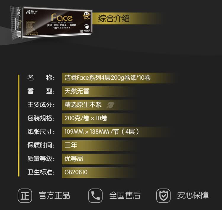 洁柔卫生卷纸200g*10卷(2000g)/提