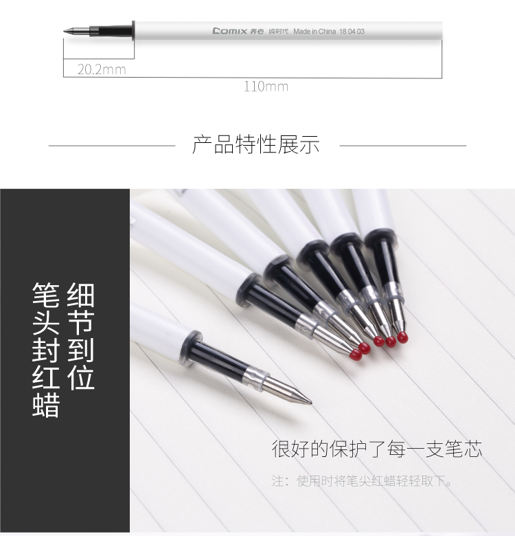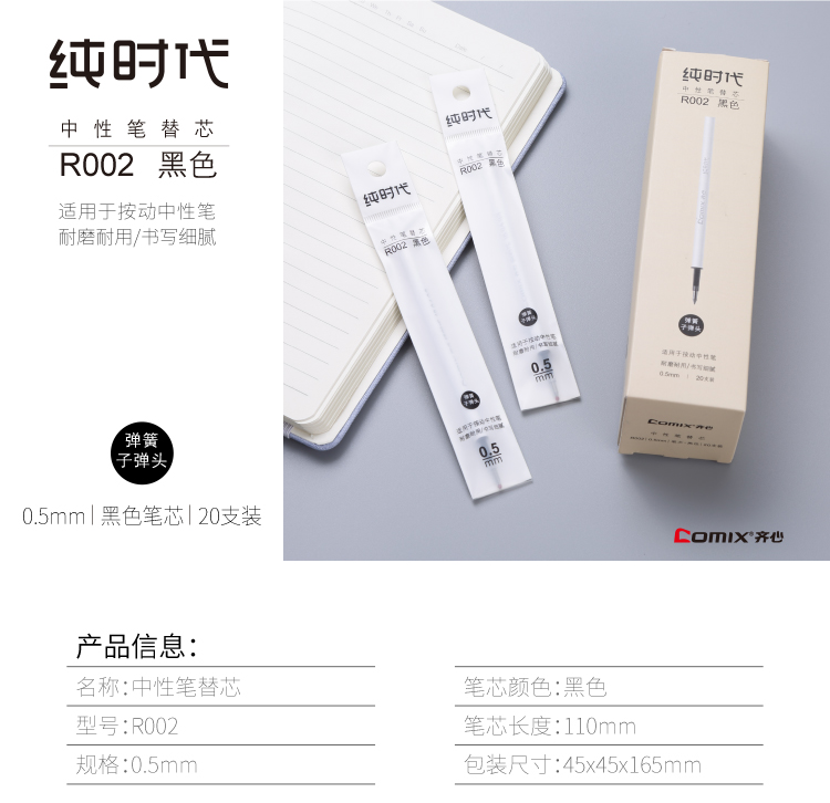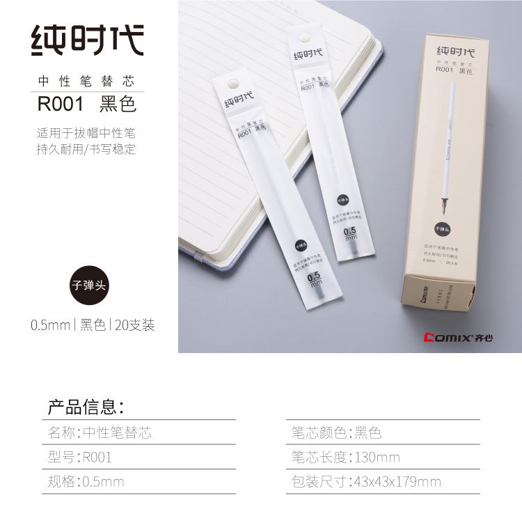 齐心纯时代中性笔替芯水性笔芯签字笔芯笔芯