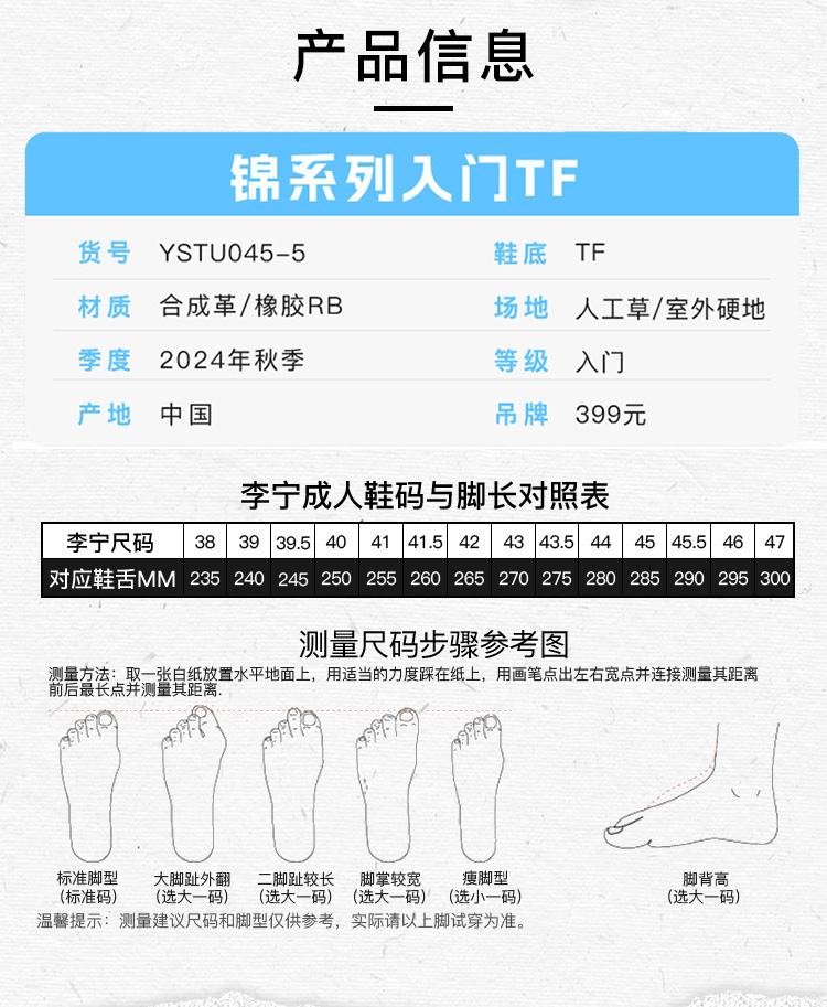 小李子Lining李宁锦系列入门TF碎钉比赛足球鞋成人男YSTU045-5