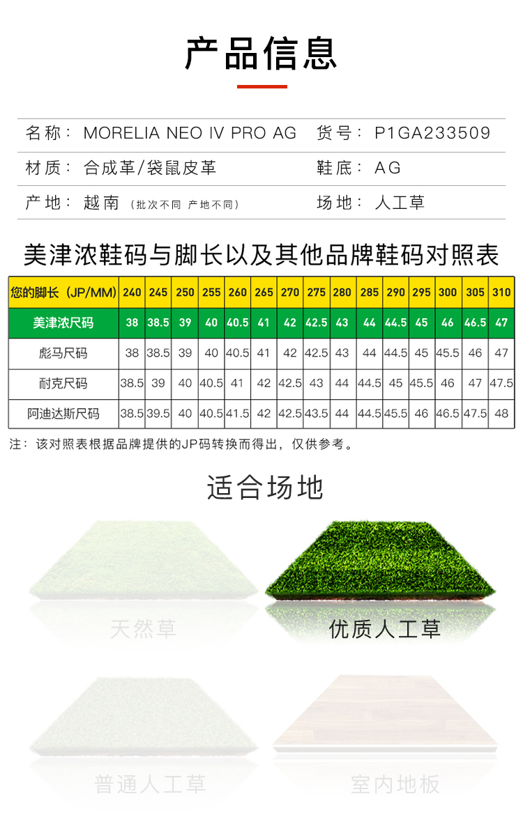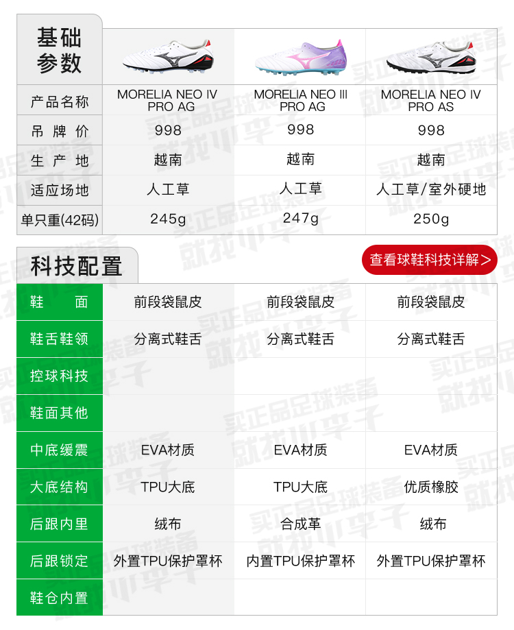 Mizuno/美津浓莫雷拉MORELIA NEO 4PRO次顶AG短钉袋鼠皮成人足球鞋男P1GA233509