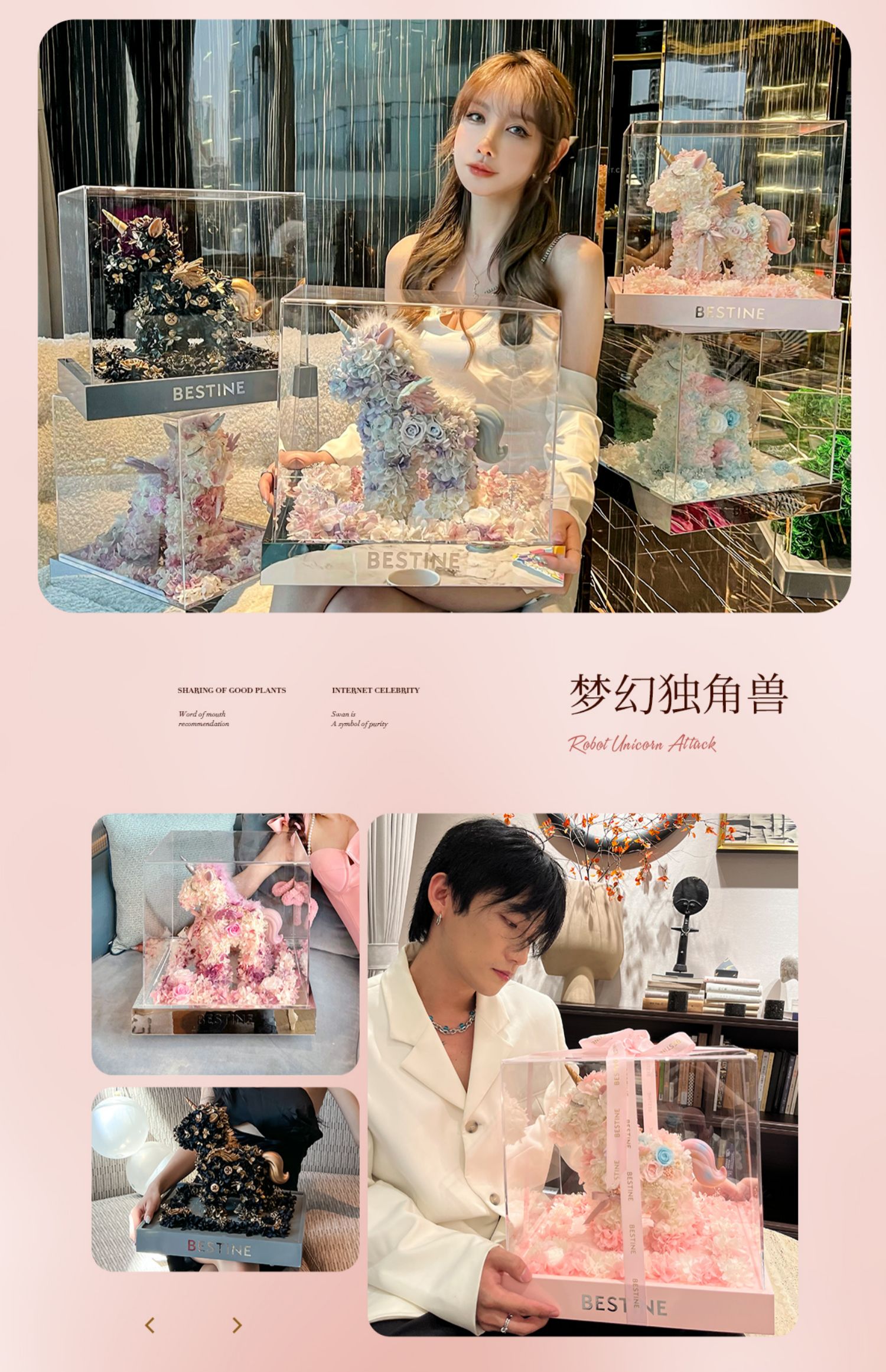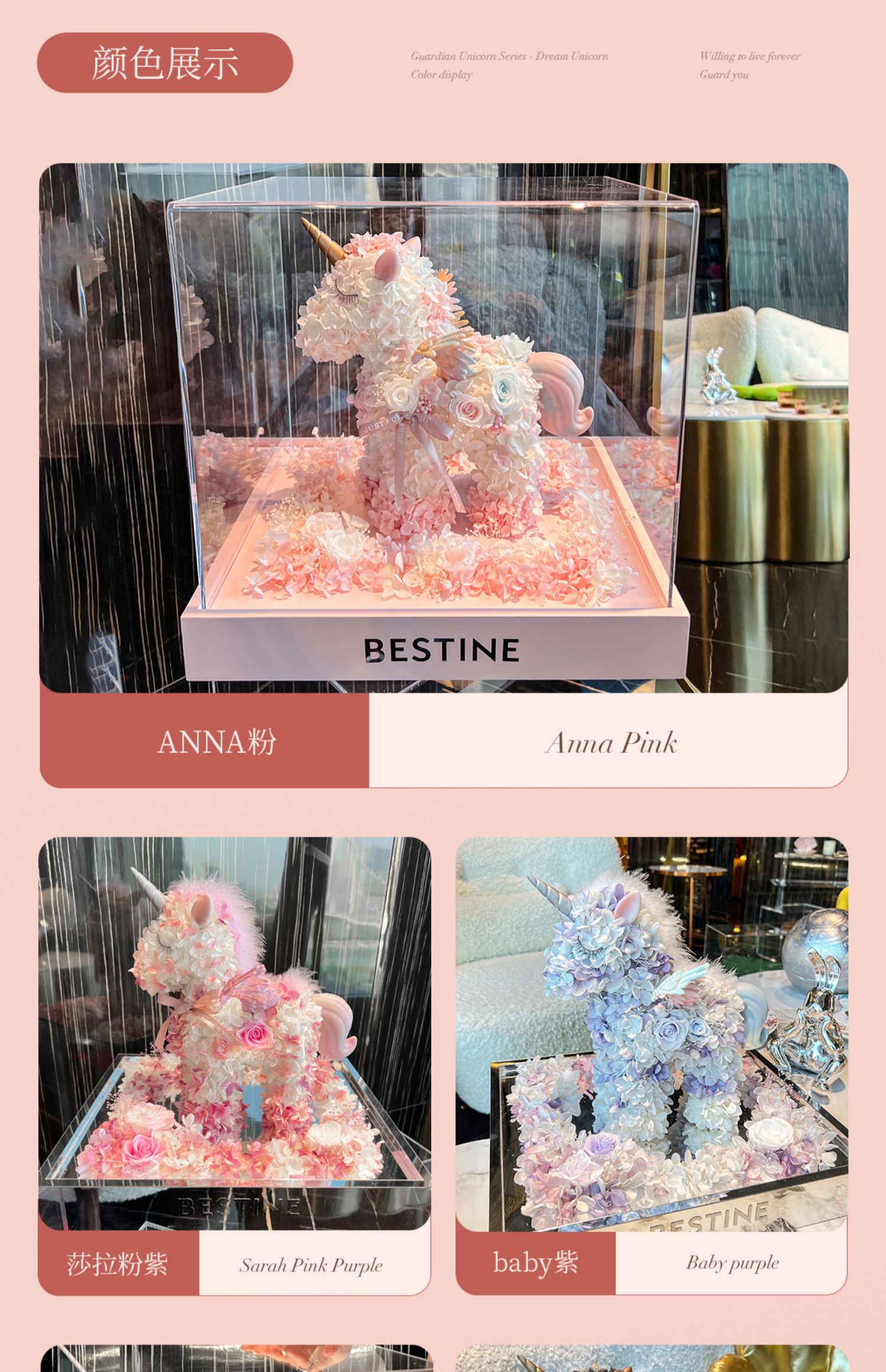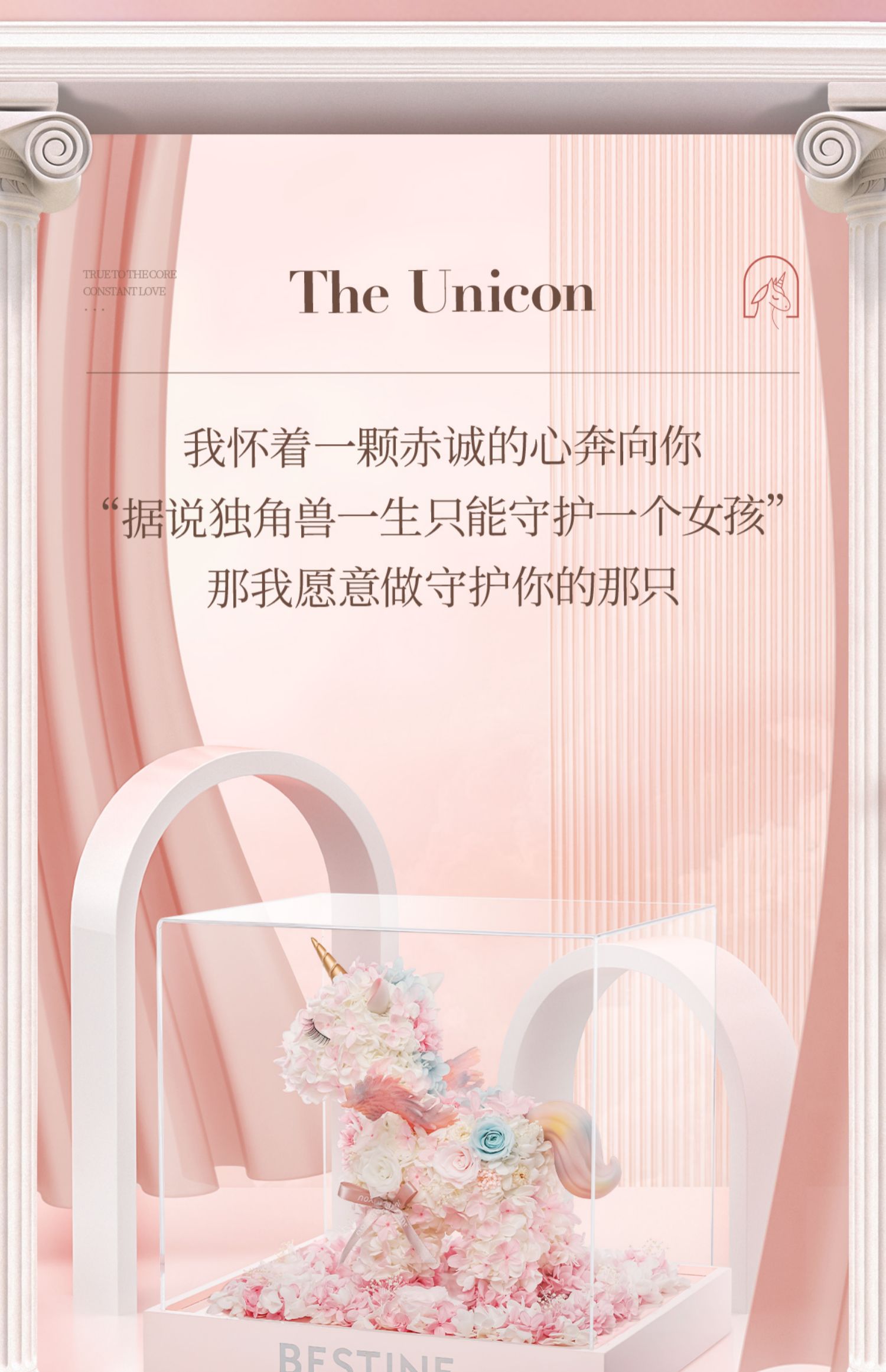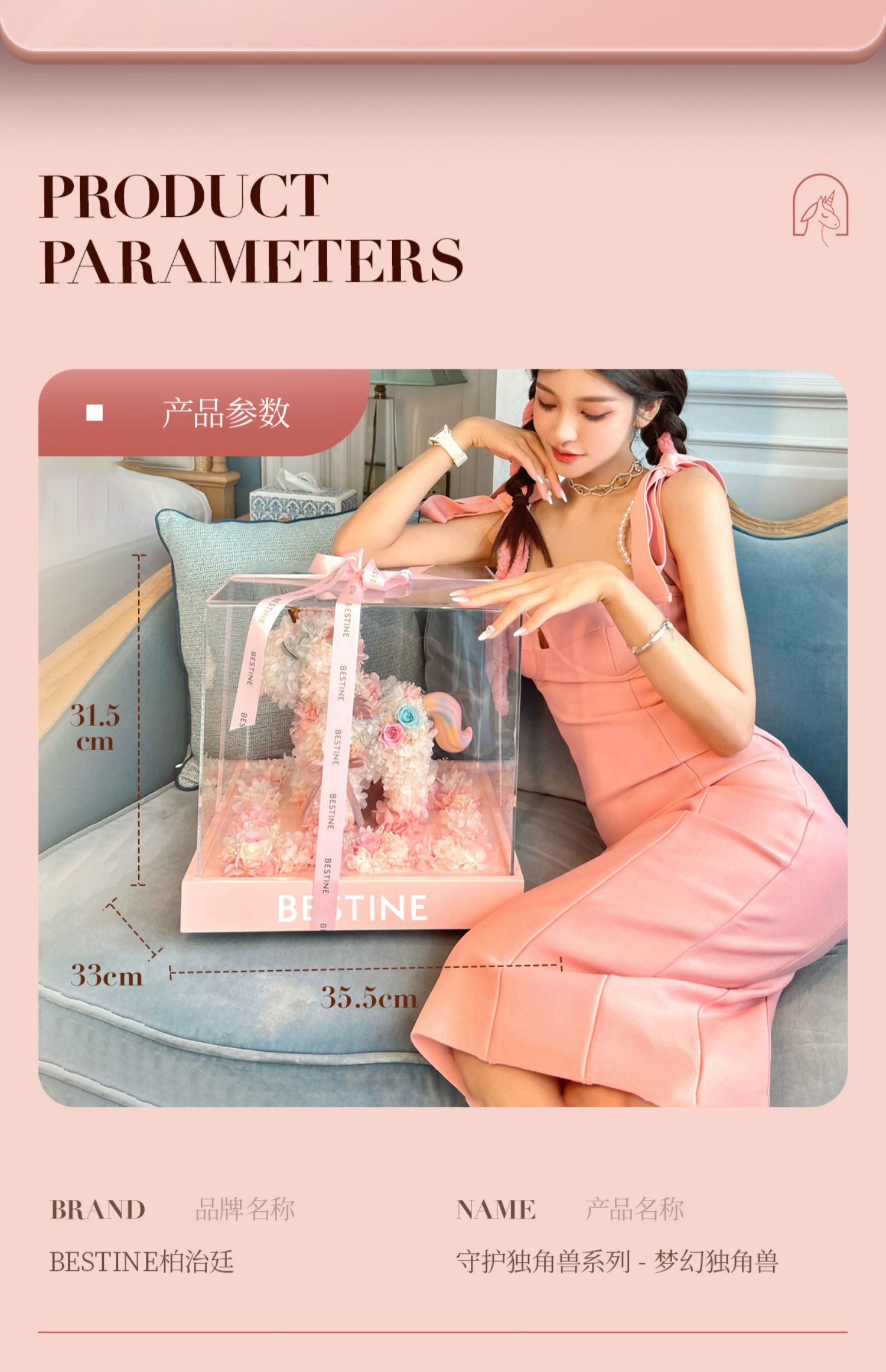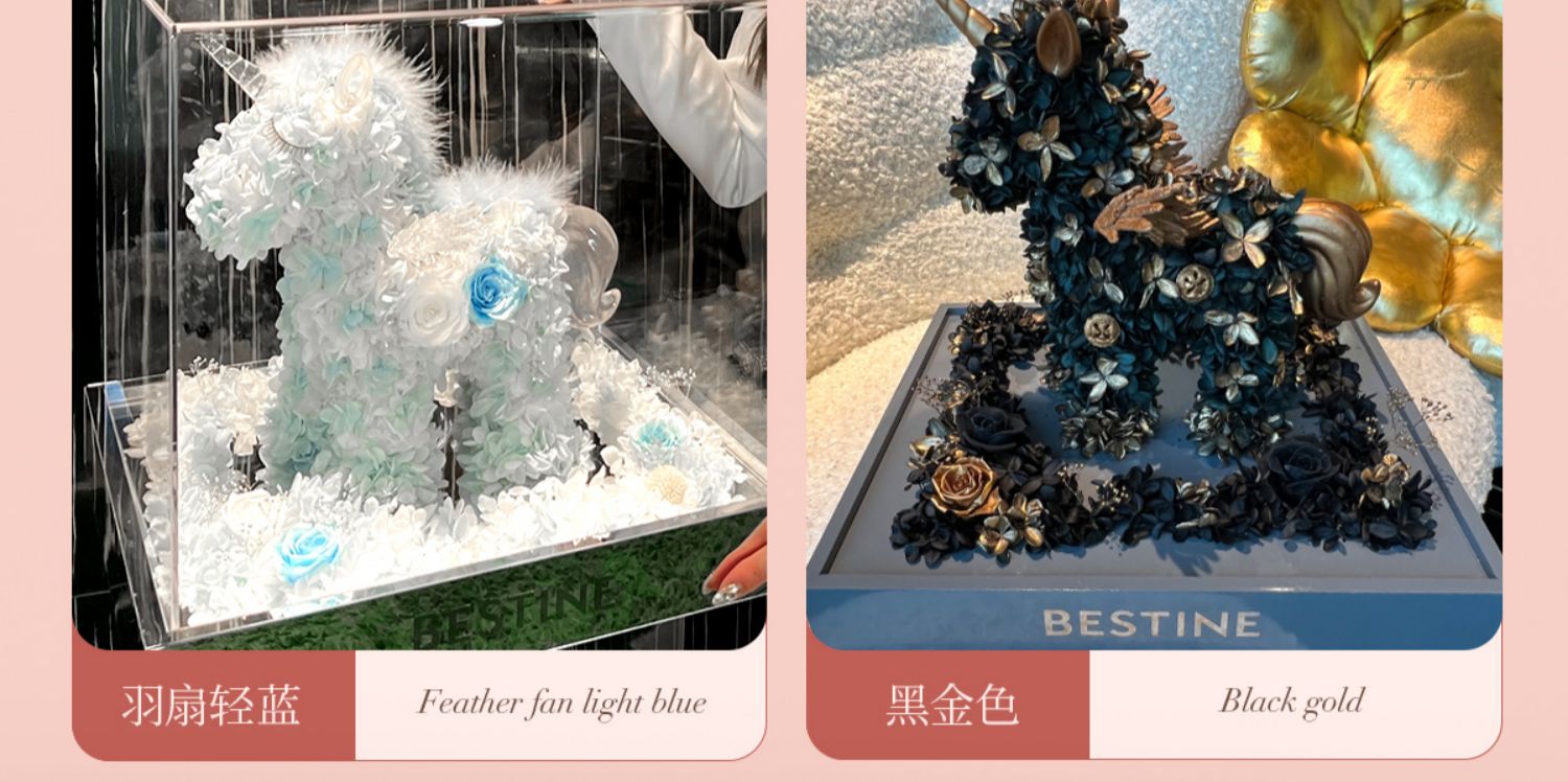 VBEINGS花语 大号独角兽 Anna粉色 永生花礼盒玫瑰花摆件送女生告白生日礼物