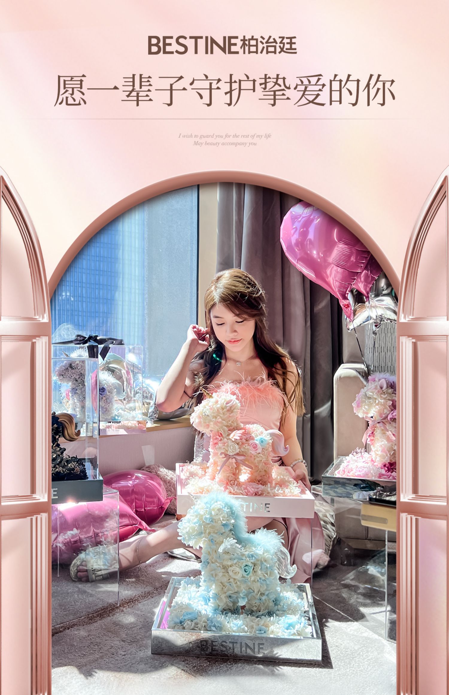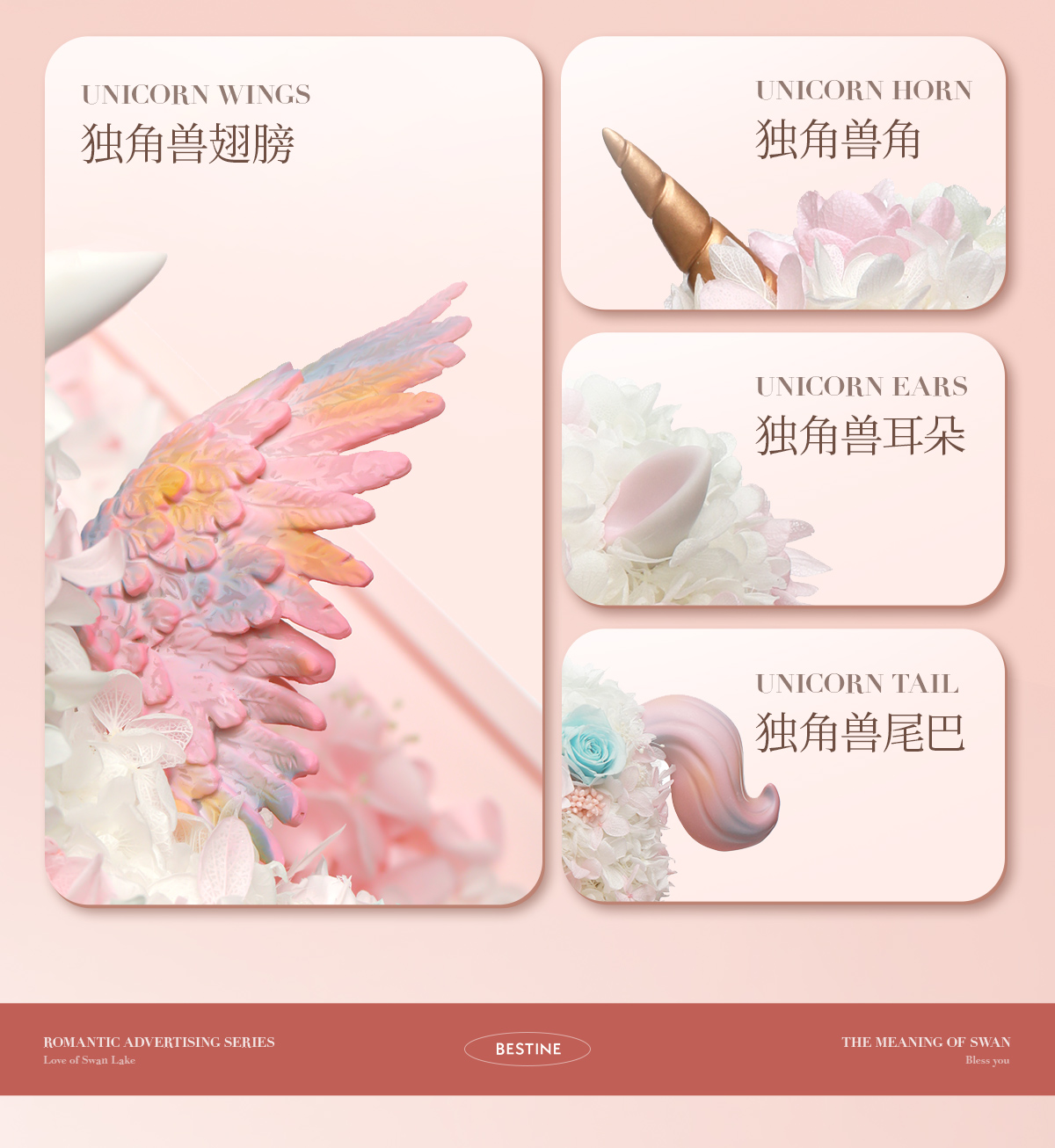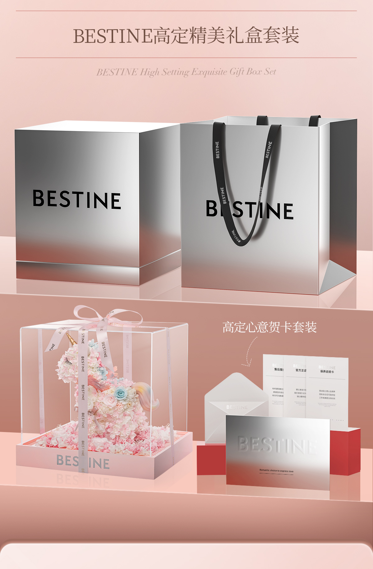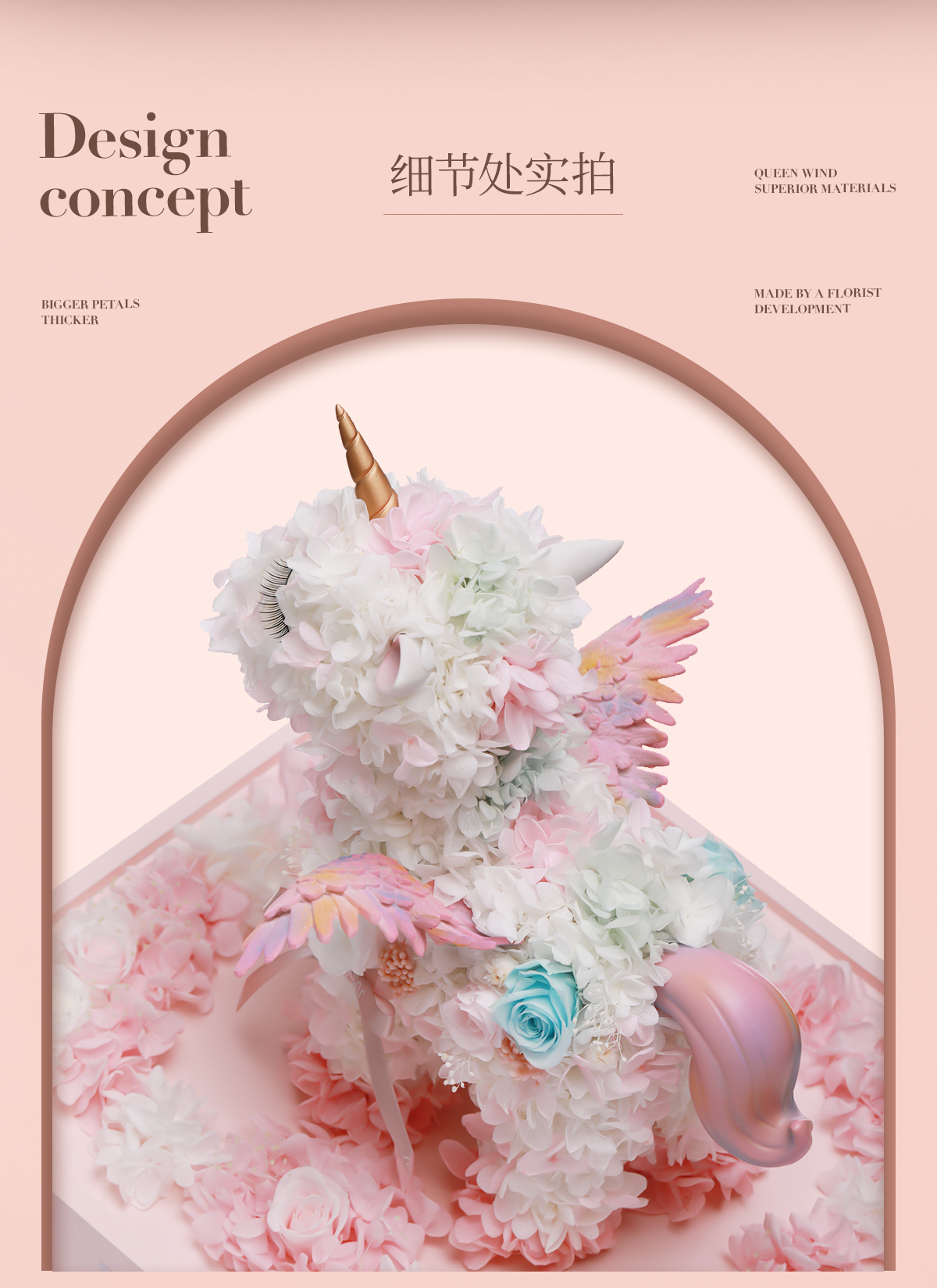 VBEINGS花语 大号独角兽 Anna粉色 永生花礼盒玫瑰花摆件送女生告白生日礼物