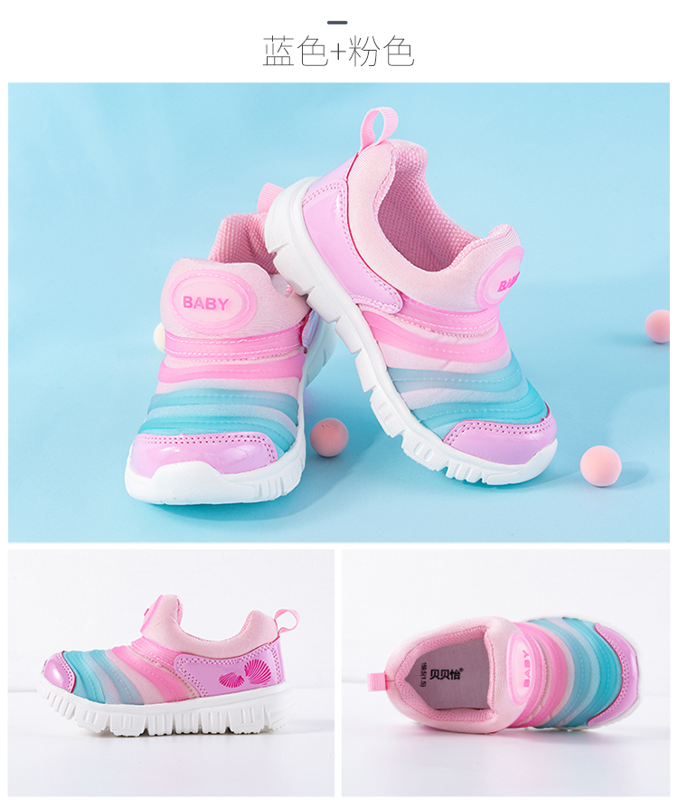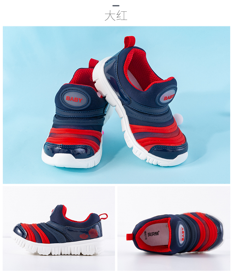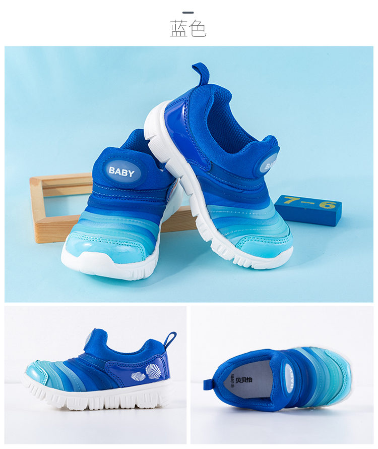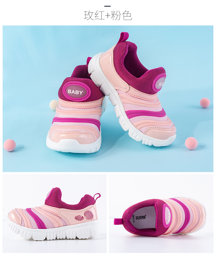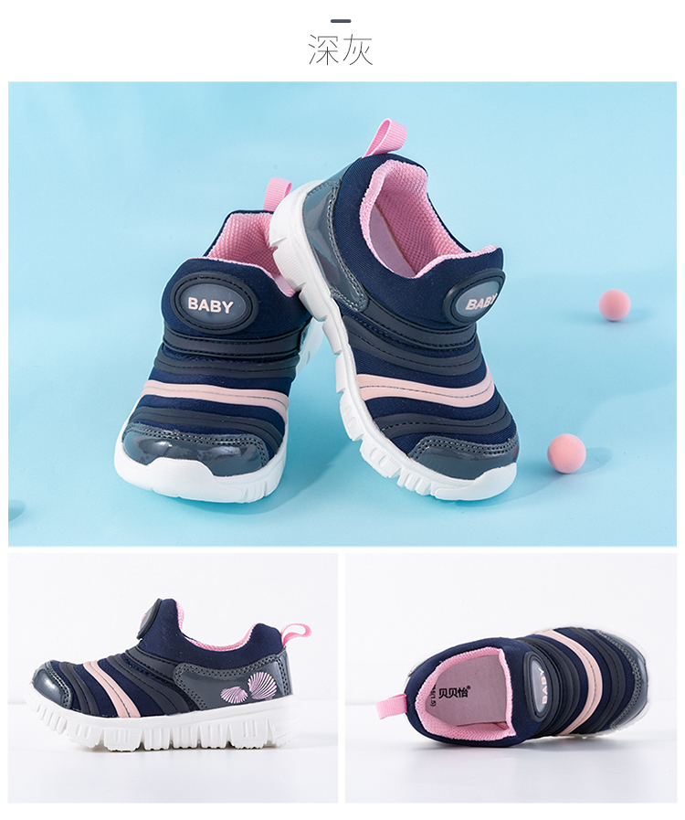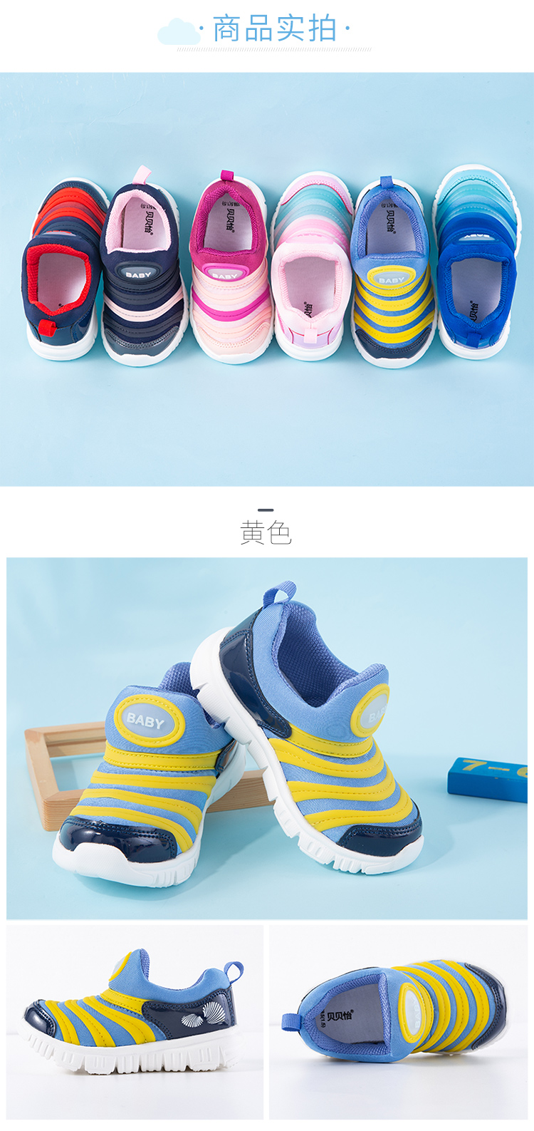 贝贝怡男女童春秋宝宝毛毛虫一脚蹬童鞋百搭防滑耐磨运动鞋