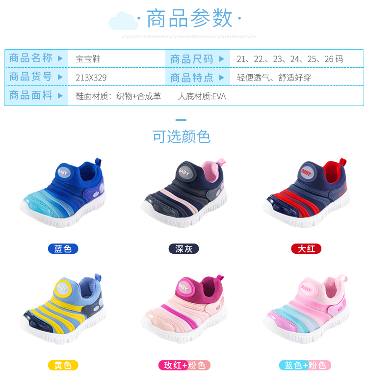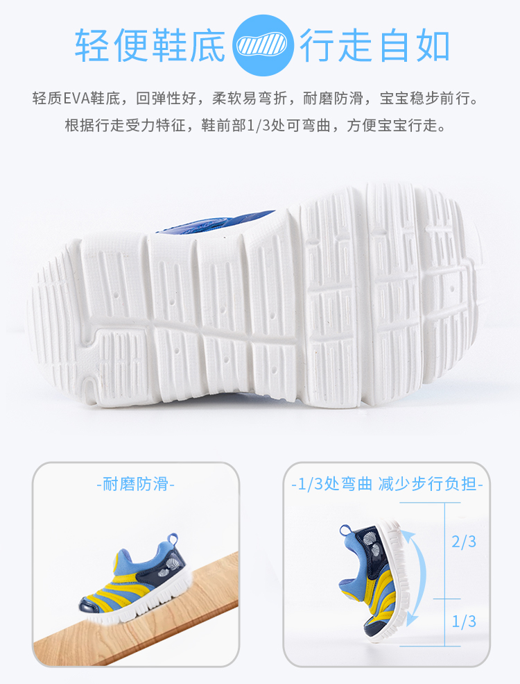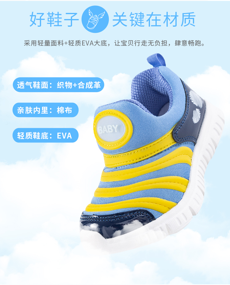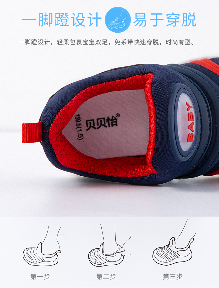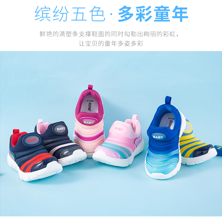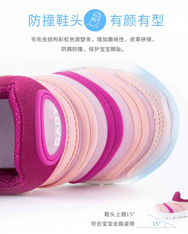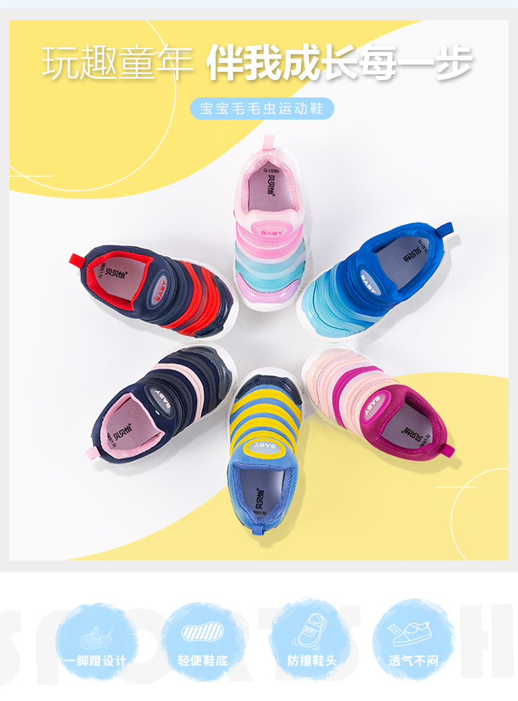 贝贝怡男女童春秋宝宝毛毛虫一脚蹬童鞋百搭防滑耐磨运动鞋