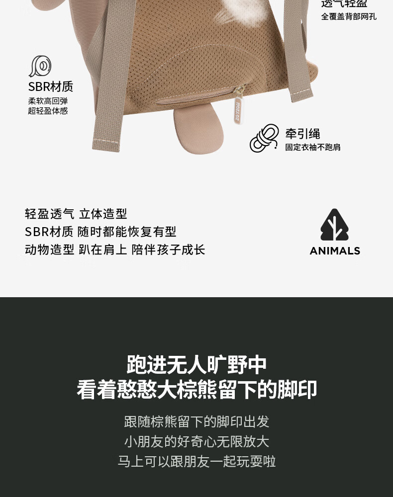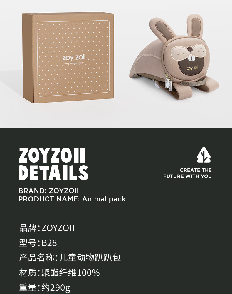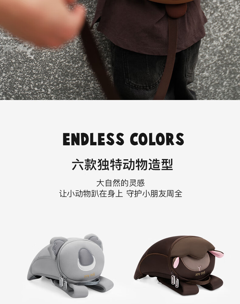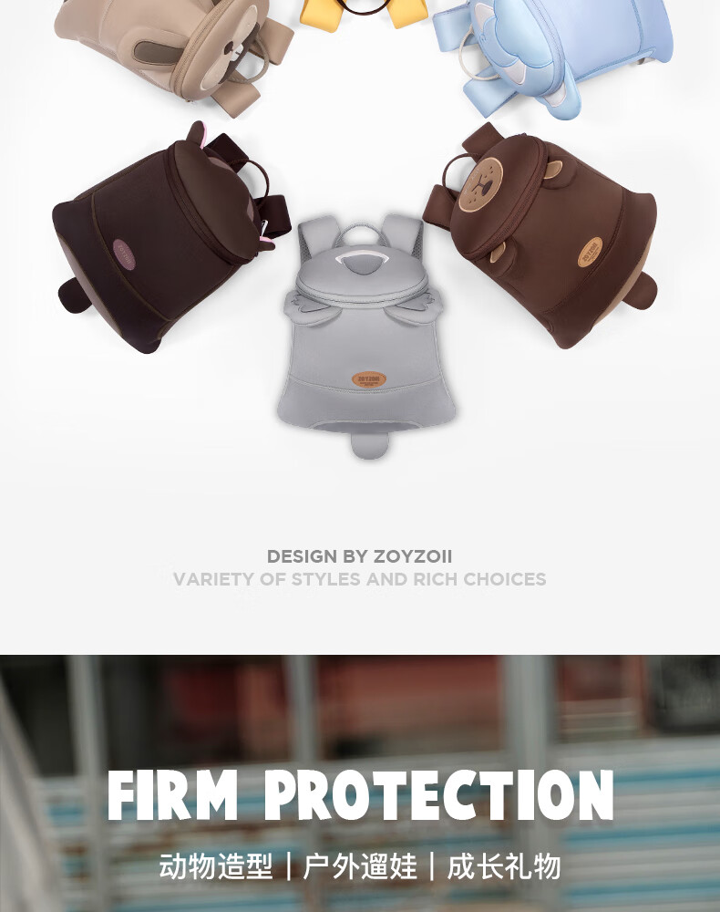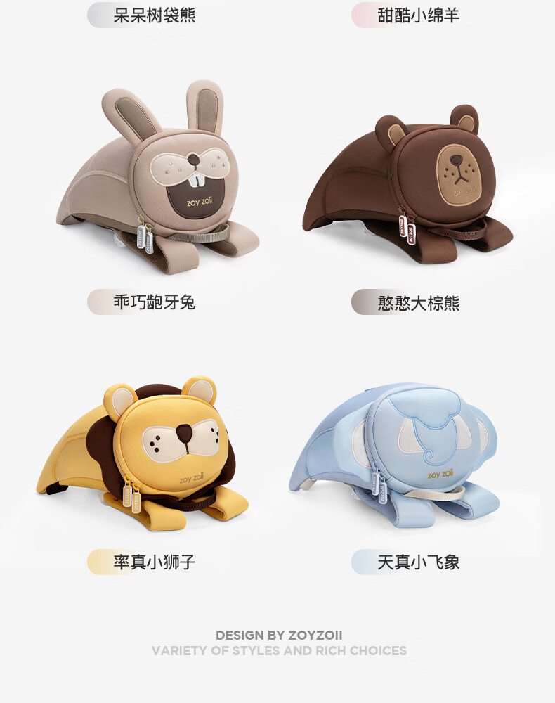 zoyzoii B28 儿童动物趴趴包 儿童书包女孩幼儿园男童宝宝小朋友牵引绳出行户外双肩包