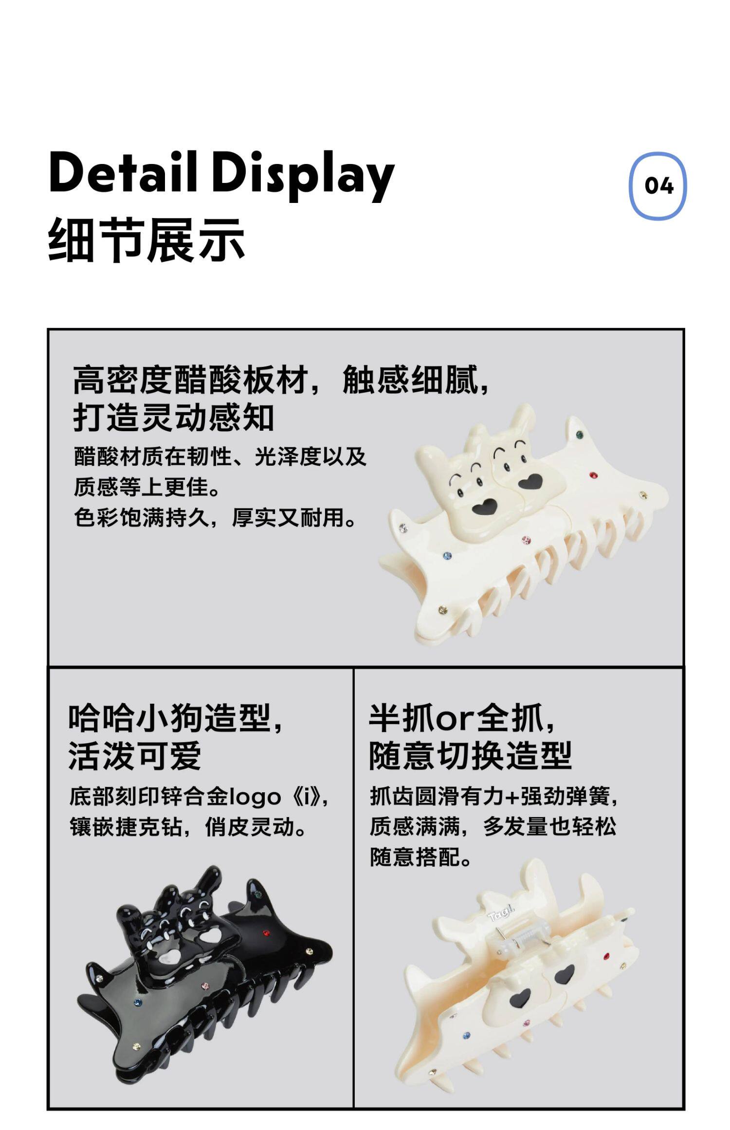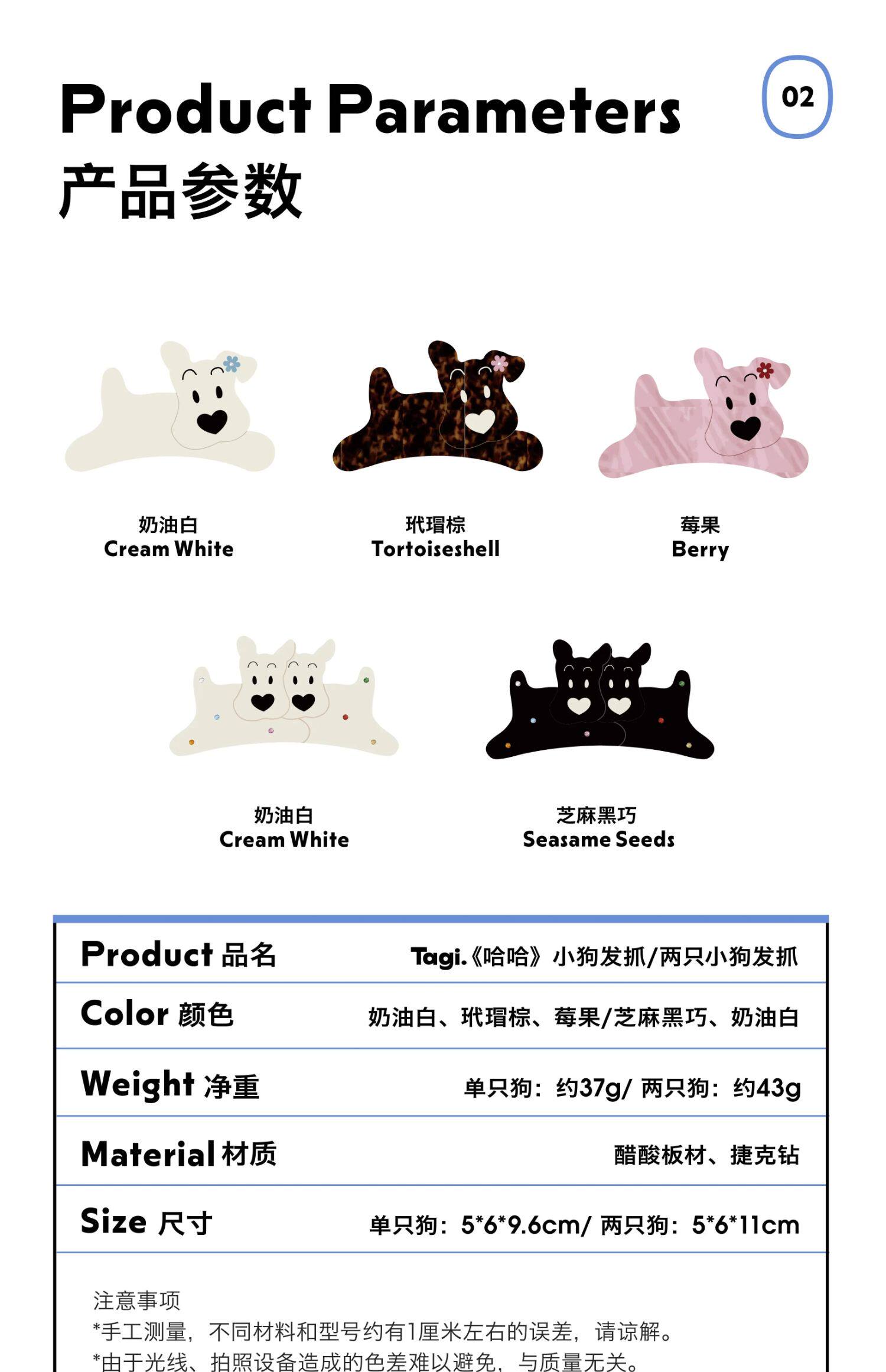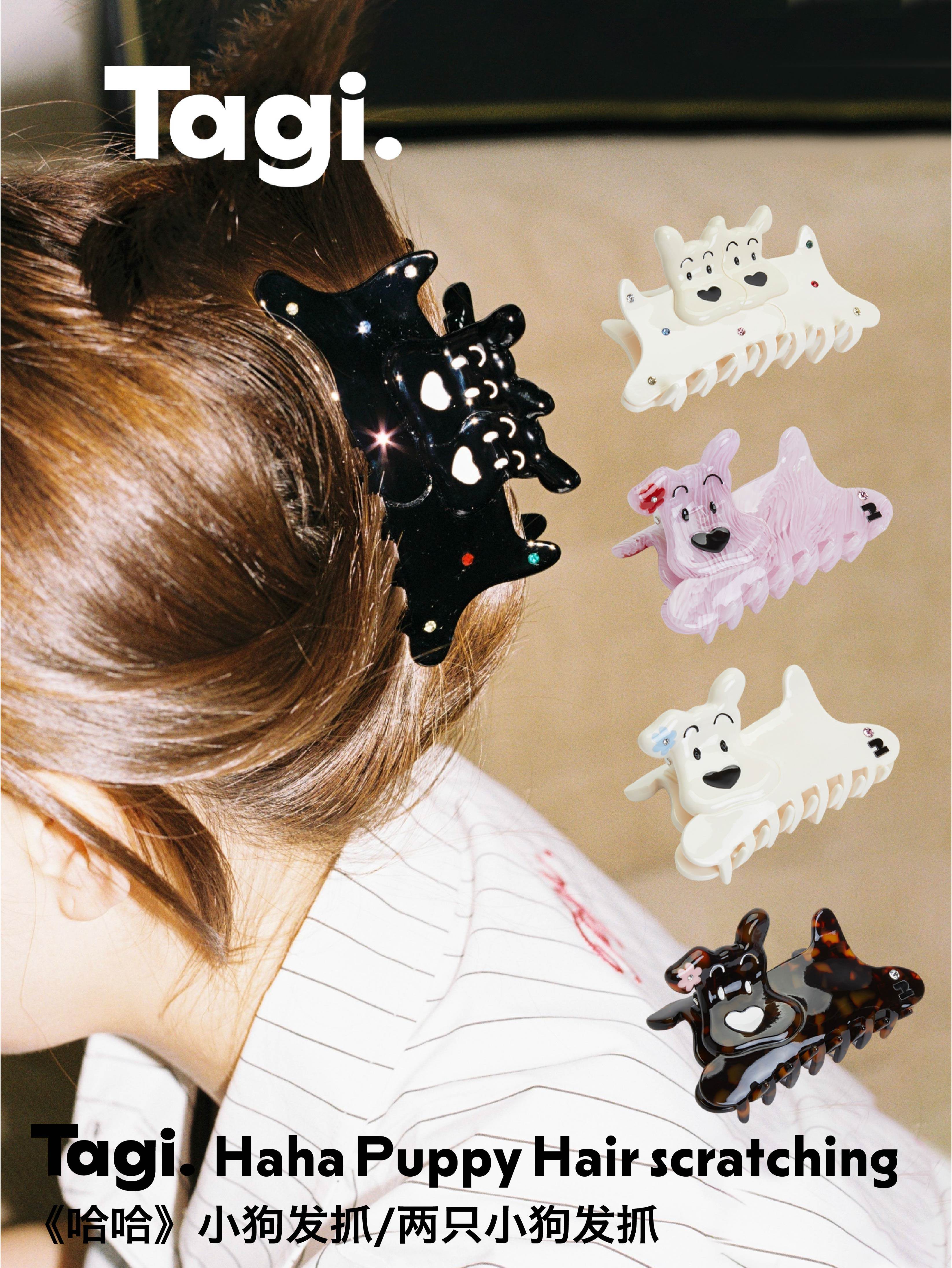 Tagi 哈哈小狗彩色鲨鱼夹 钻石醋酸无痕鲨鱼夹醋酸可爱发抓