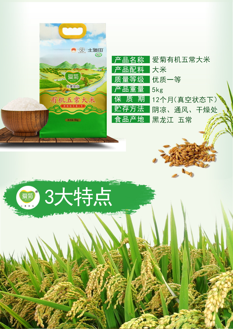 爱菊有机五常大米(原粮稻花香2号)5kg