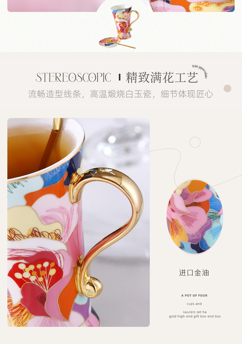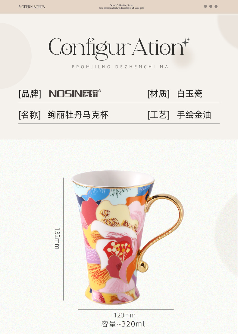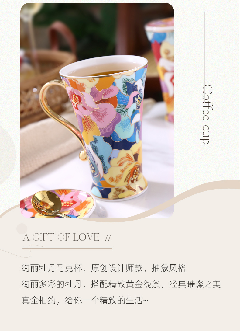 B-NX-13 诺轩 炫丽牡丹高脚马克杯 (双杯+双碟装)