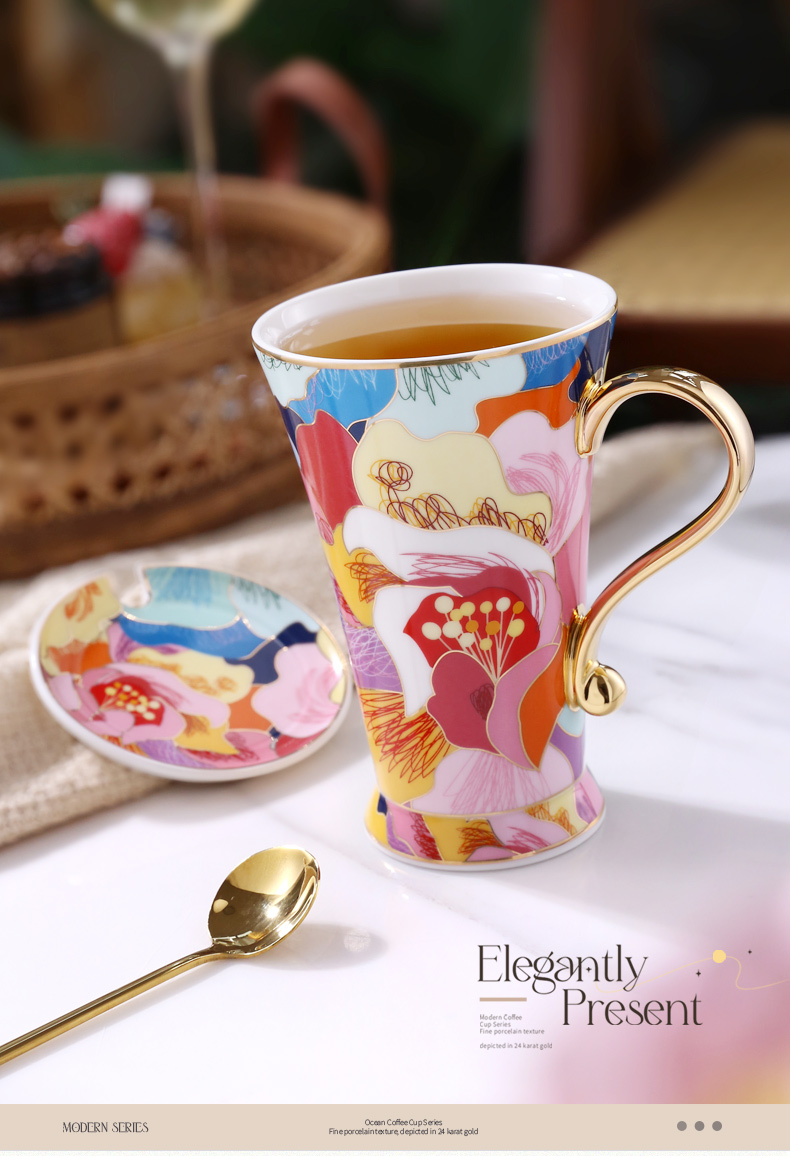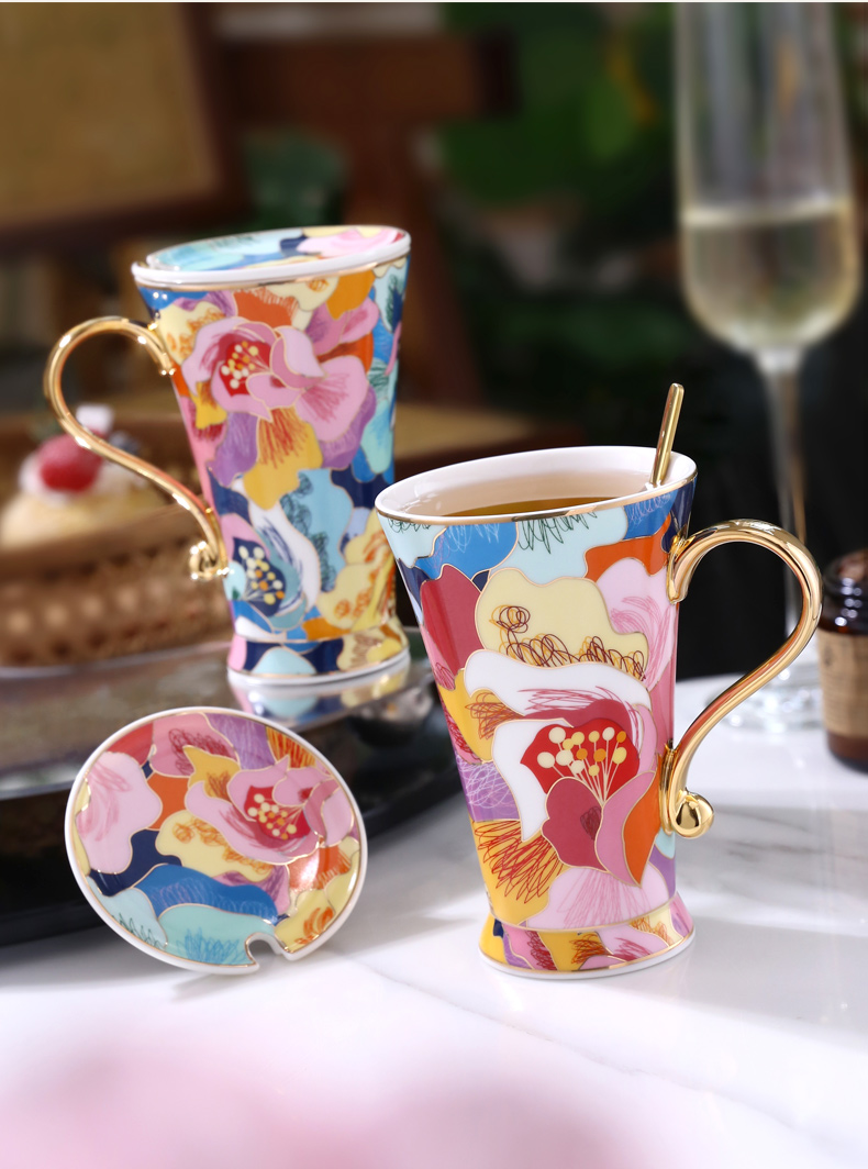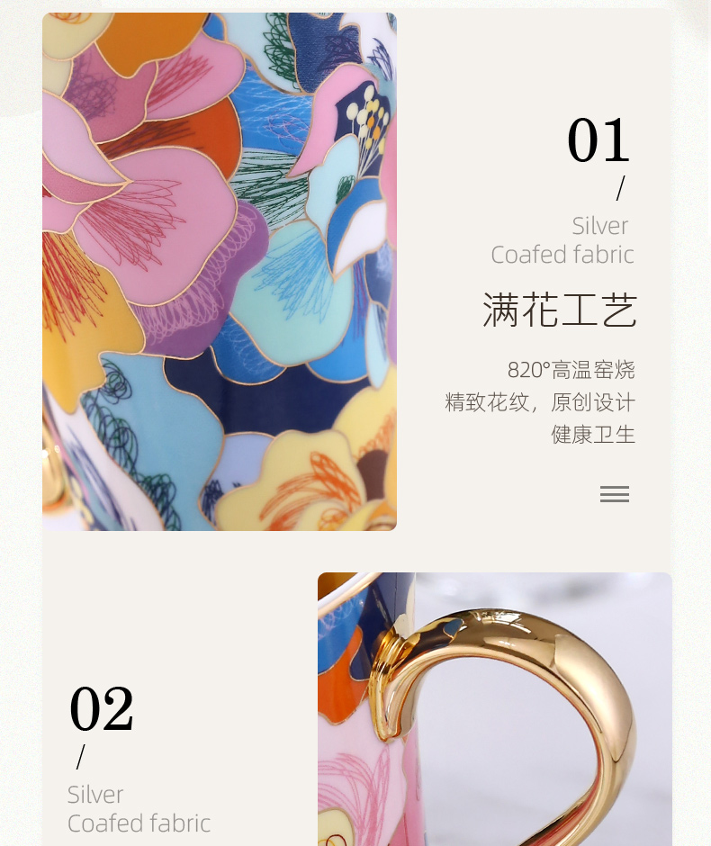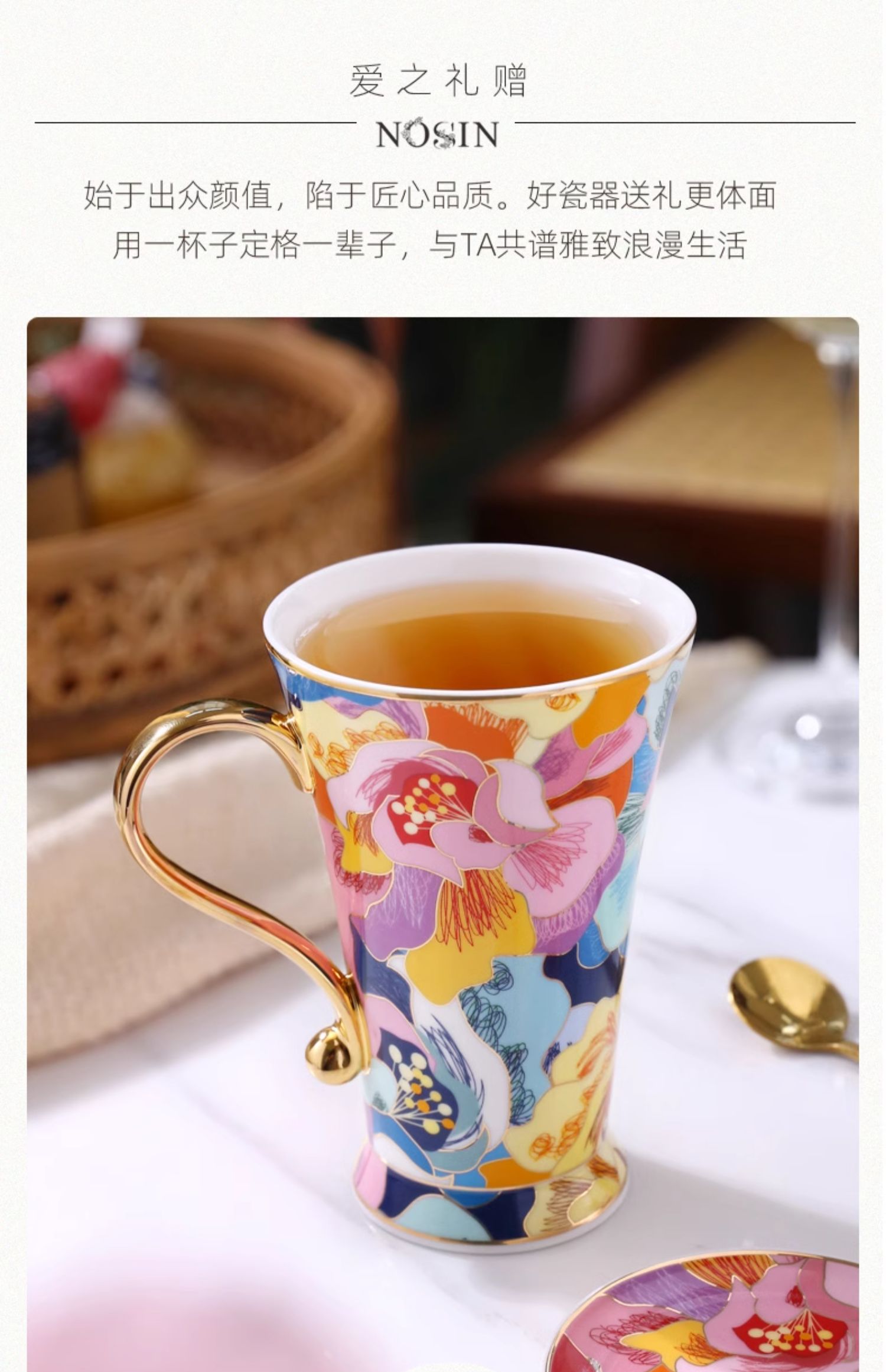 B-NX-13 诺轩 炫丽牡丹高脚马克杯 (双杯+双碟装)