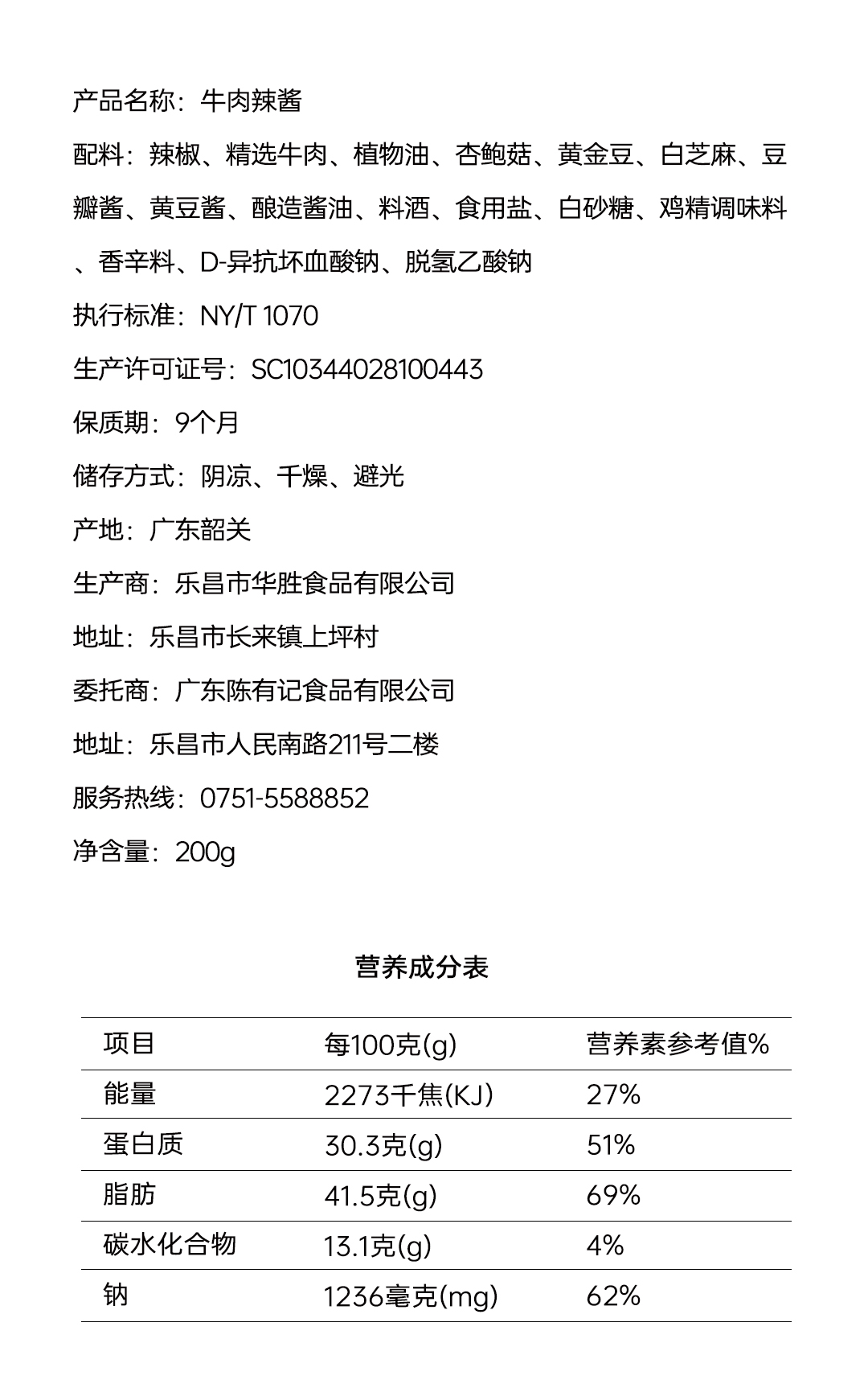 【乐昌帮扶】陈有记 牛肉辣酱 200g