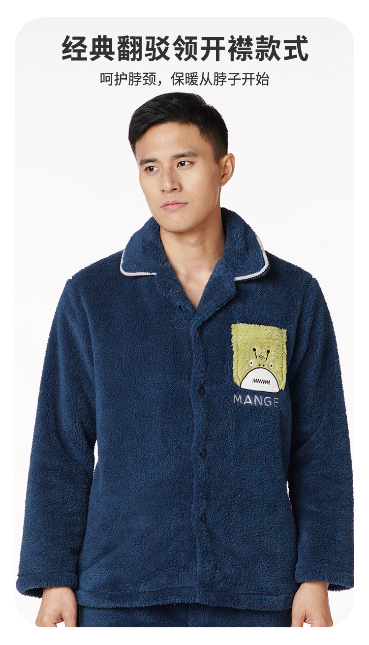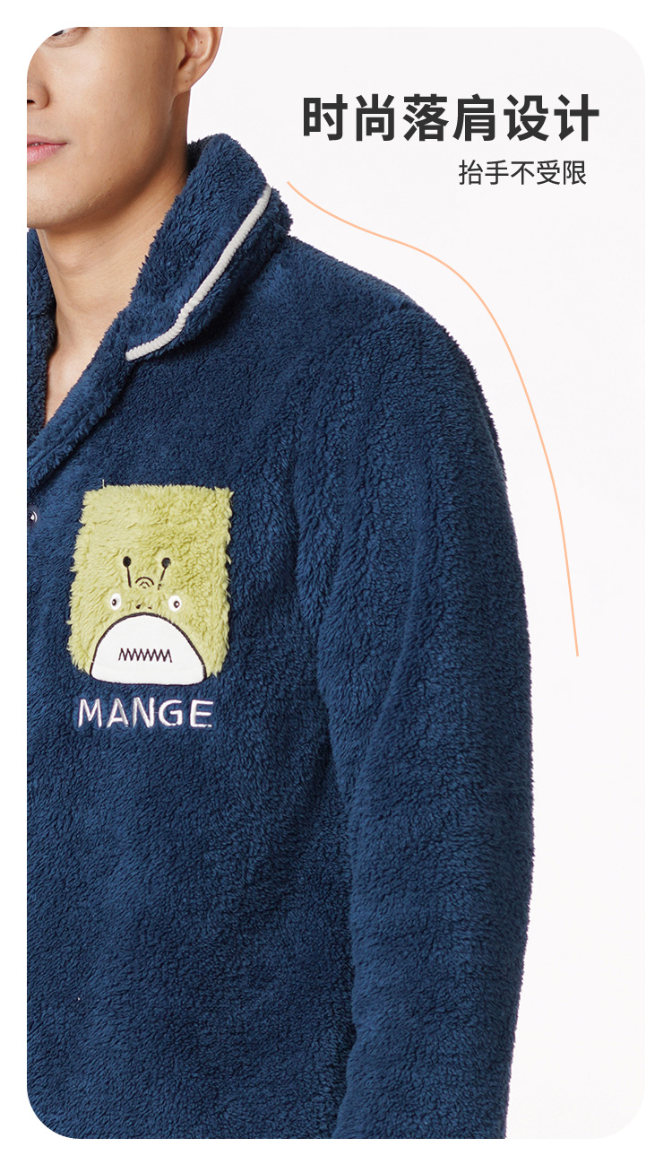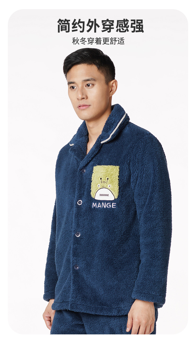 都市丽人都市锋尚生活家居男士长毛绒套装北极绒厚家居服长袖睡衣FH21H1