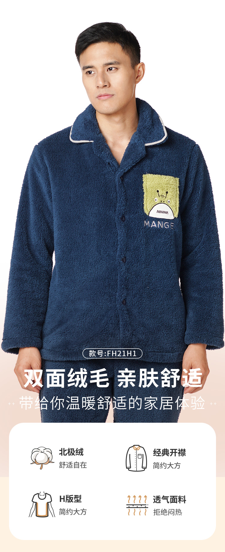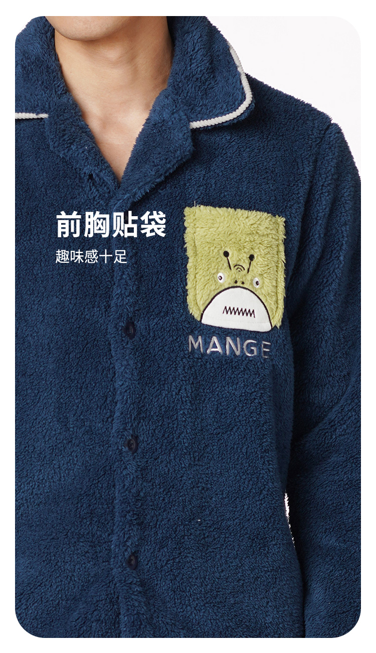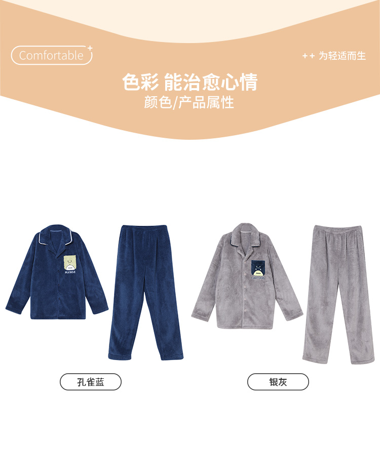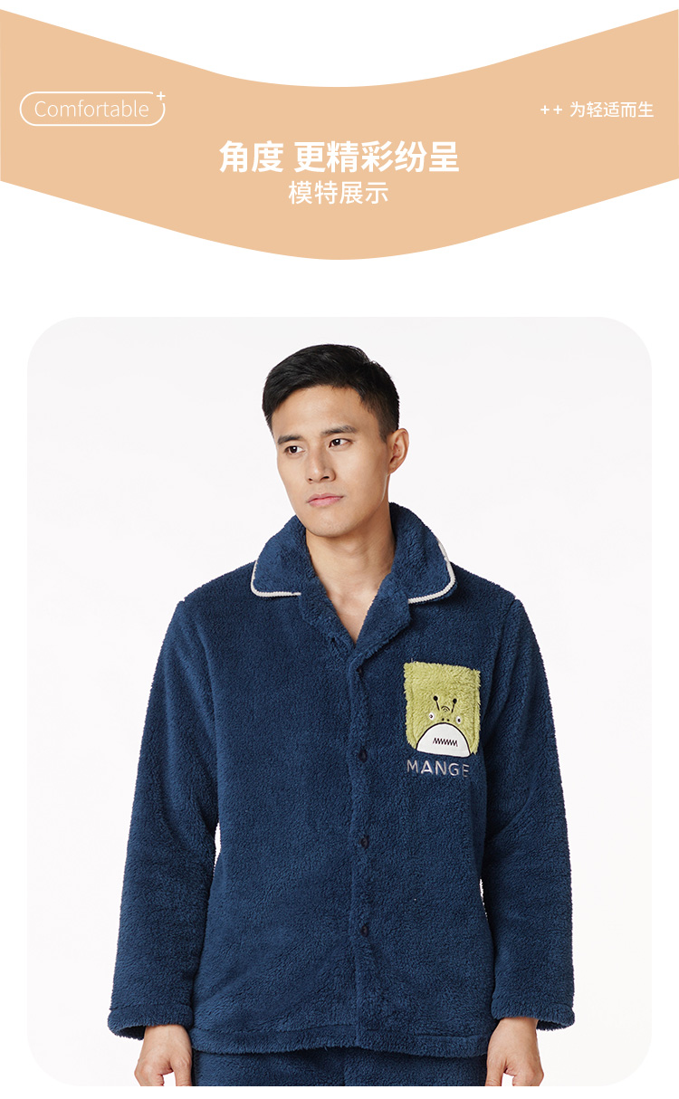 都市丽人都市锋尚生活家居男士长毛绒套装北极绒厚家居服长袖睡衣FH21H1