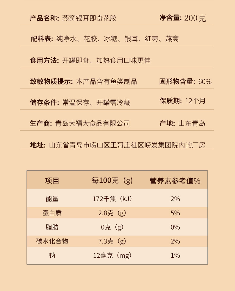 WANMEIYOUPIN完美优品燕窝花胶 200克*1套