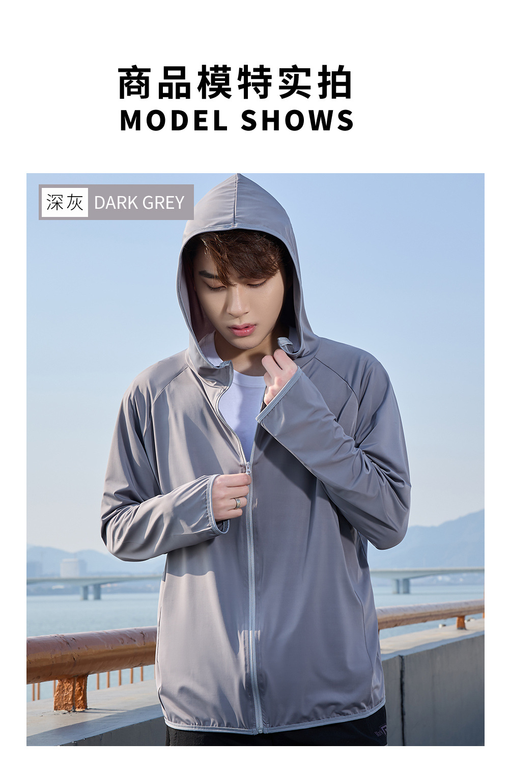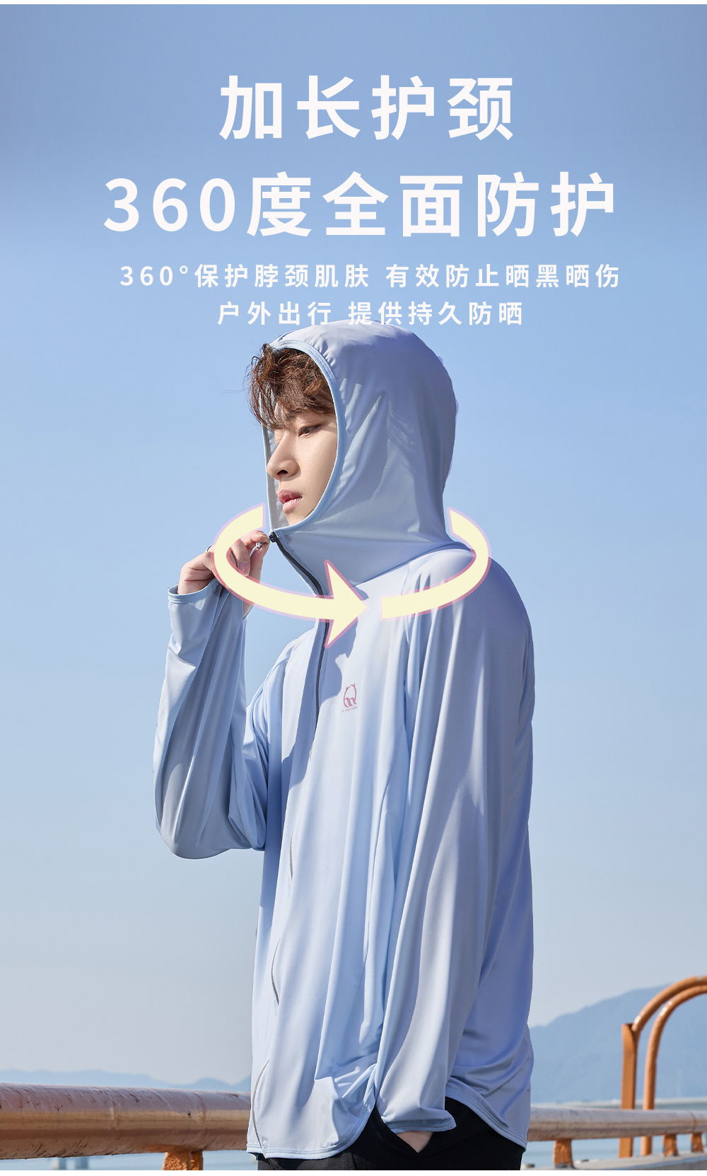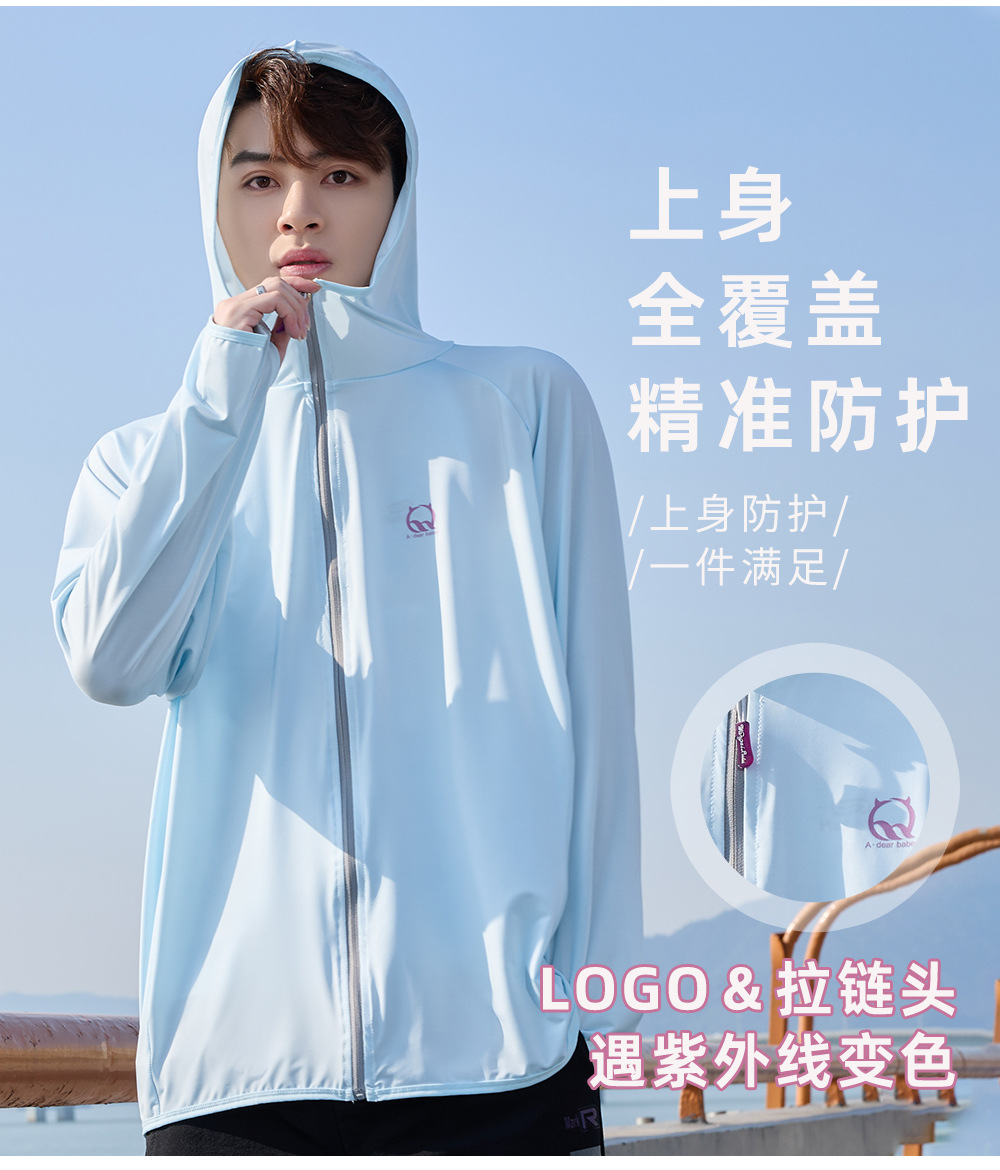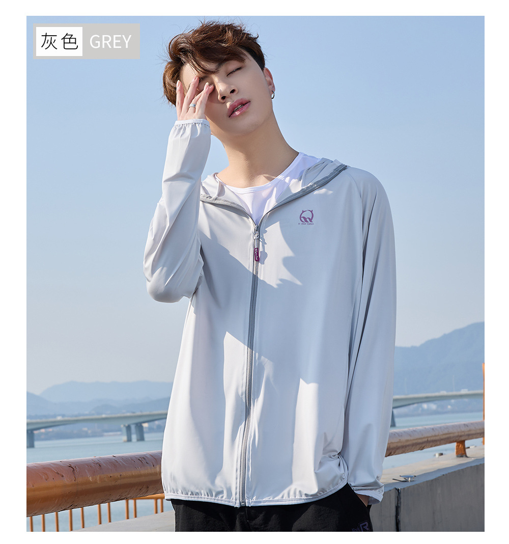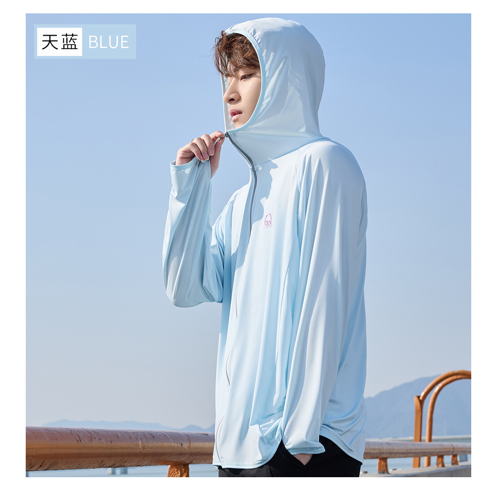 防晒衣男款UPF50+防紫外线冰丝连帽宽松防晒服中长款透气皮肤衣